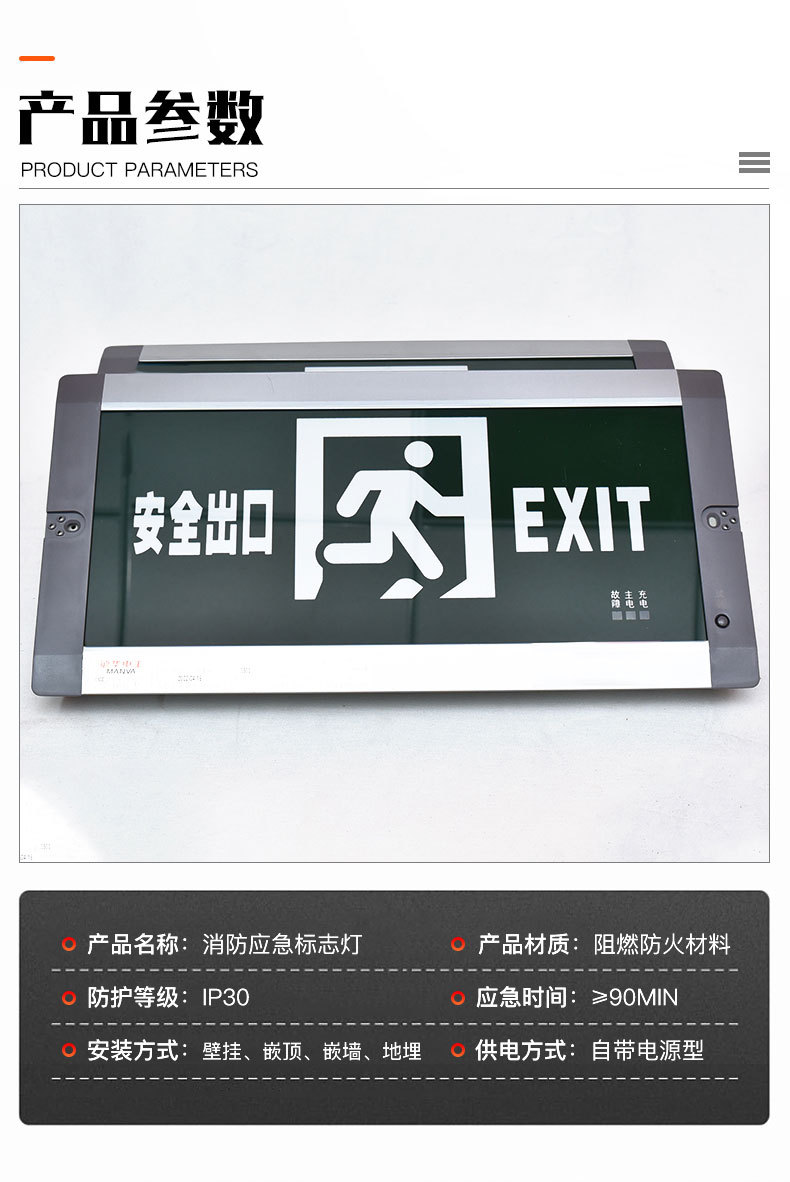 厂家定制应急指示灯商场学校医院安全出口标志牌LED消防指示灯牌