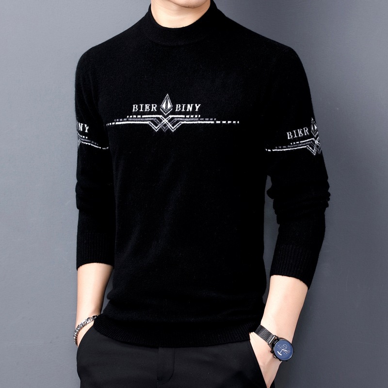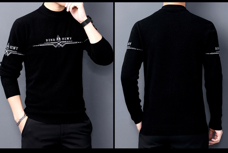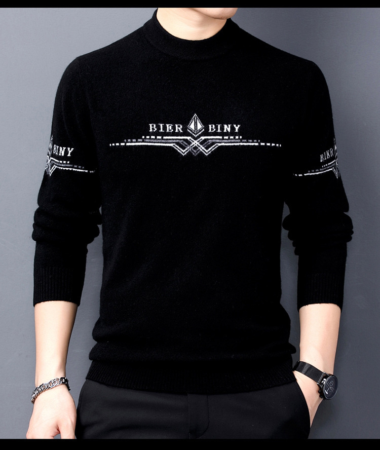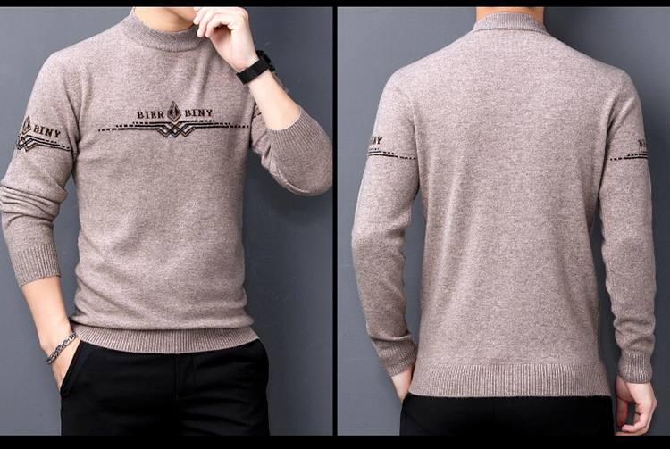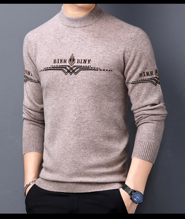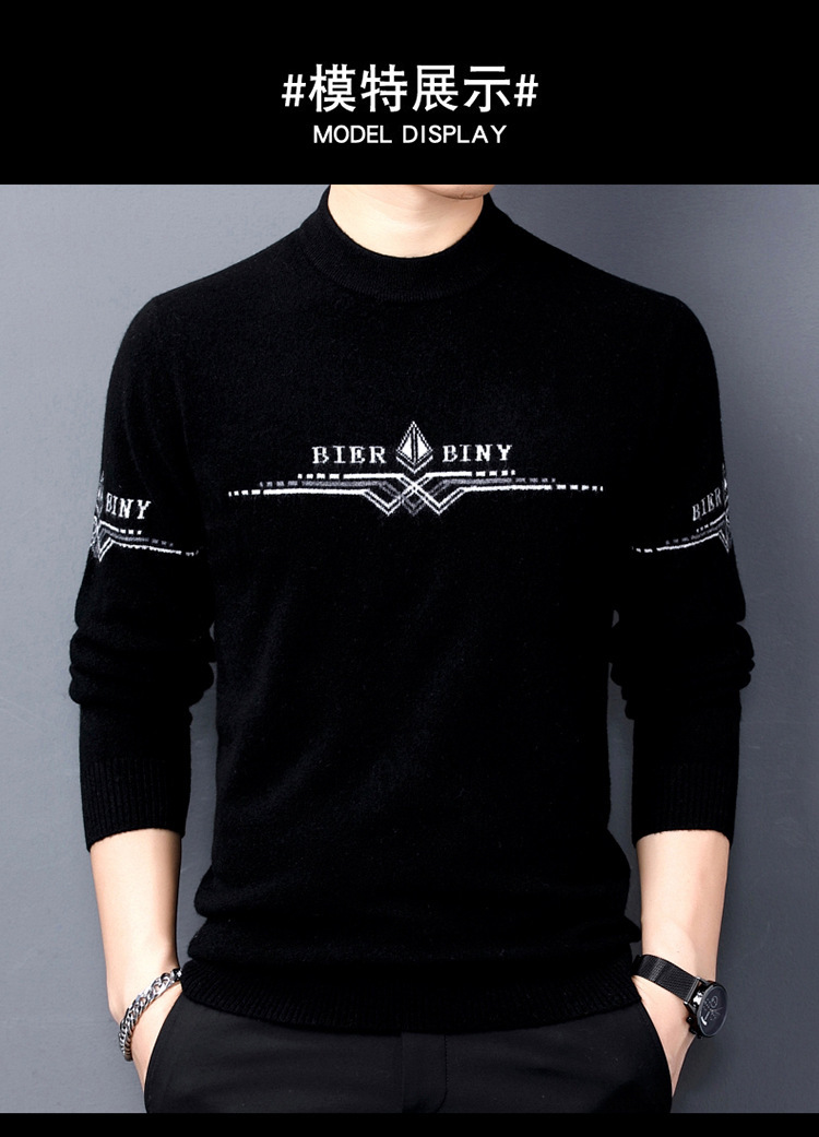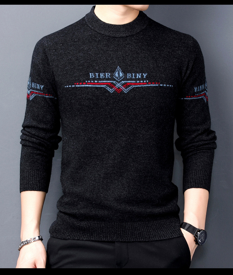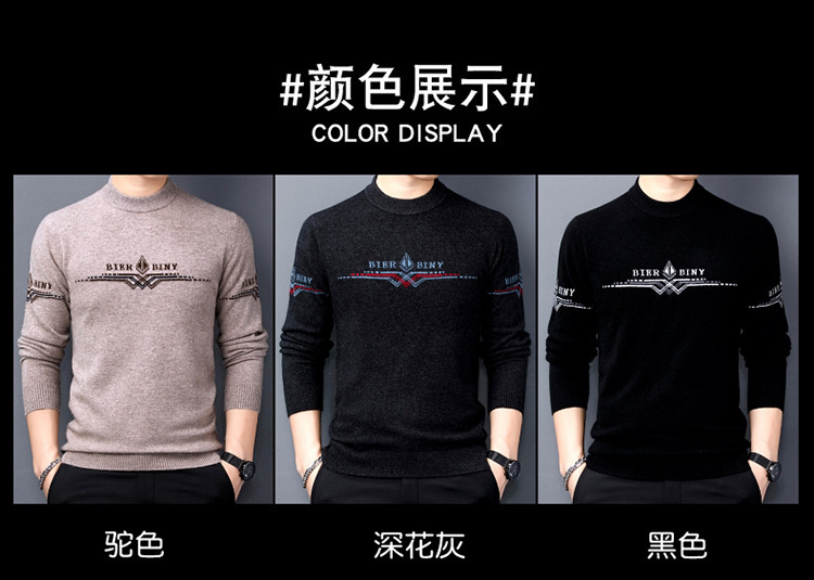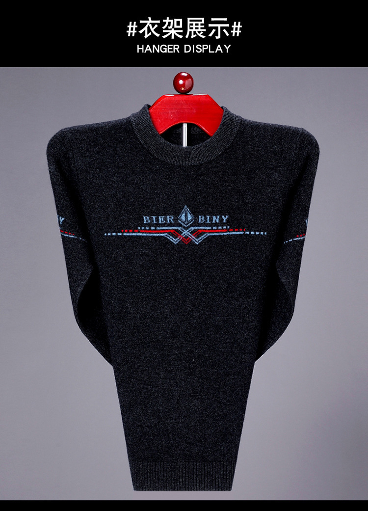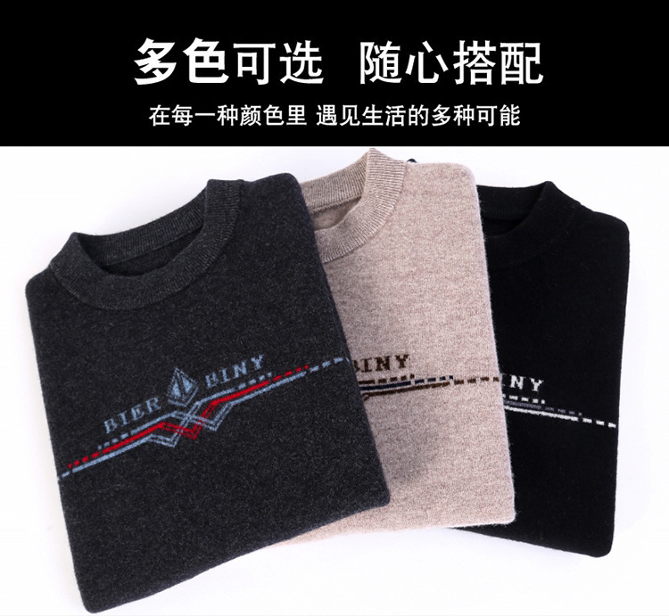 男士冬季羊毛衫圆领加厚毛衣中年休闲针织打底衫保暖内穿上衣
