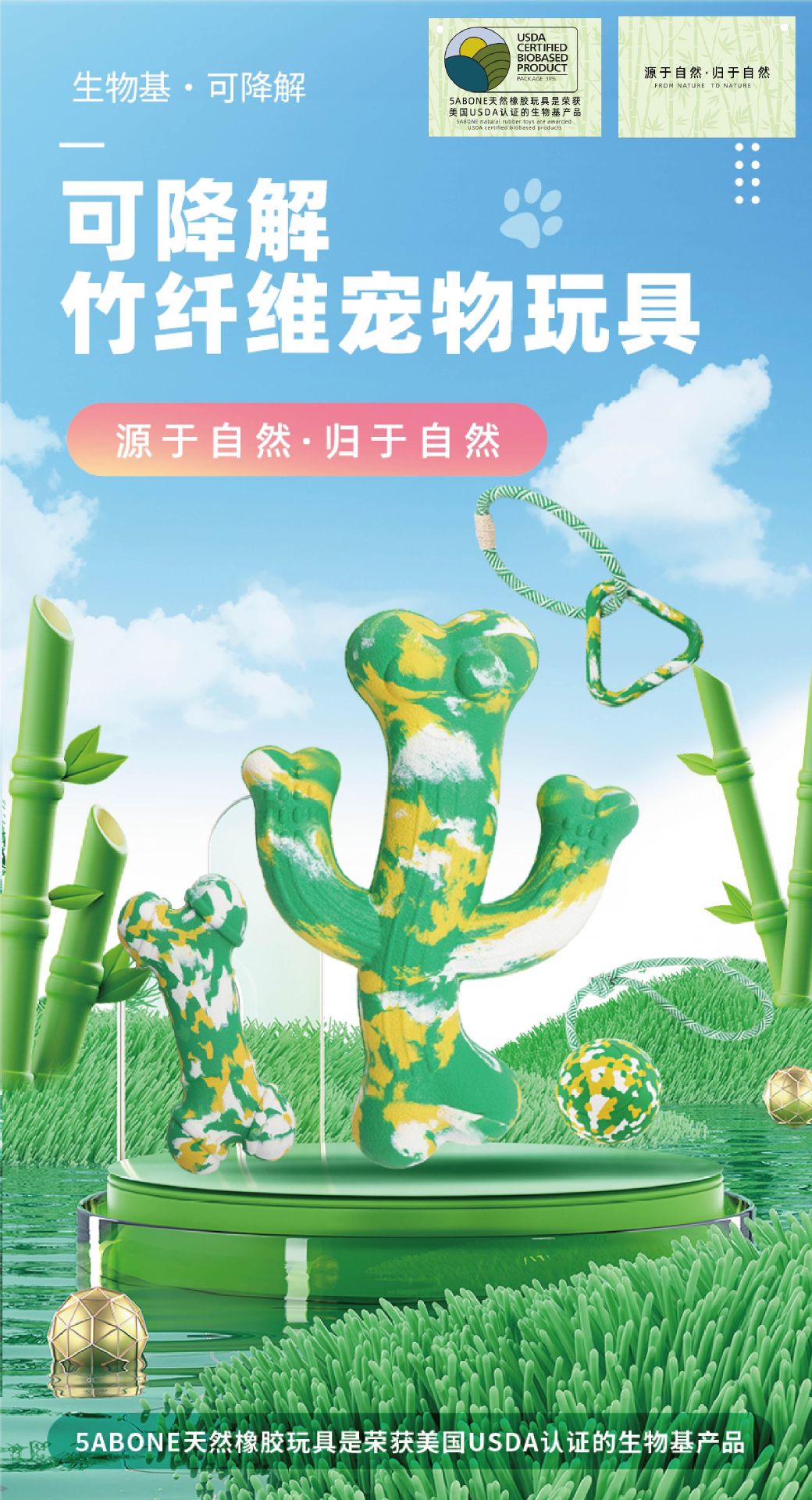 인기있는 바이오 기반 분해 성 애완 동물 장난감 개 장난감 물린 방지 치아 청소 천연 고무 씹는 어금니