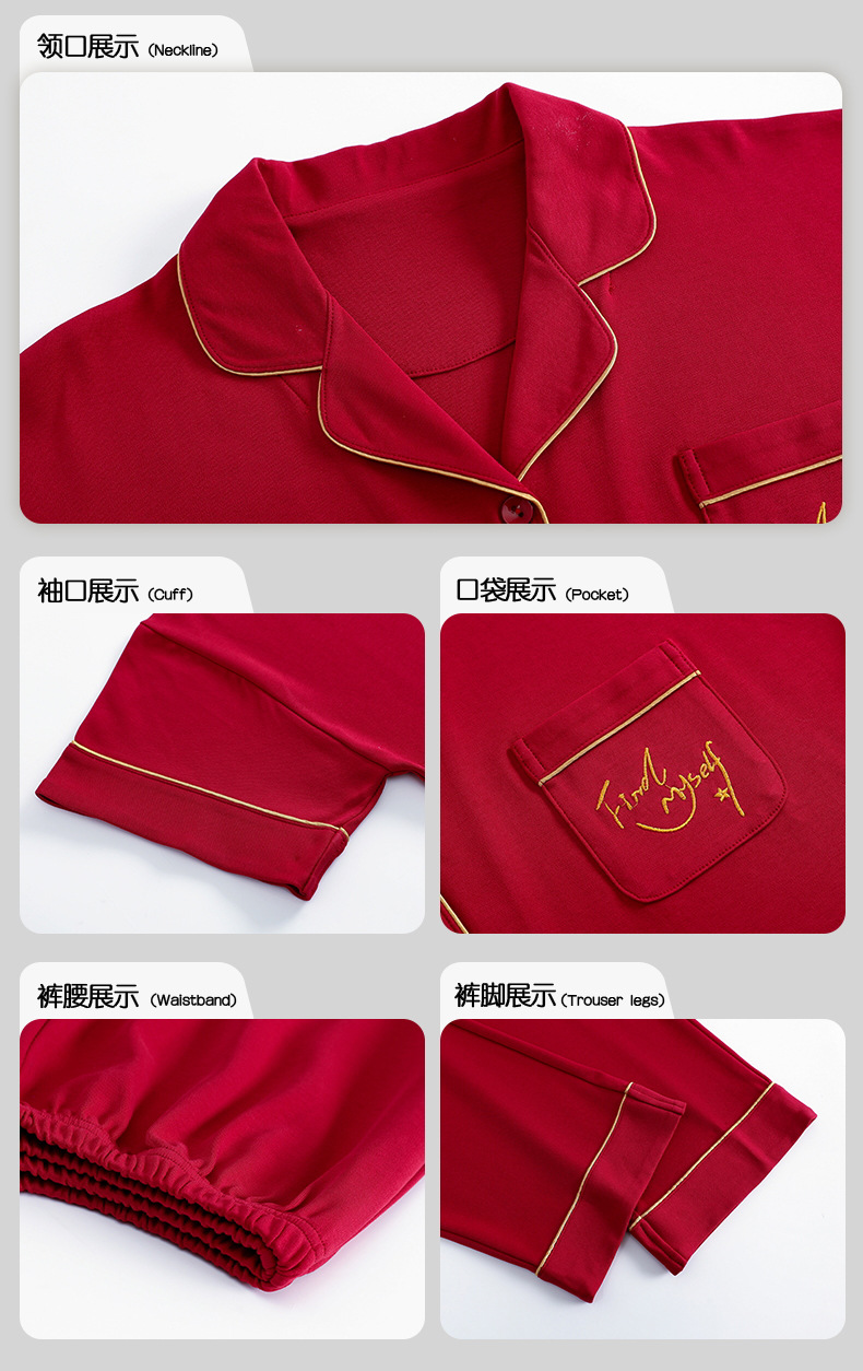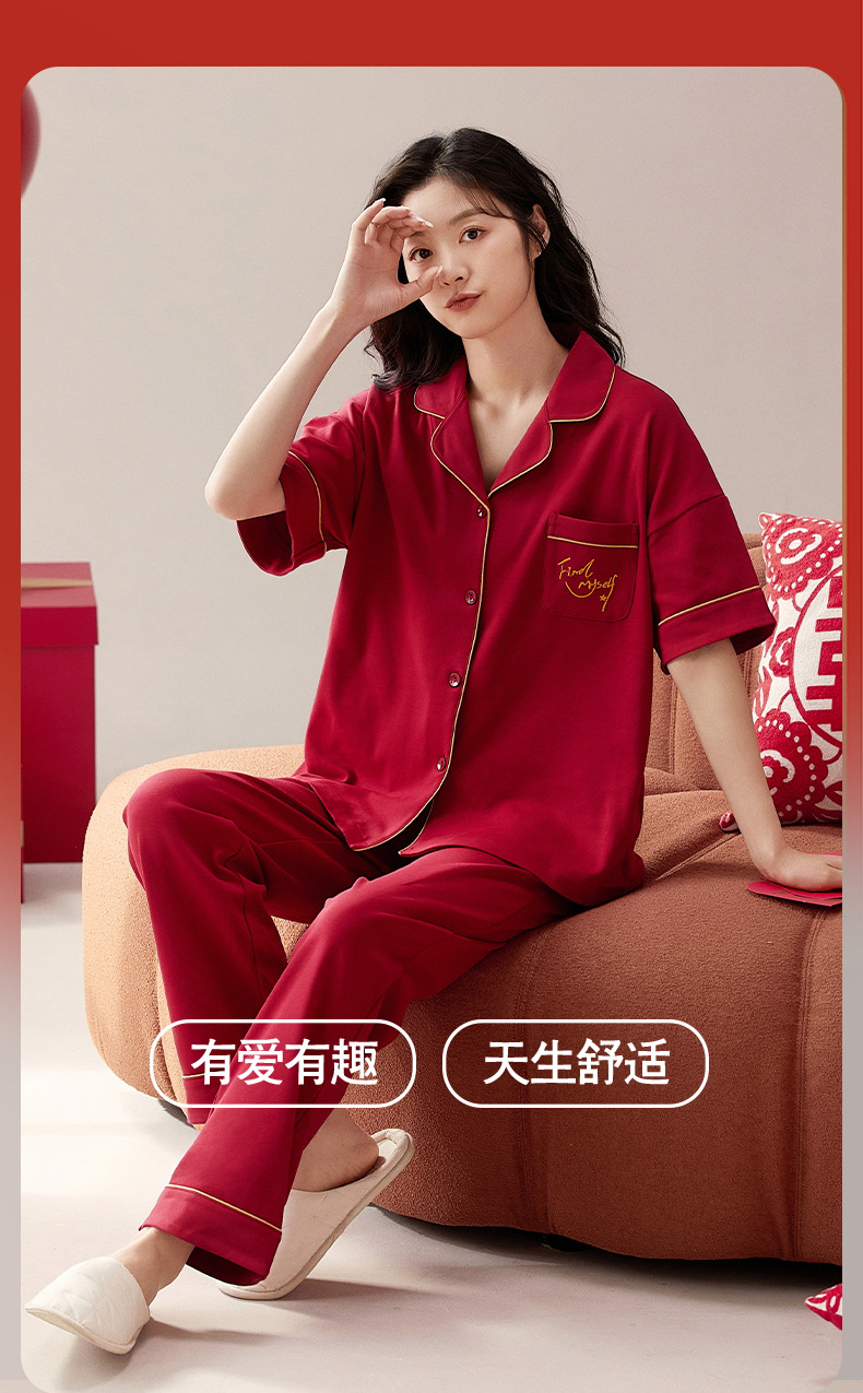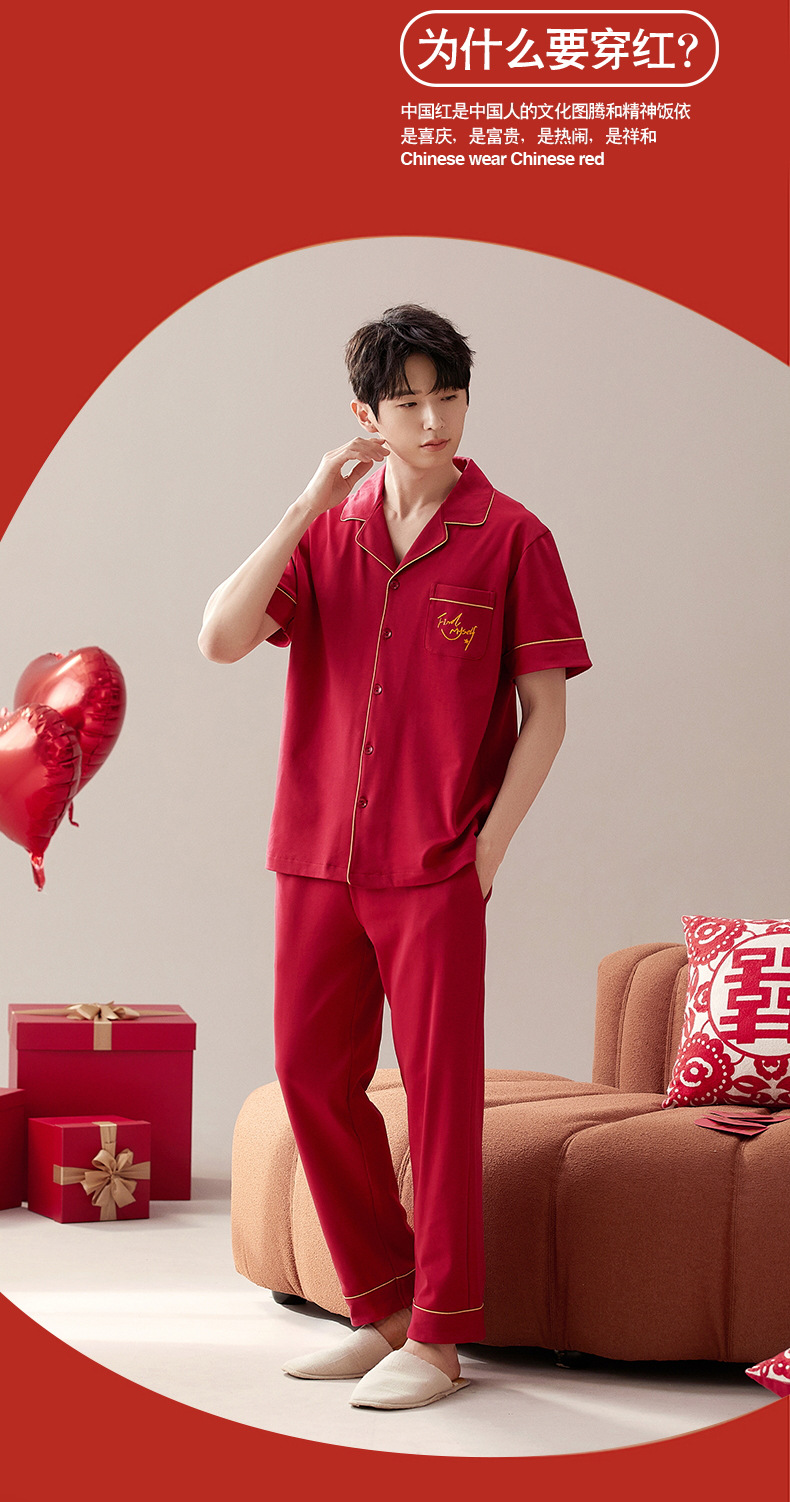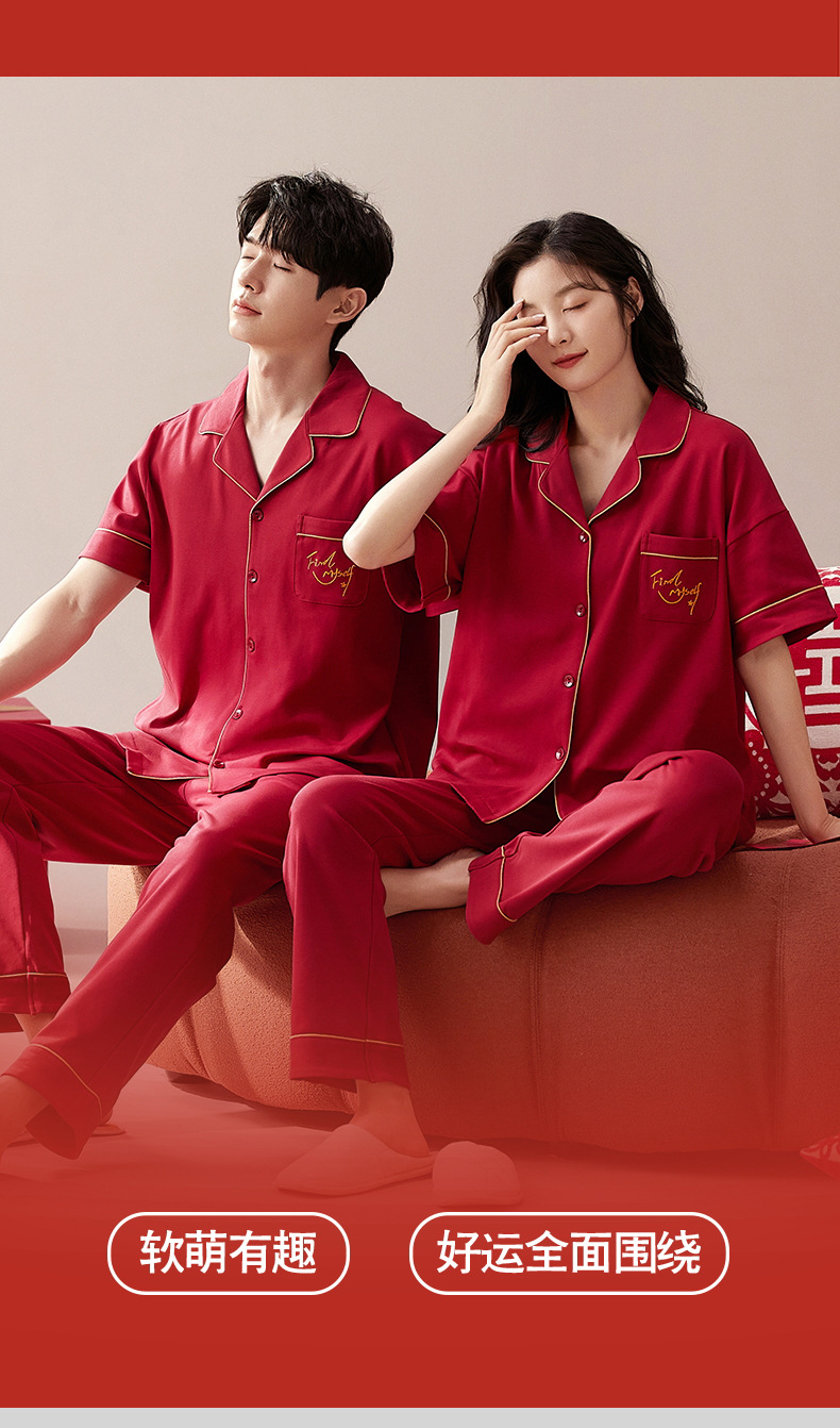 커플 잠옷 여름 면화 반팔 바지 웨딩 웨딩 레드 출생 년 남녀 홈 세트스토어 가기