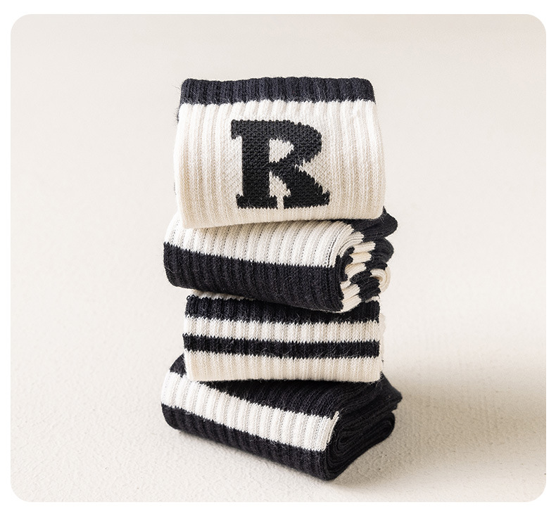 • 문자 R 흑백 줄무늬 중간 송아지 4 색 일치