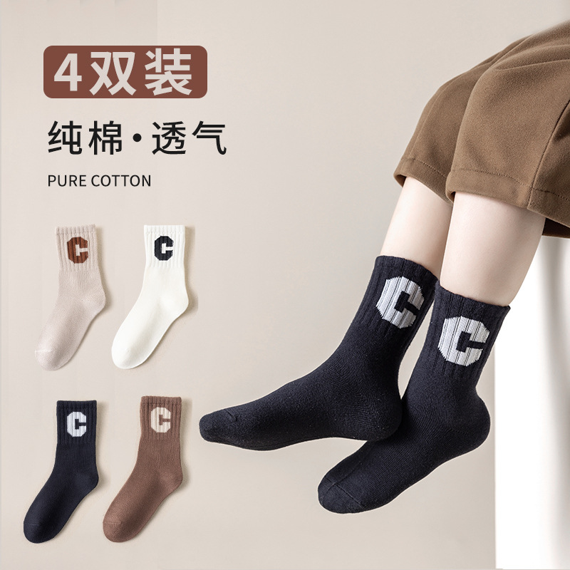 어린이 양말 가을 패션 면화 양말 중반 종아리 길이 양말 소년과 소녀 모두 일치하는 가을과 겨울 중년 큰 어린이 가을 패션 양말스토어 가기