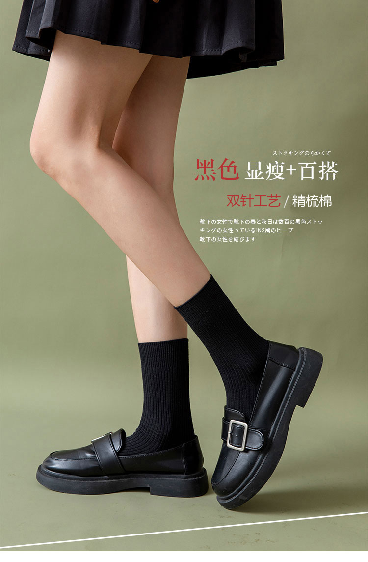 양말 여성의 봄과 여름 얇은 이중 바늘 스타킹 단색면 양말 조커 종아리 양말 jk 스타킹 스팟 도매스토어 가기