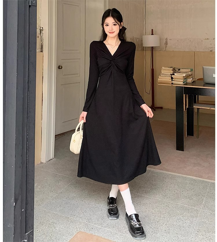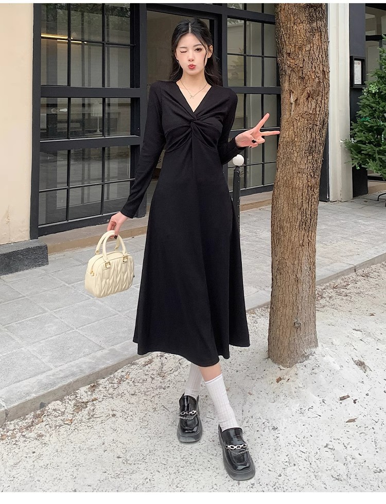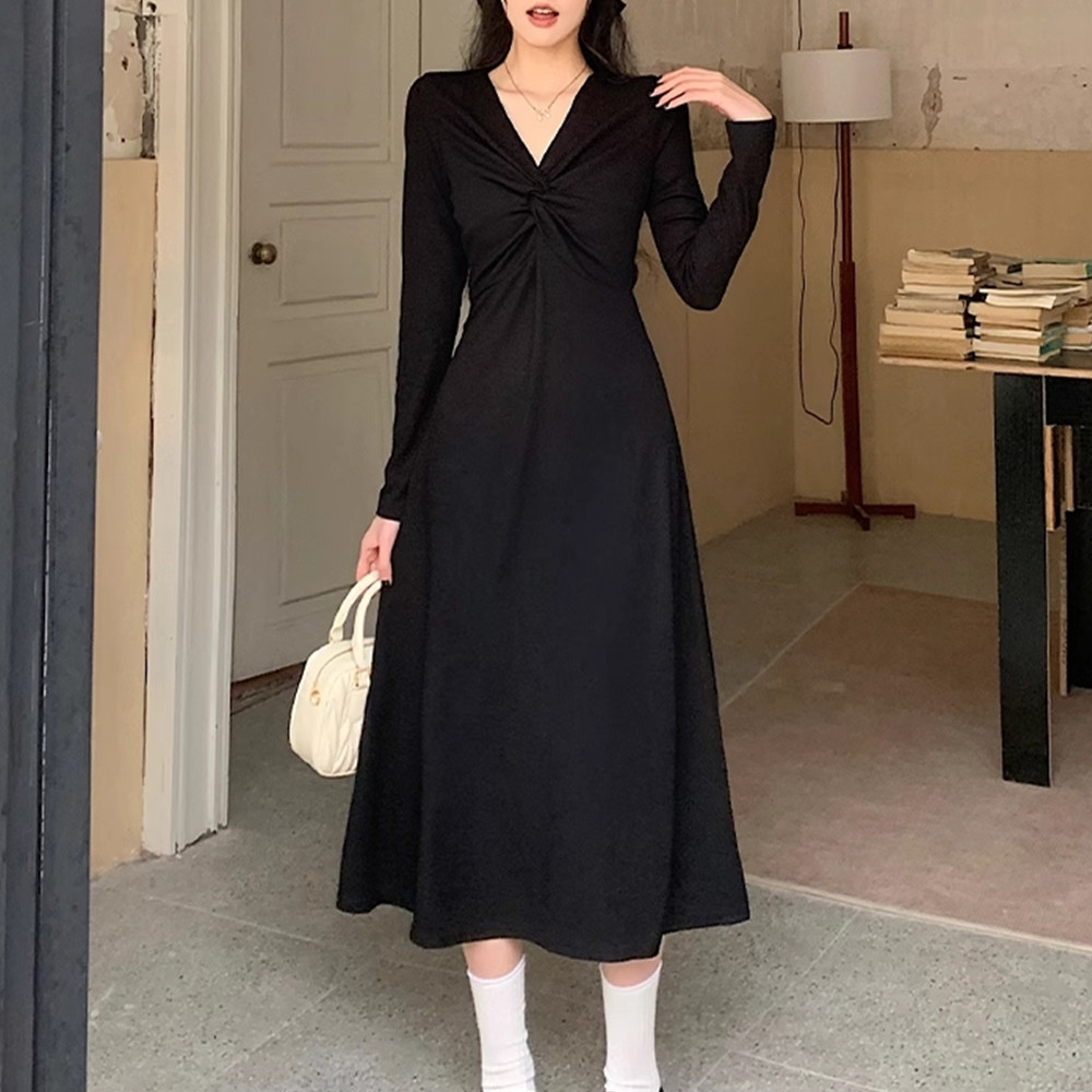 플러스 사이즈 여성 의류 2024 봄 새로운 한국 스타일 통통녀 높은 허리 우아한 중간 길이 원피스 밑바닥 A 라인 스커트 패션스토어 가기