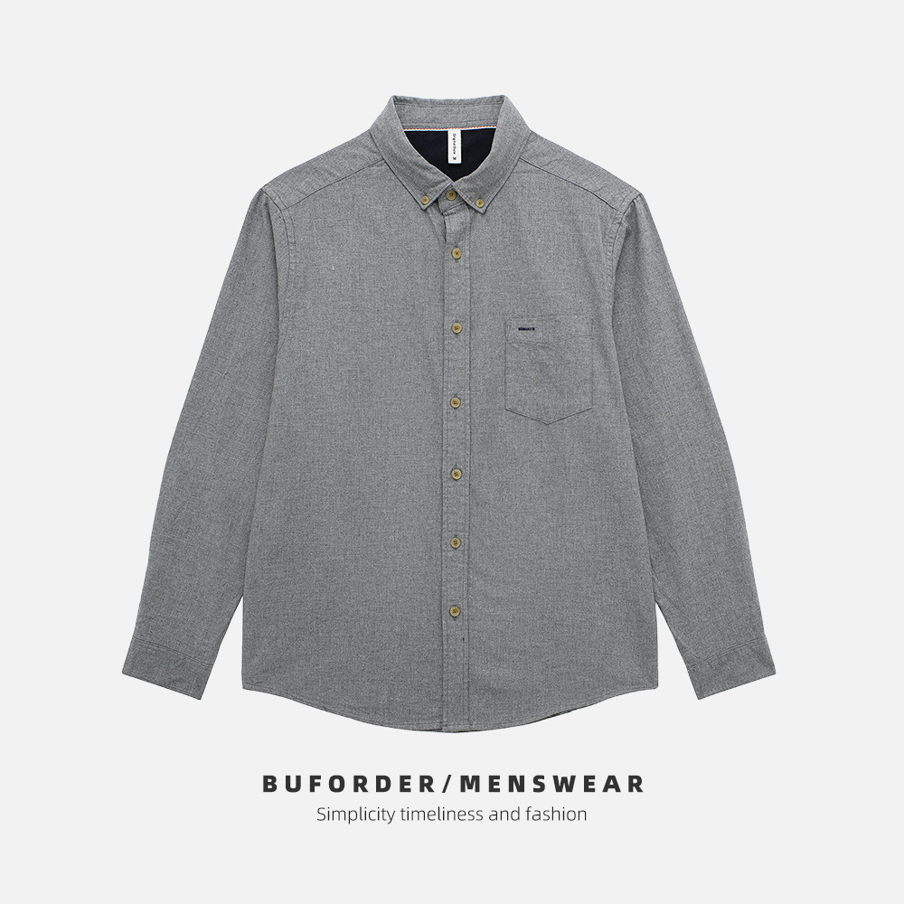 봄과 가을 면화 남성용 긴팔 셔츠 캐주얼 슬림 핏 일본 샌딩 셔츠 간단한 기본 탑 6620