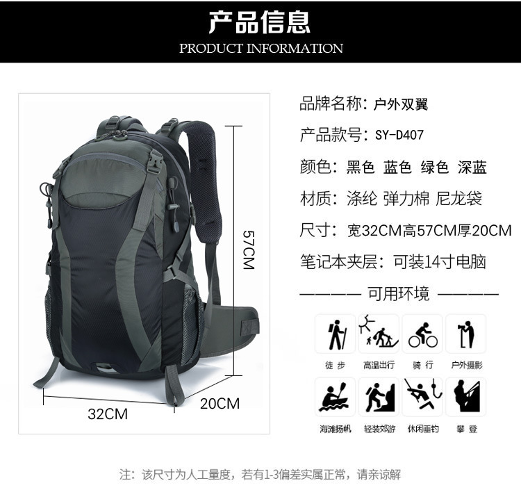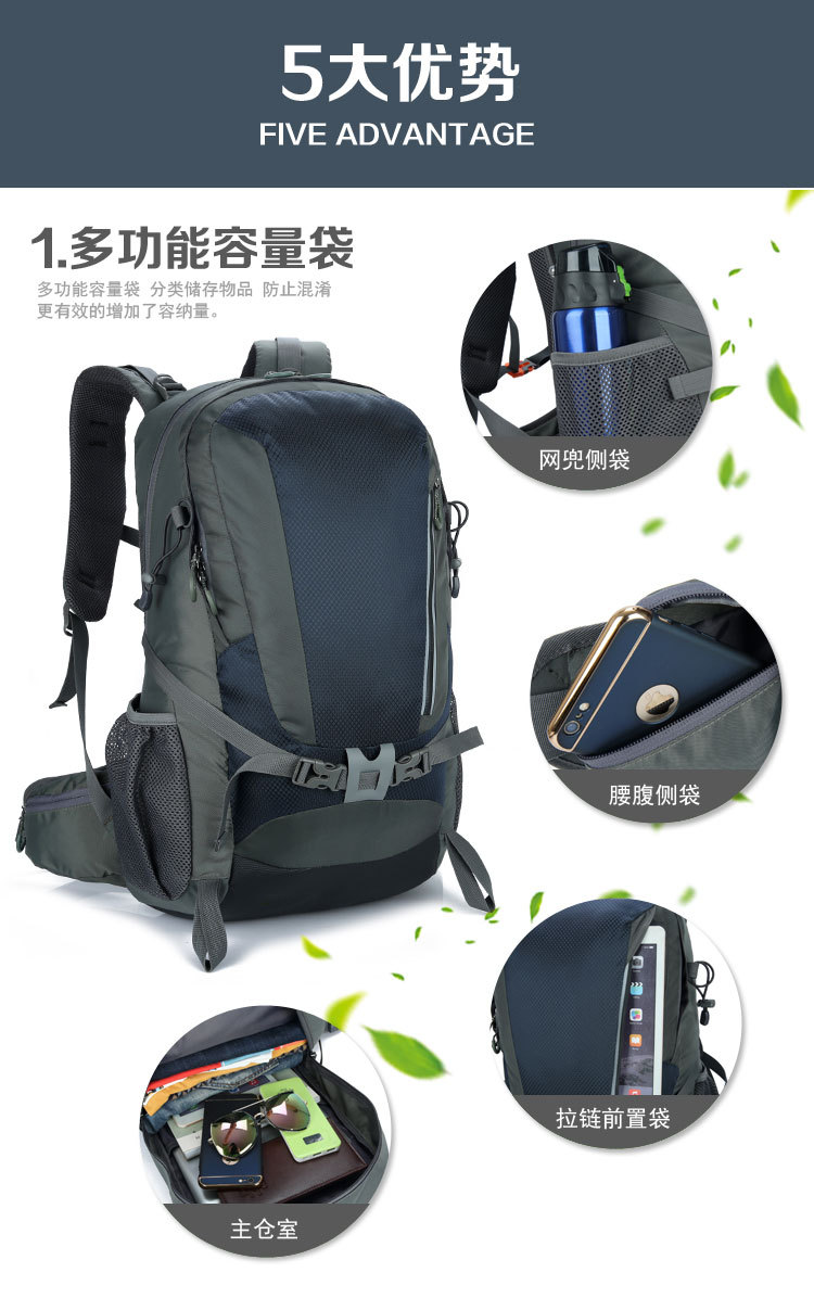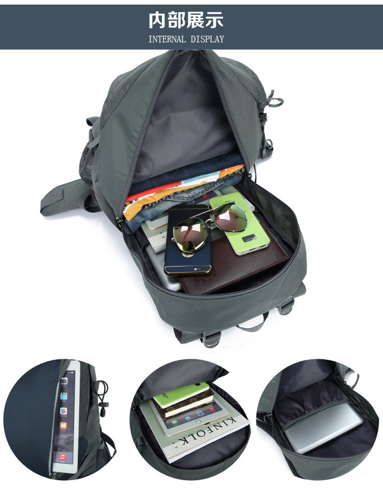 야외 스포츠 배낭 하이킹 방수 나일론 학교 가방 맞춤형 상표 반사 스트립 디자인 더블 백 등산 가방