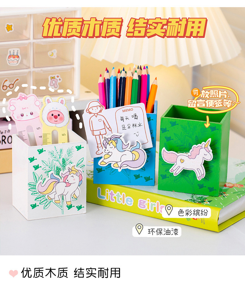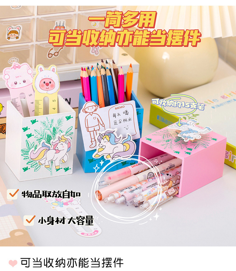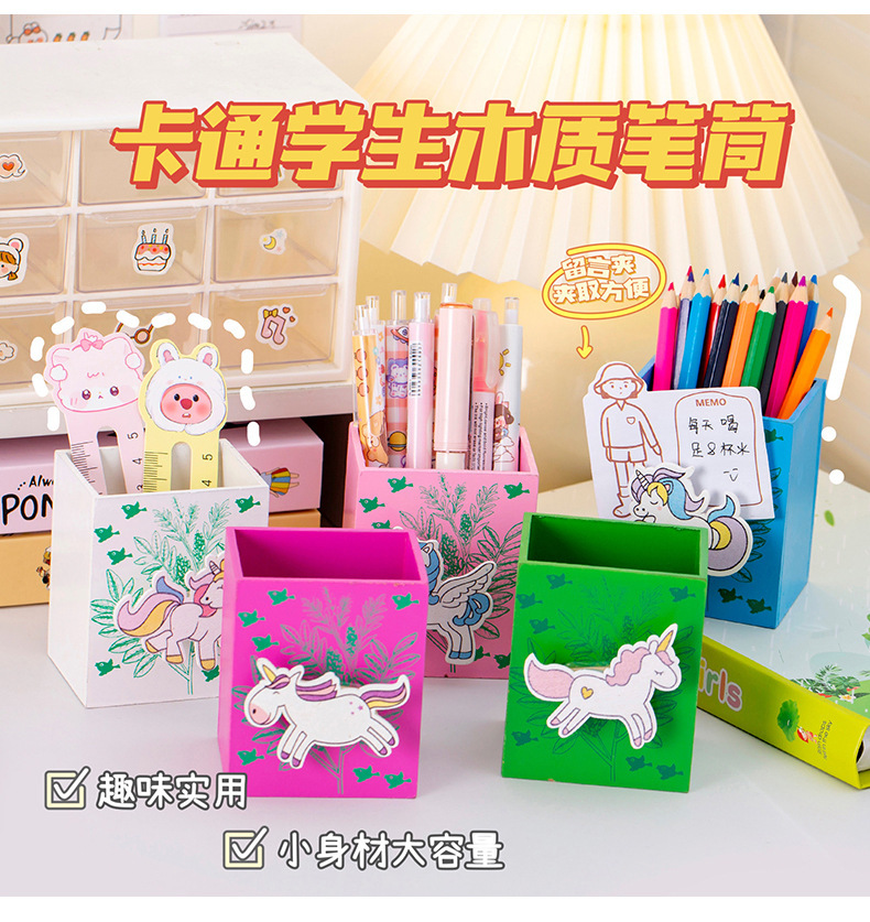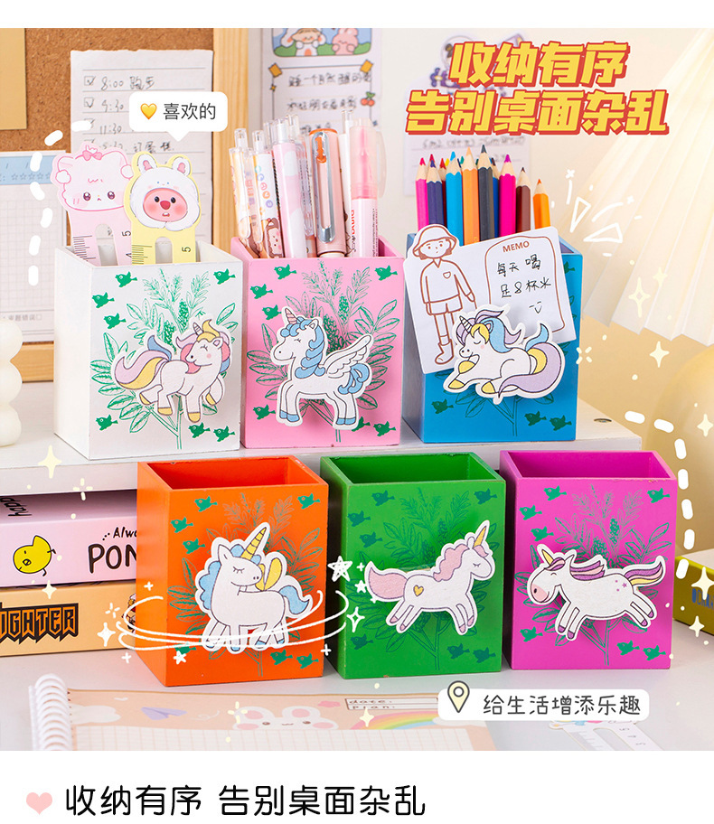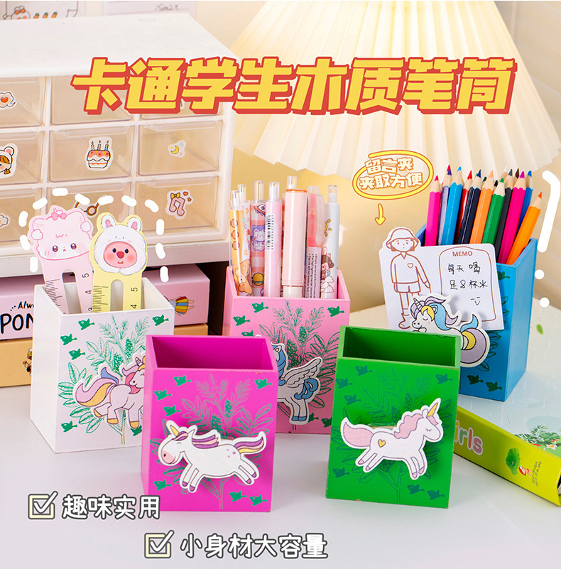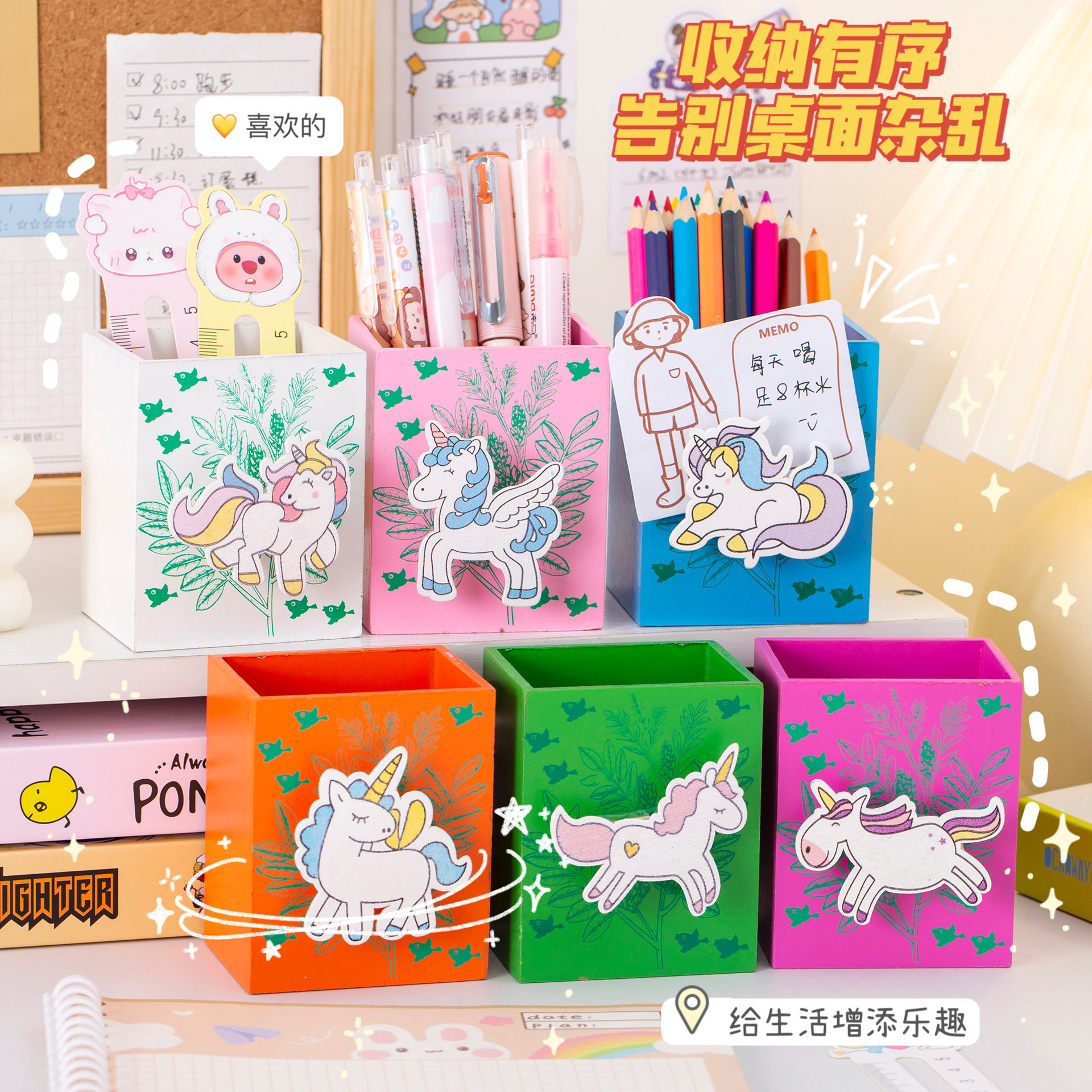 유니콘 나무 펜 홀더 초등학생 선물 메시지 홀더 데스크탑 문구 보관 상자가있는 높은 모양의 연필 양동이스토어 가기
