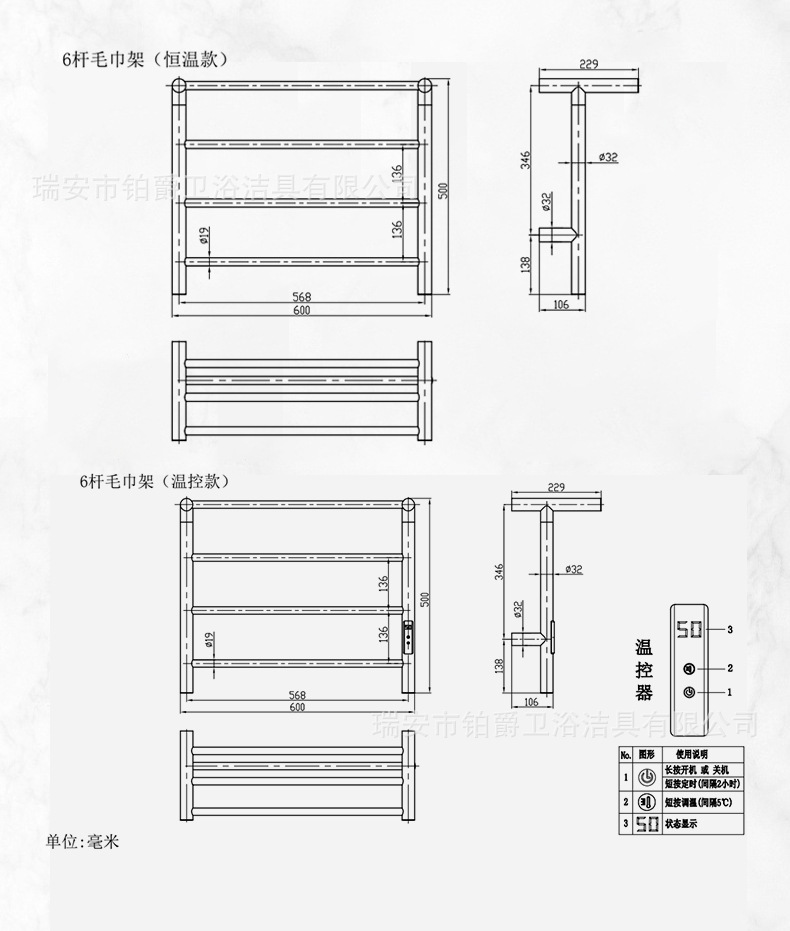 • 원 클릭 스위치 전기 타월 랙 브러시
