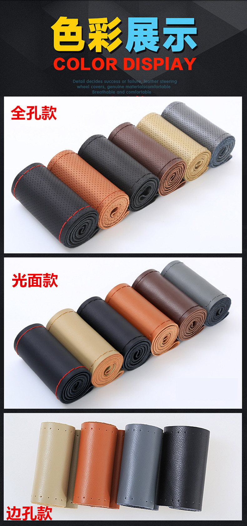 【尺寸】S号适合方向盘直径35-36CM,M号适合方向盘直径37-38CM,L号适合方向盘直径39-40CM 。宽度10.5cm.(加宽或窄的可定做)