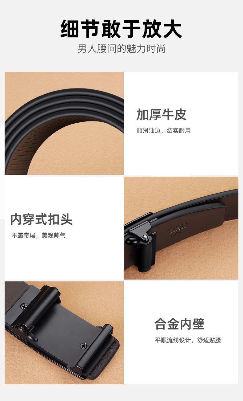 2024 새로운 가죽 벨트 남성 정품 가죽 치과없는 자동 버클 바지 벨트 모든 경기 캐주얼 중년 및 젊은 남성 순수 카우보이 벨트스토어 가기