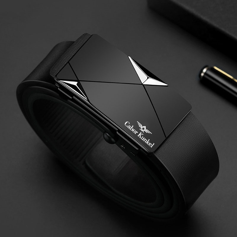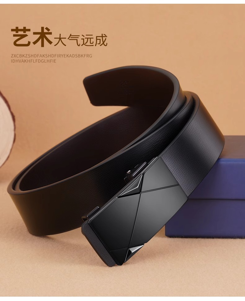 2024 새로운 가죽 벨트 남성 정품 가죽 치과없는 자동 버클 바지 벨트 모든 경기 캐주얼 중년 및 젊은 남성 순수 카우보이 벨트