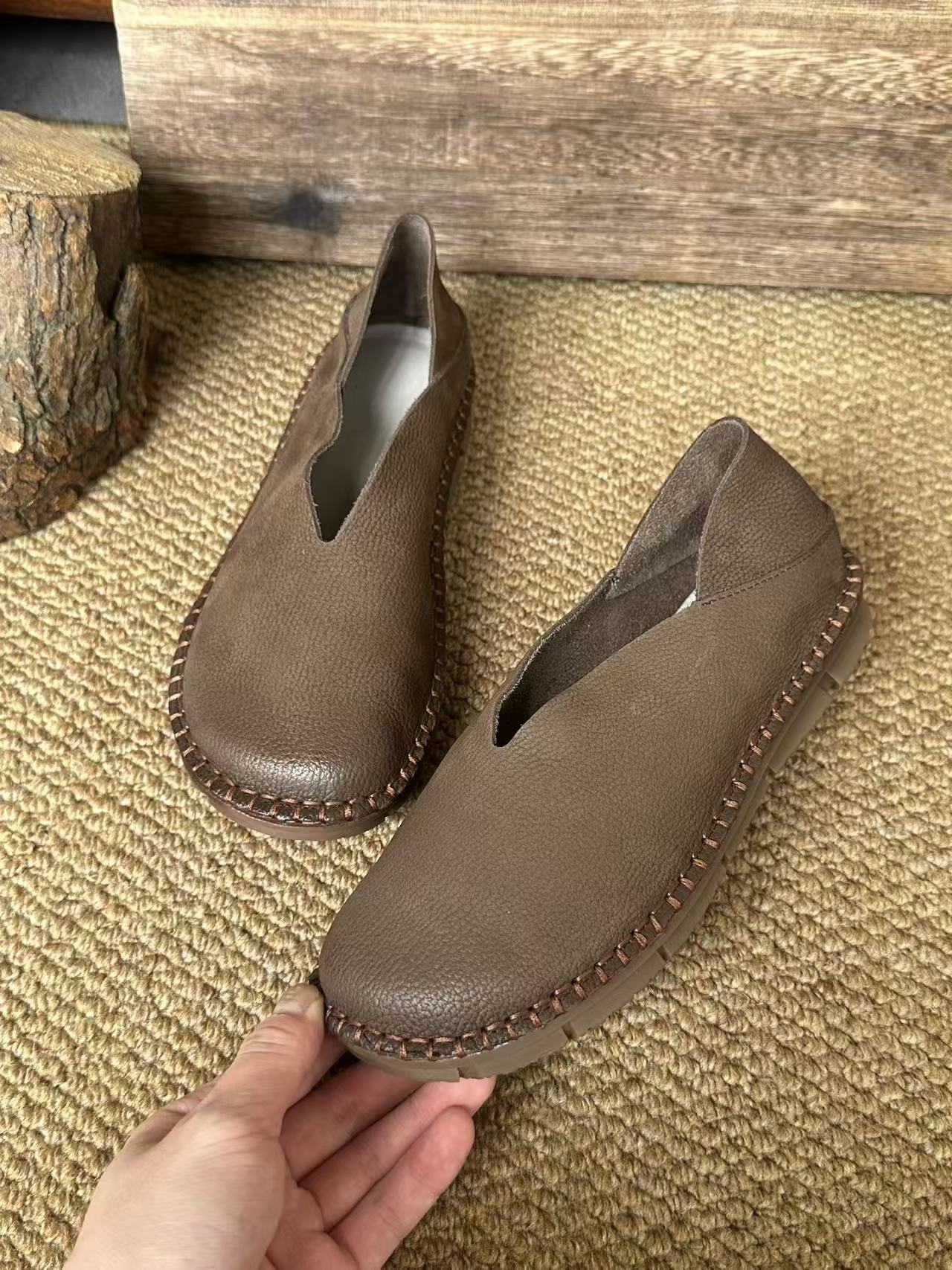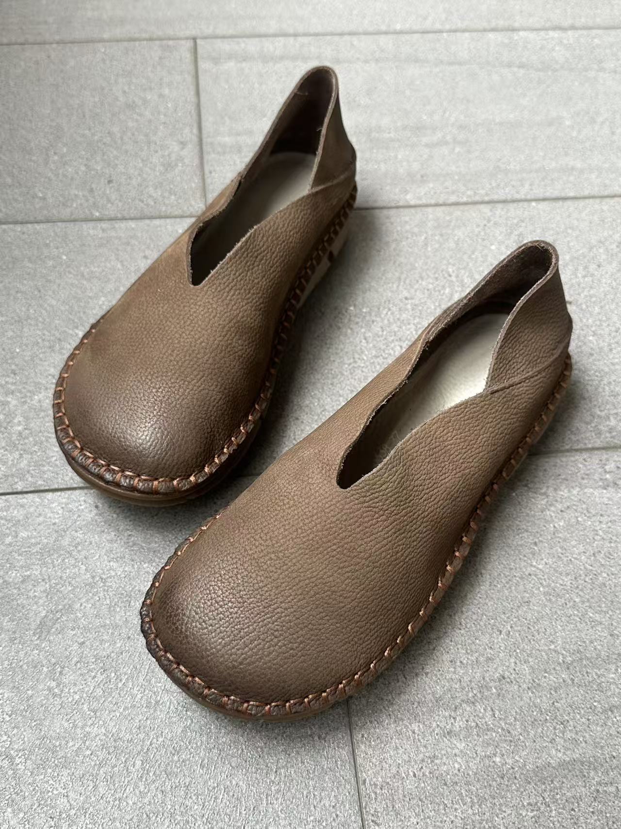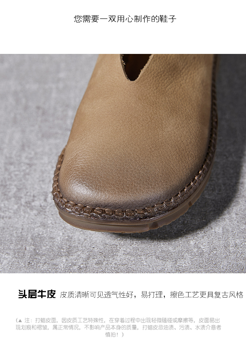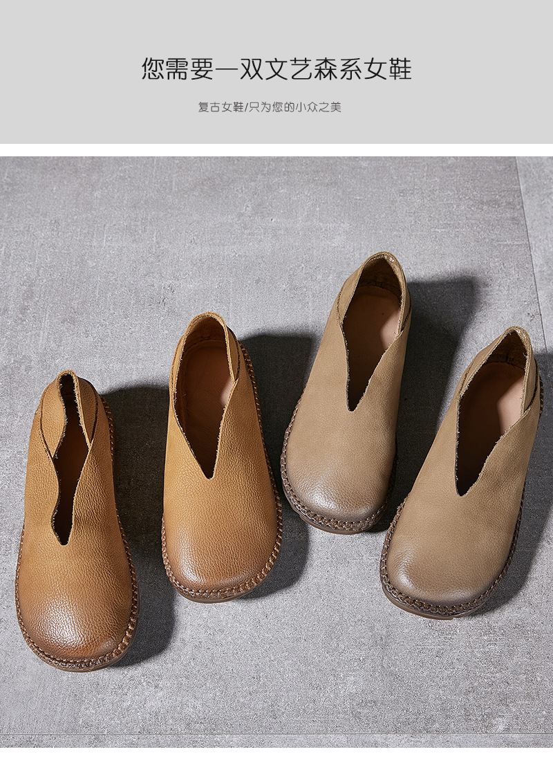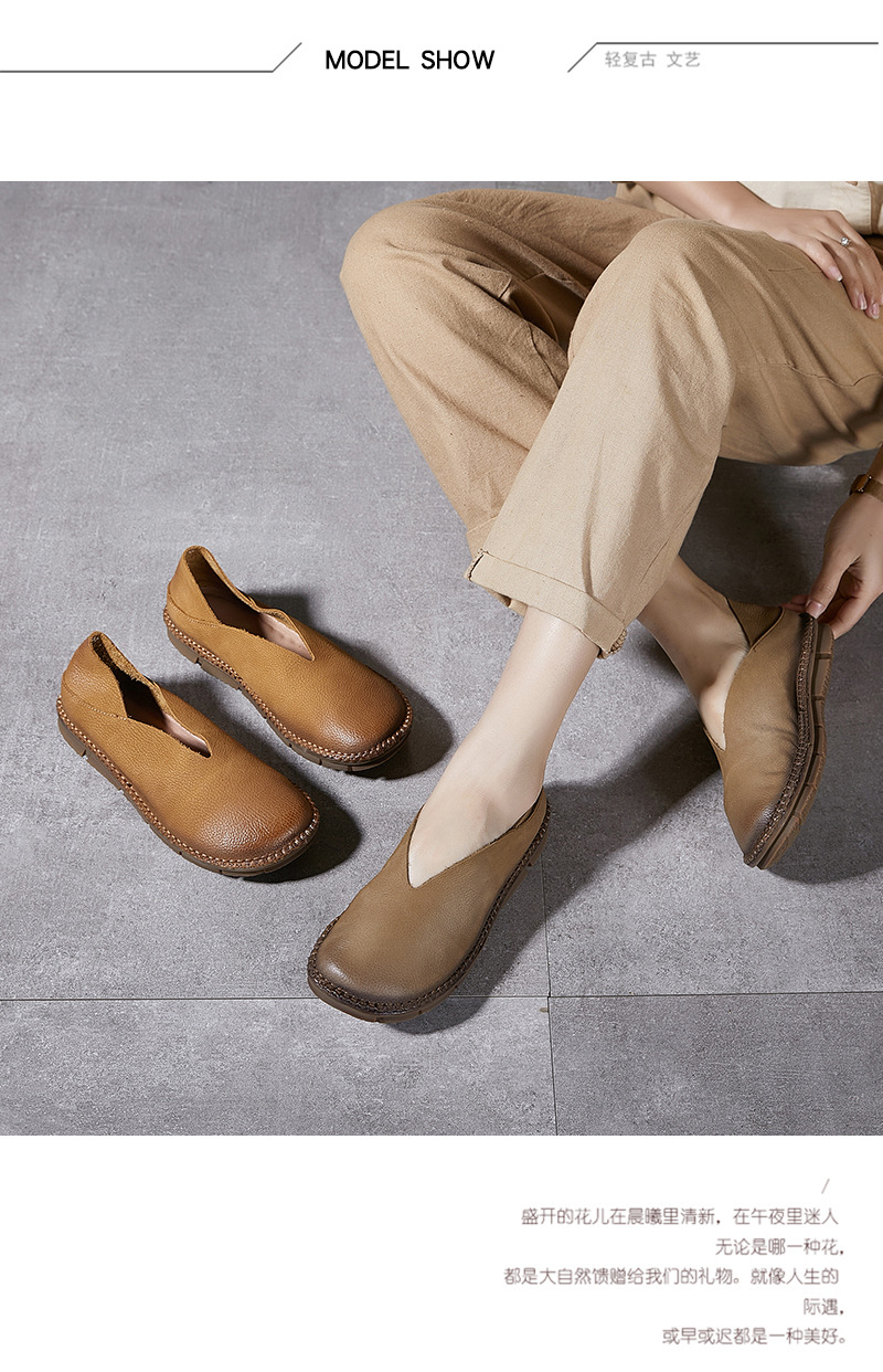 Platinum Disi 새로운 정품 가죽 부드러운 가죽 여성 신발 둥근 발가락 슬립-얕은 입 싱글 레이어 신발 여성용 소 가죽 복고풍 수제 여성 신발스토어 가기
