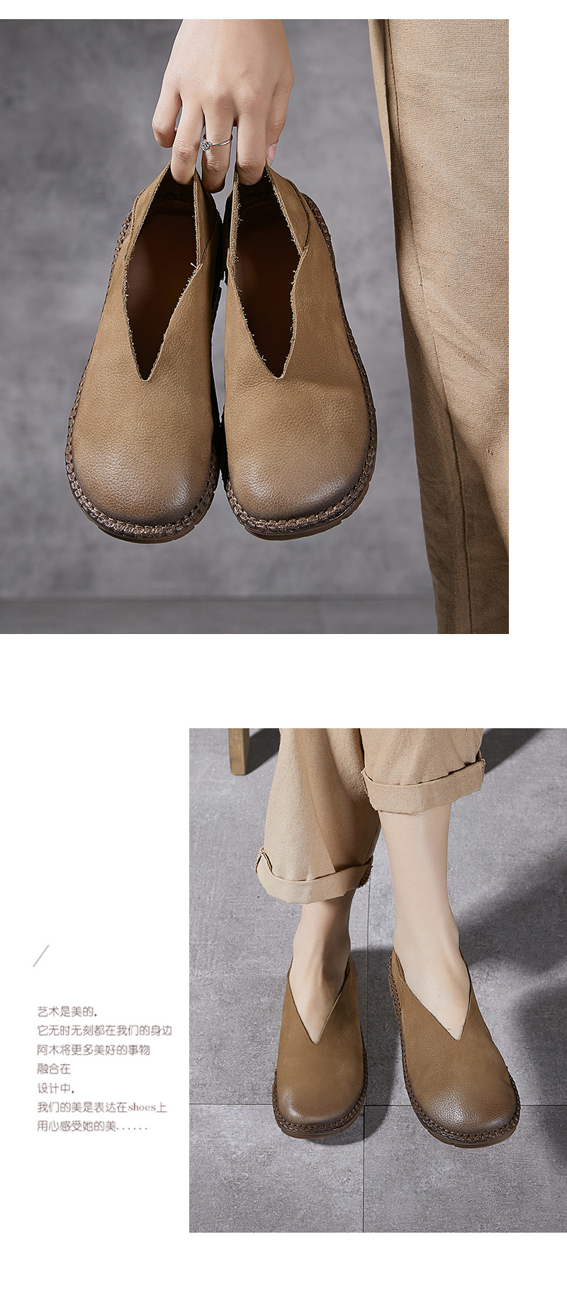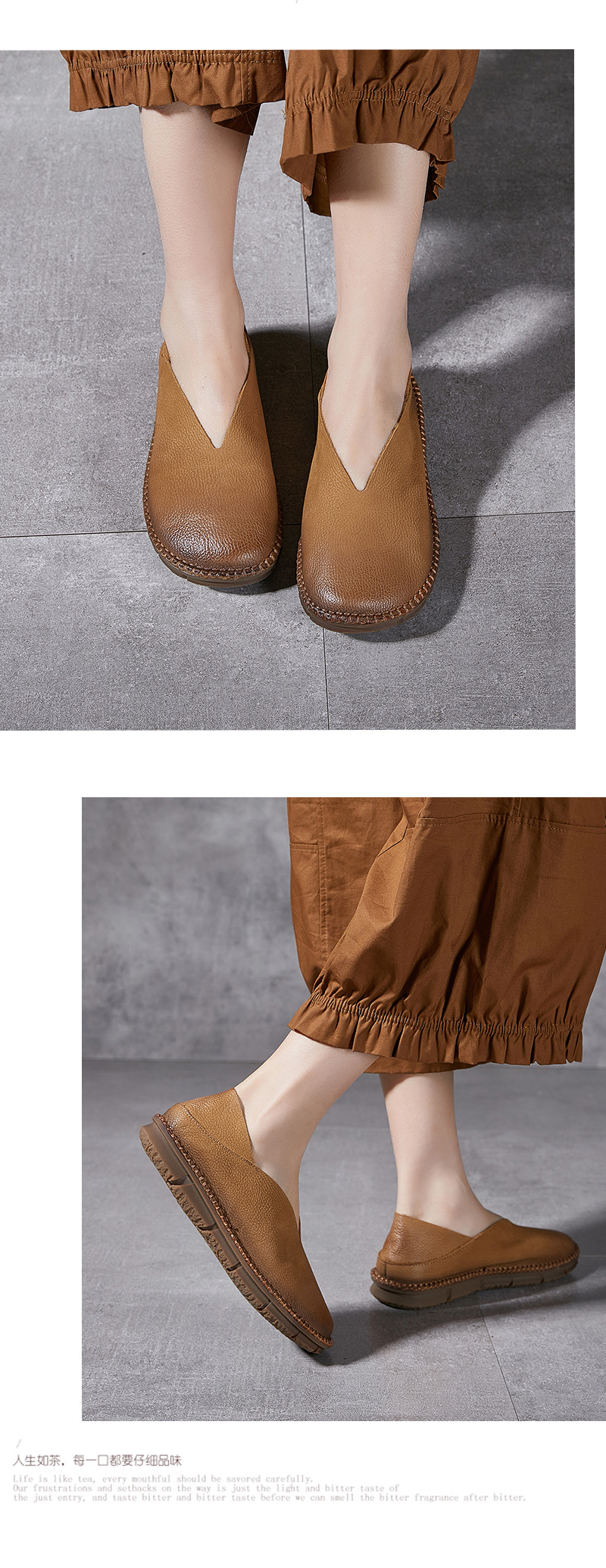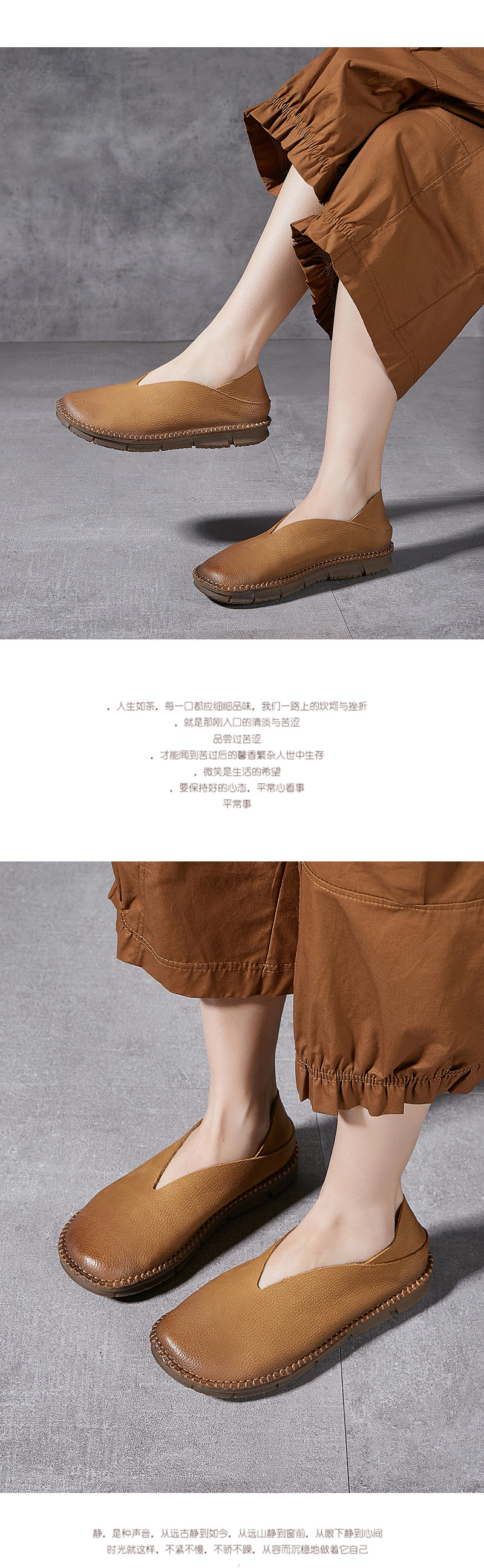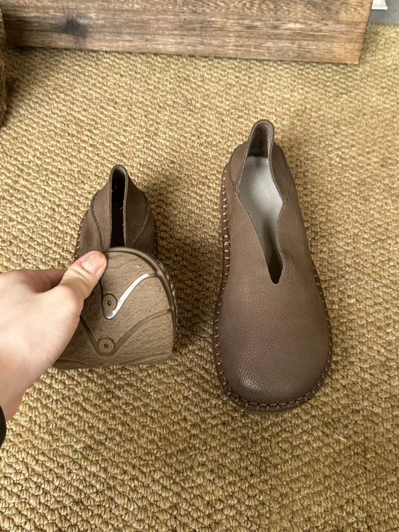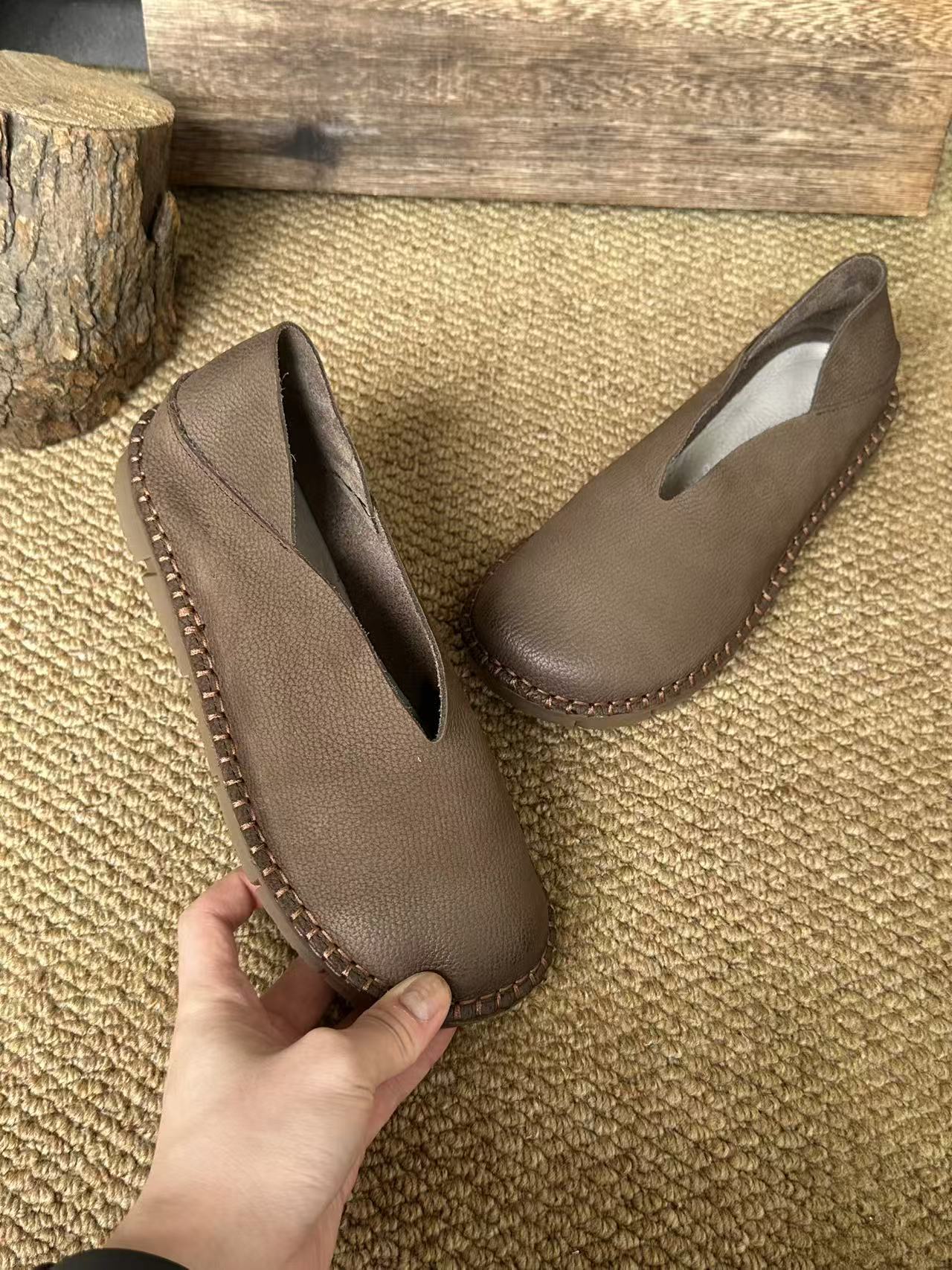 Platinum Disi 새로운 정품 가죽 부드러운 가죽 여성 신발 둥근 발가락 슬립-얕은 입 싱글 레이어 신발 여성용 소 가죽 복고풍 수제 여성 신발스토어 가기
