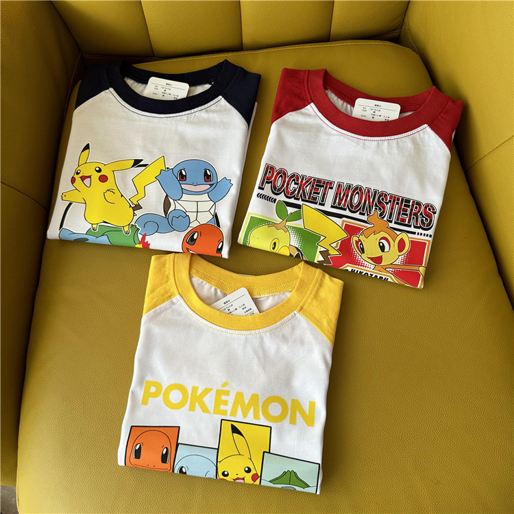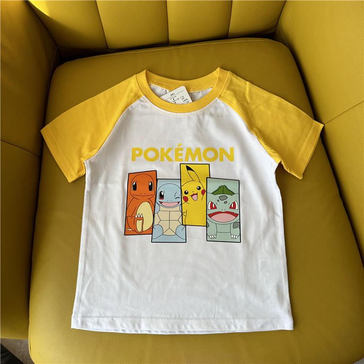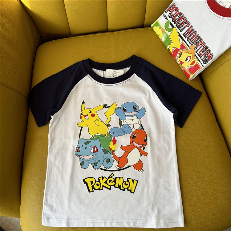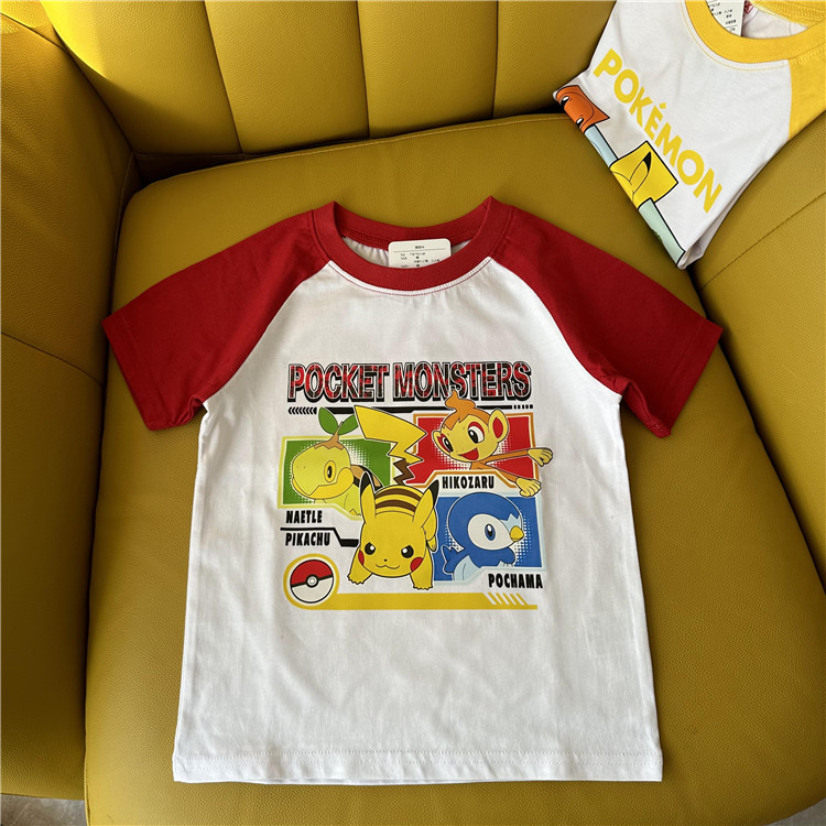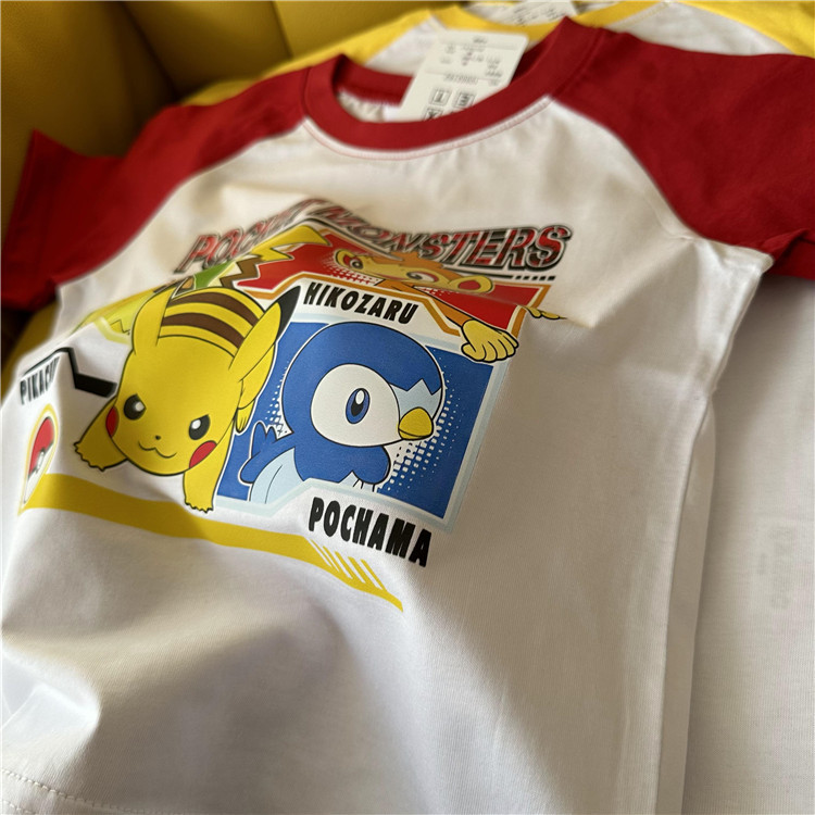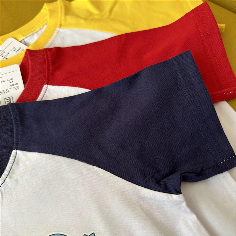 日单外贸卡通动漫拼色袖子童装夏季短袖T恤衫