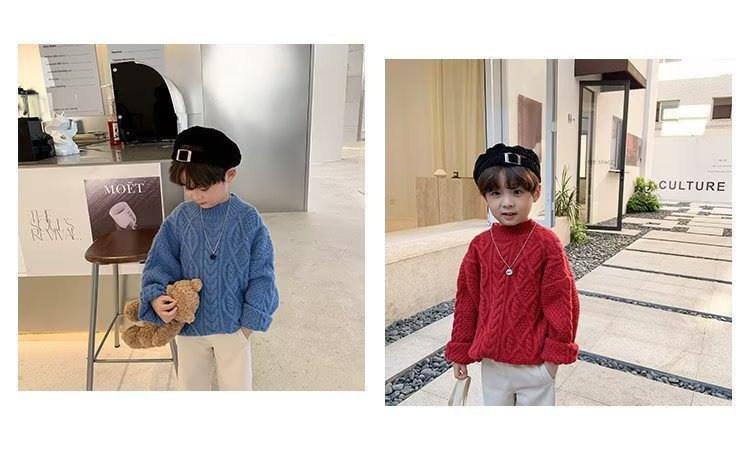 어린이 두꺼운 크루 넥 풀오버 레드 트위스트 스웨터 겨울 한국 스타일 소년과 소녀의 긴 소매 내부 니트 탑 트렌디스토어 가기