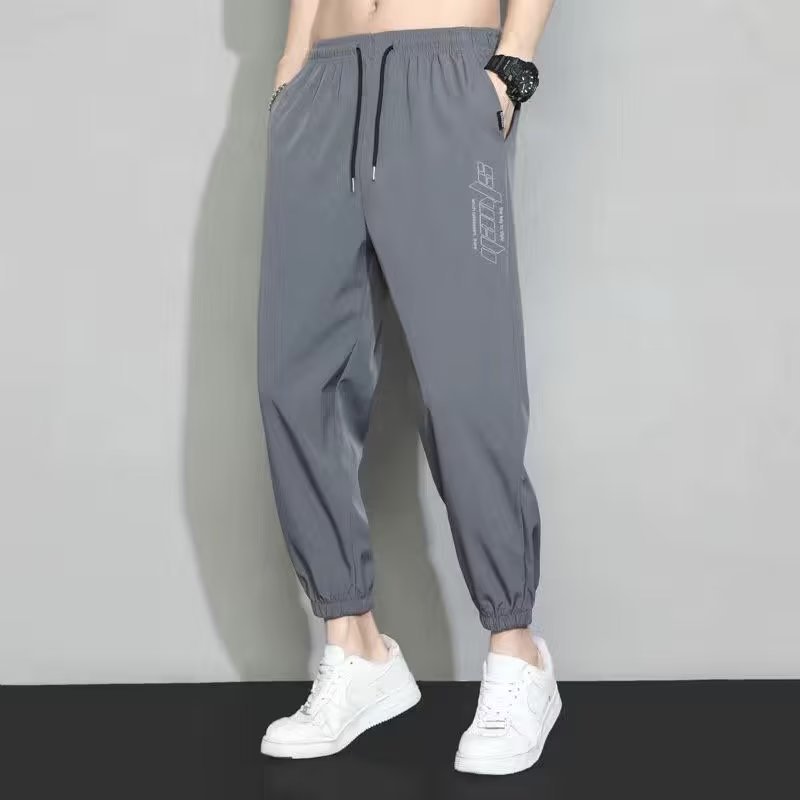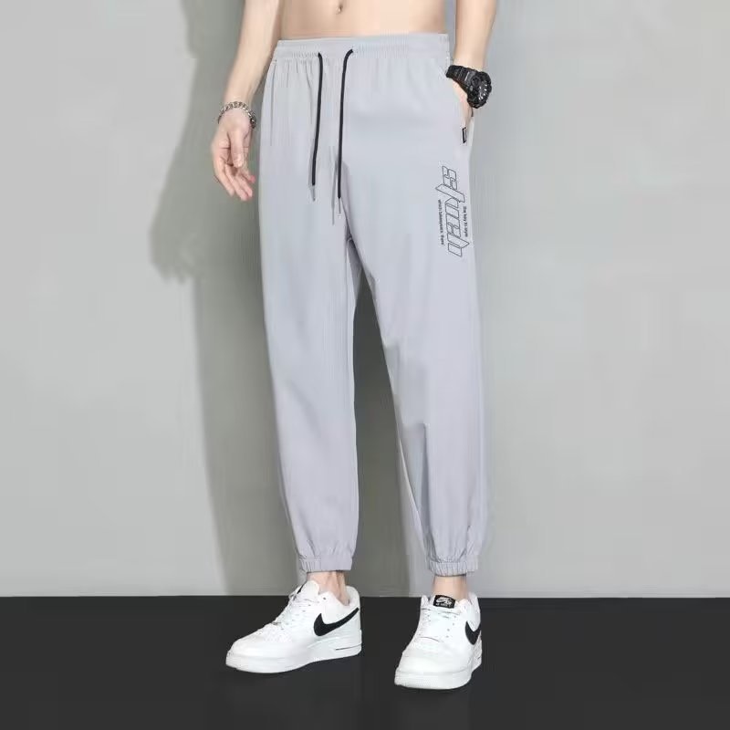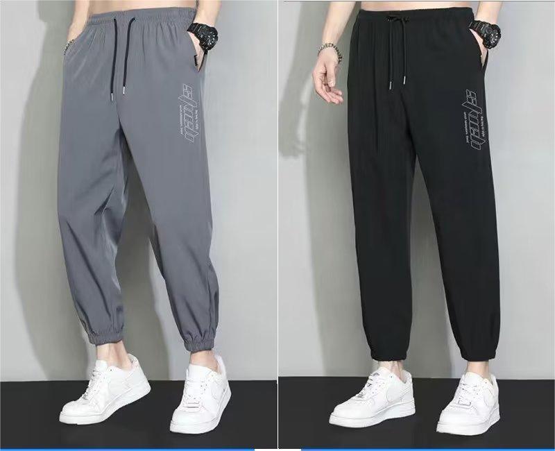 아이스 실크 바지 남성용 여름 얇은 느슨한 캐주얼 크롭 바지 발목 묶음 바지 빠른 건조 다용도 스포츠 하렘 바지 남성스토어 가기