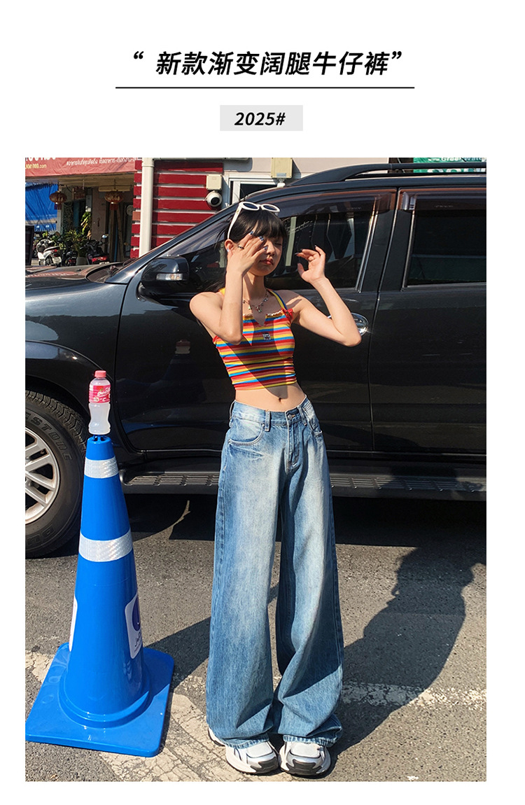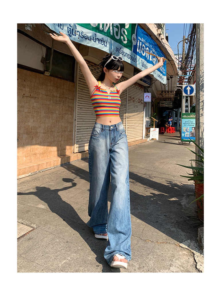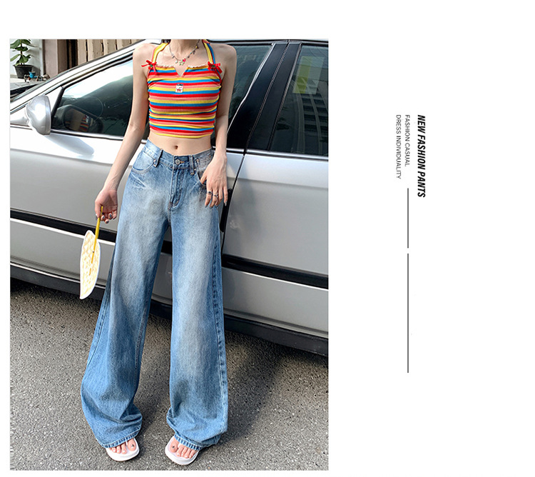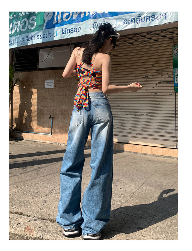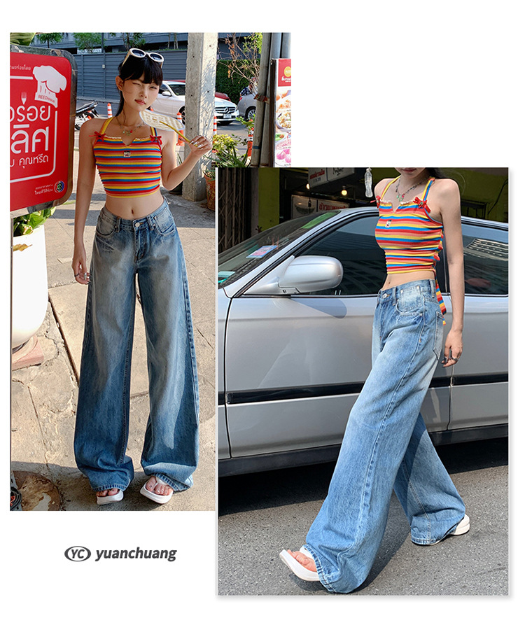 여성을위한 미국 복고풍 와이드 레그 청바지 봄, 가을 새로운 스타일 스트레이트 루즈 하이 웨이스트 슬림 바닥 청소 바지스토어 가기