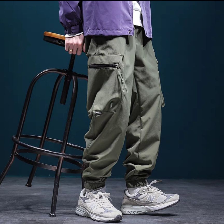 새로운 미국식 바지 남성 봄과 가을 발목 묶은 야외 충전 바지 얇은 캐주얼 바지 플러스 사이즈 바지스토어 가기