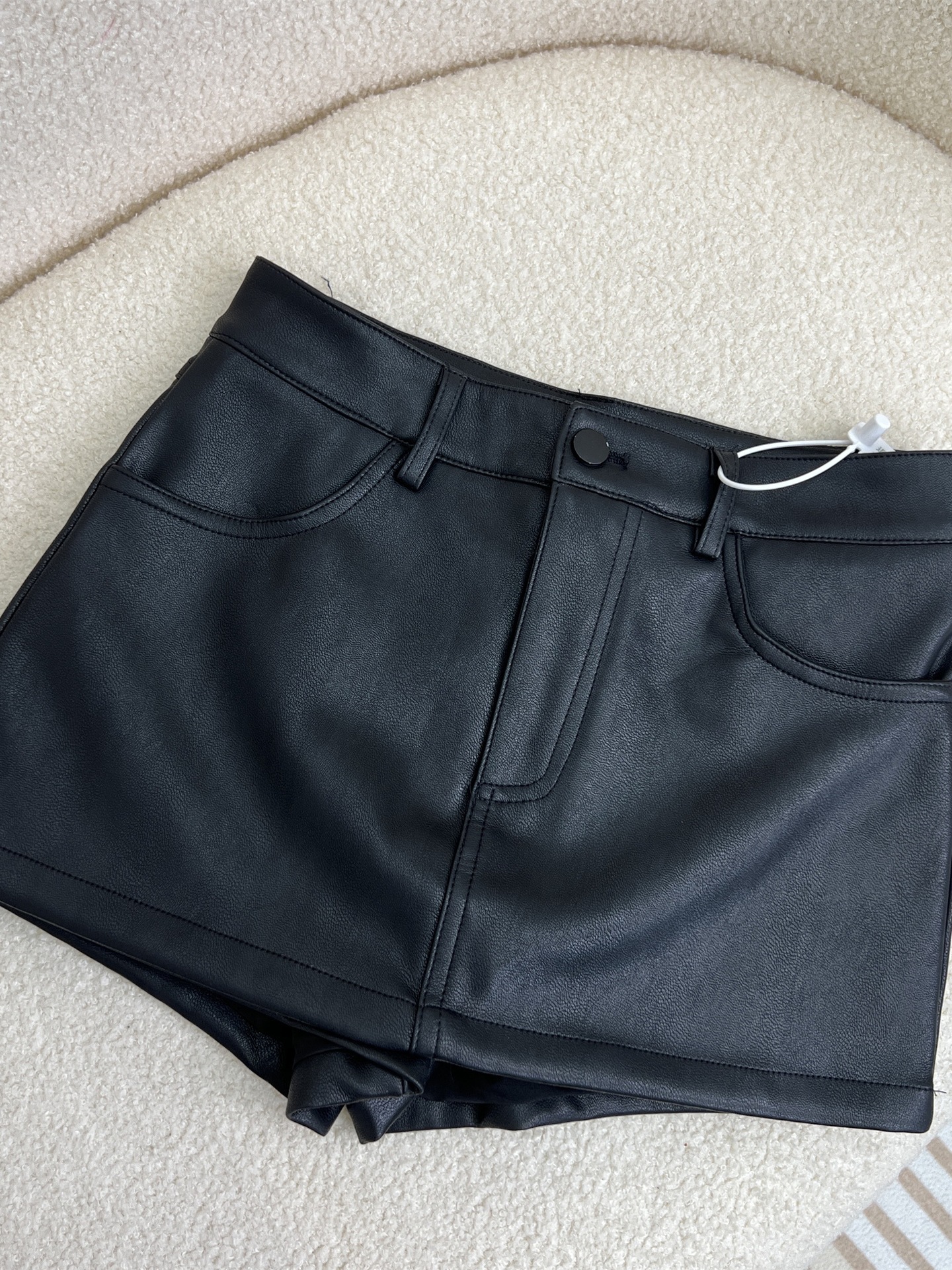검은 pu 치마 뜨거운 소녀 미니 스커트 2023 가을과 겨울 새로운 높은 허리 질감 A 라인 엉덩이 스커트 가죽 스커트 여성