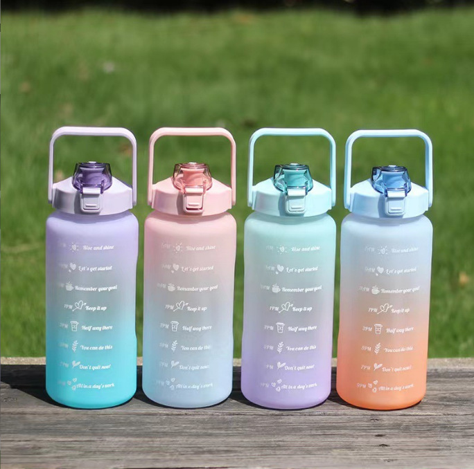 대외 무역 그라디언트 컬러 젖빛 플라스틱 컵 대용량 주전자 휴대용 피트니스 물병 2000ML 밀짚 공간 컵스토어 가기