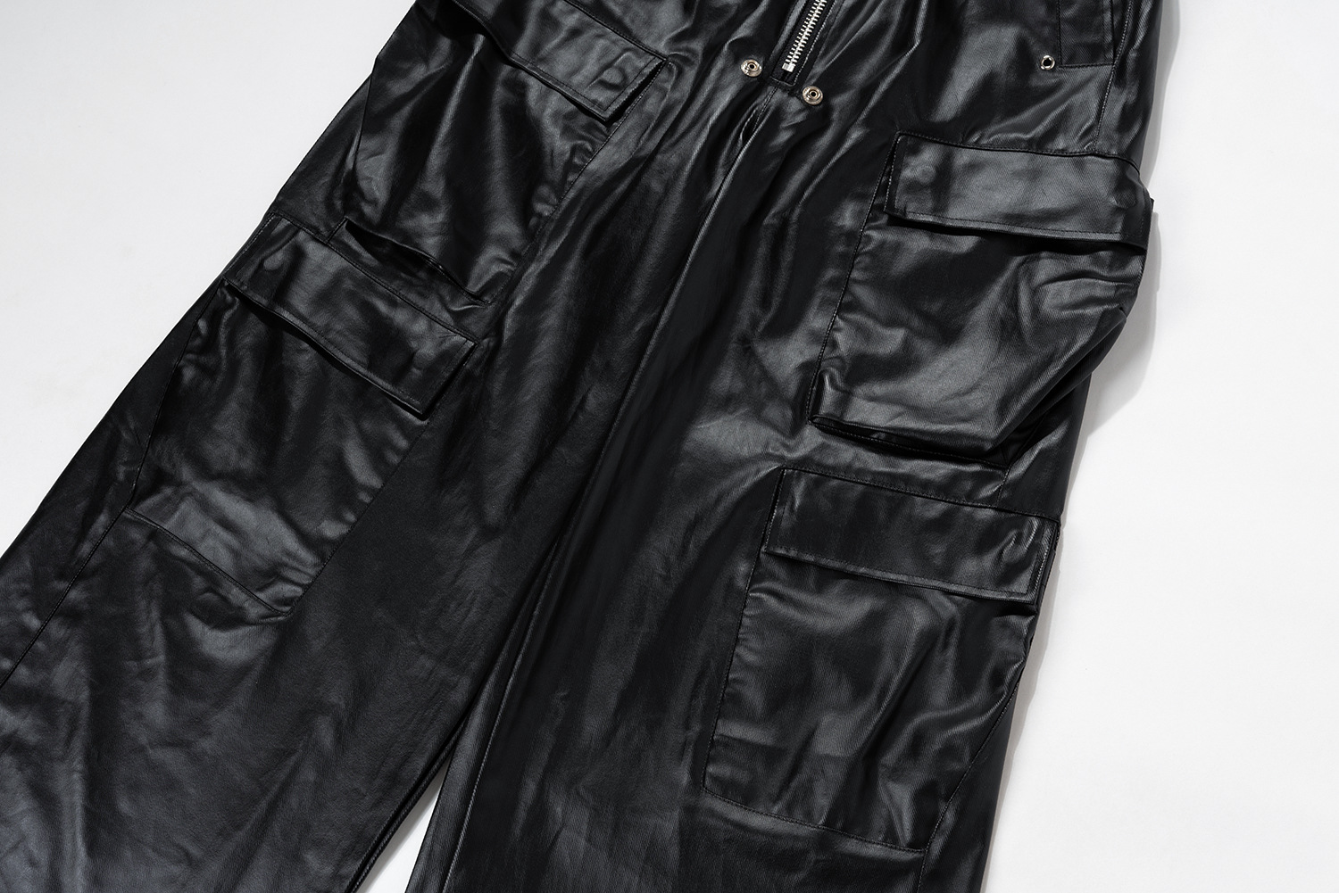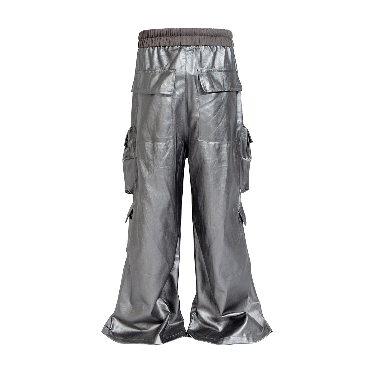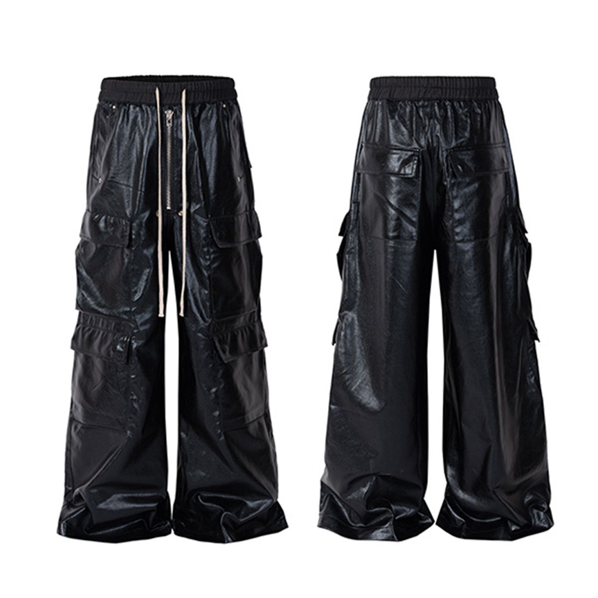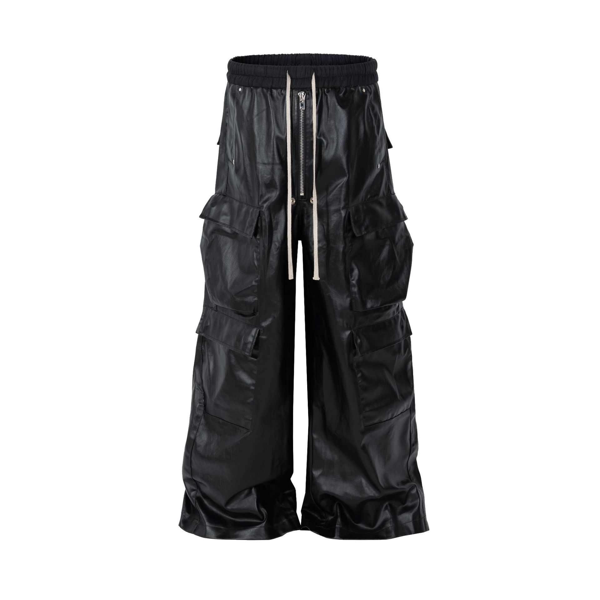 Jiayiku Chaozhou 브랜드 ∠ 미국 스트리트 RO 스타일 오버볼 남성 모방 가죽 레이어 스테레오 포켓 와이드 다리 뿔 바지