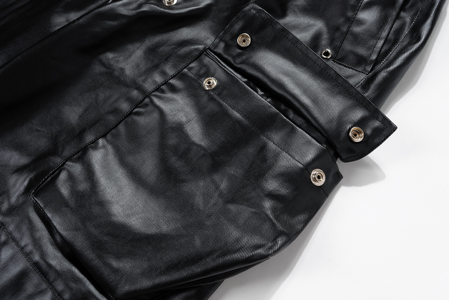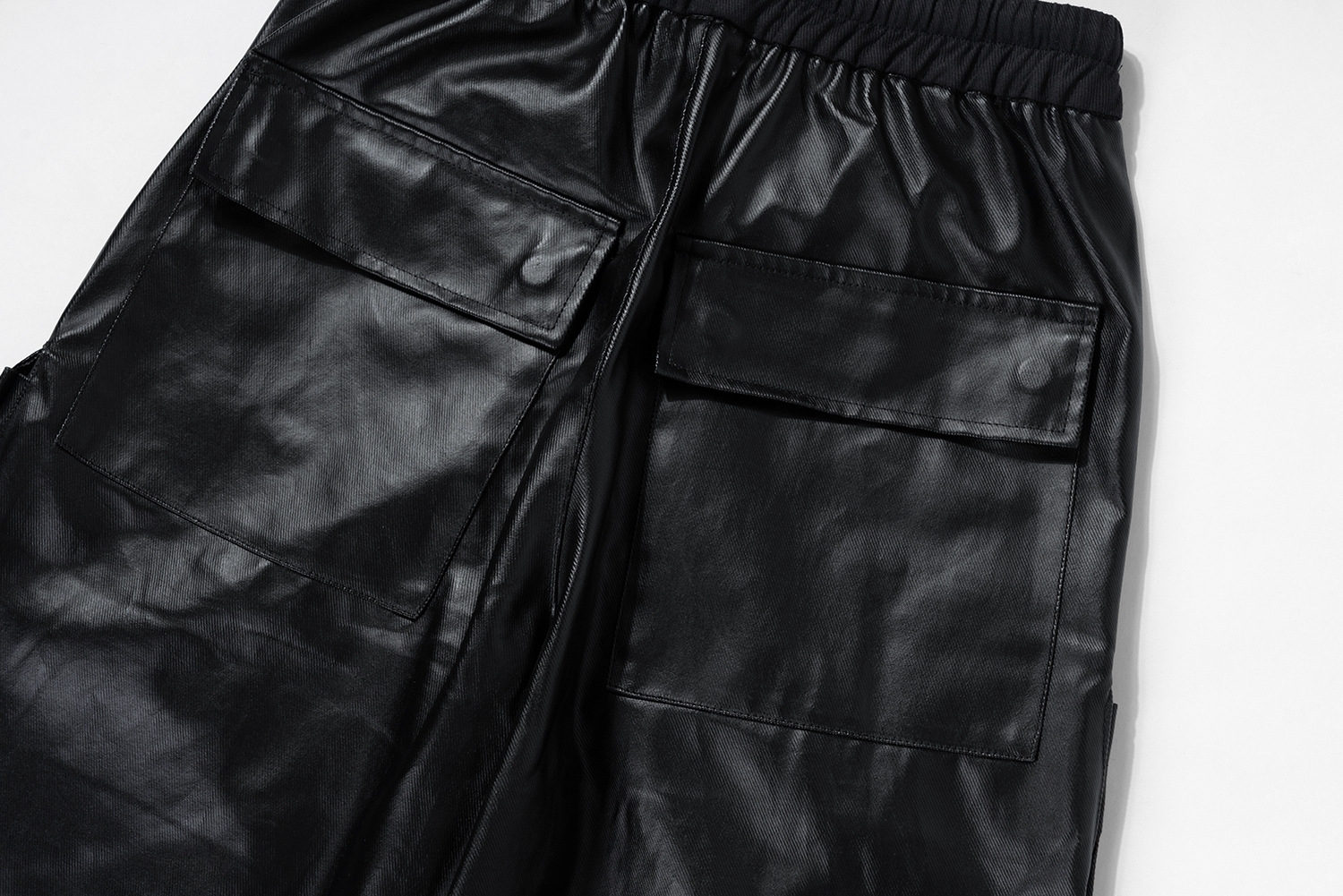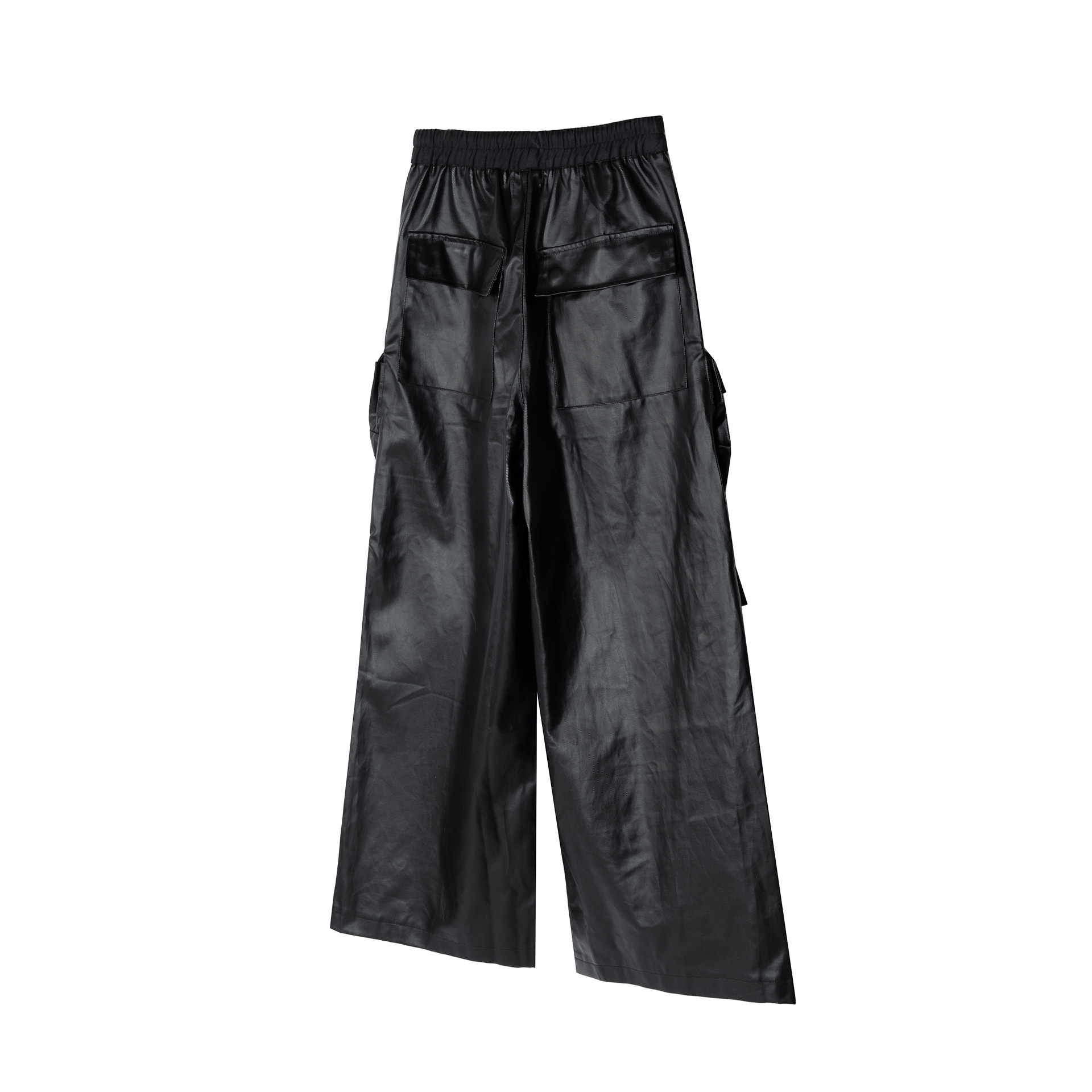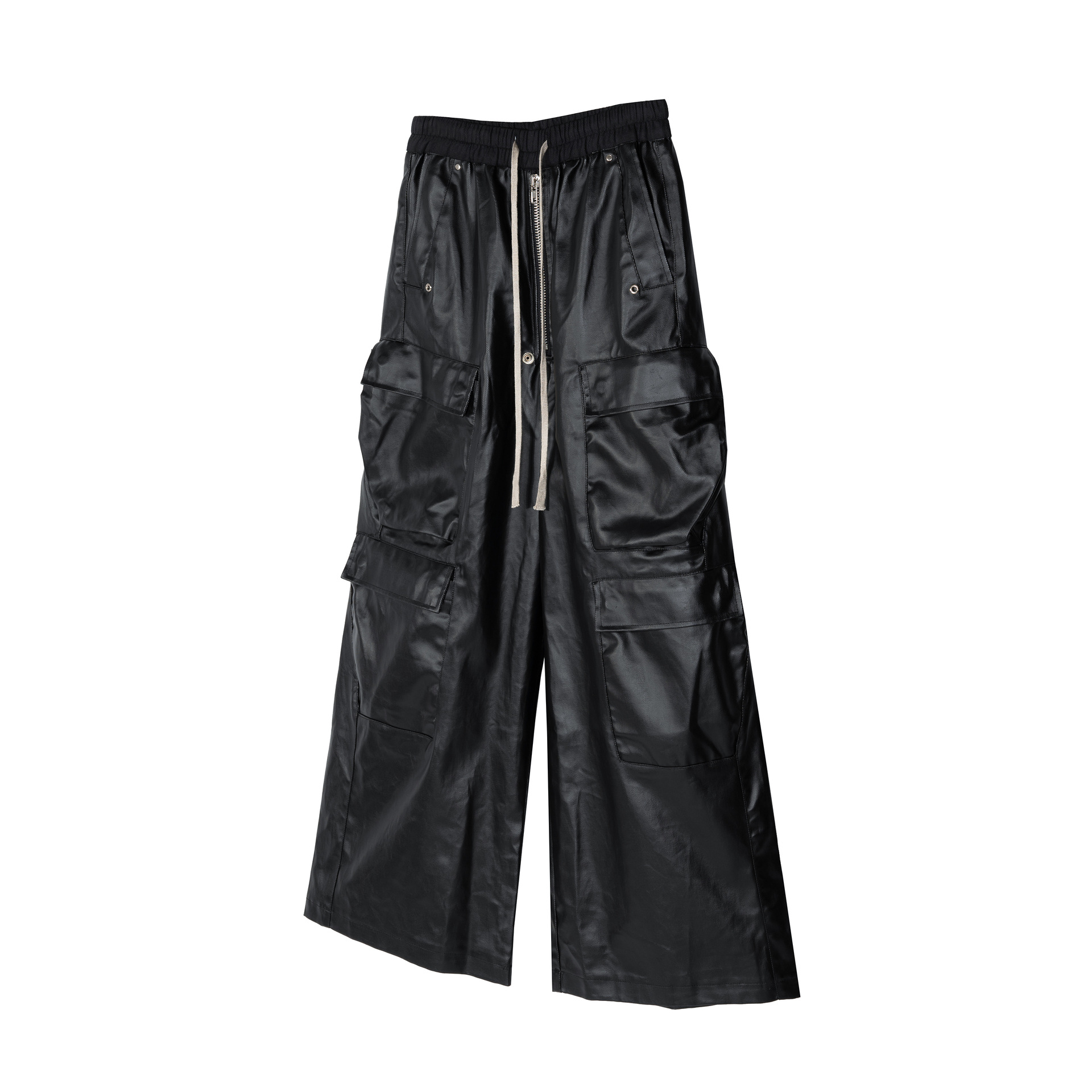Jiayiku Chaozhou 브랜드 ∠ 미국 스트리트 RO 스타일 오버볼 남성 모방 가죽 레이어 스테레오 포켓 와이드 다리 뿔 바지
