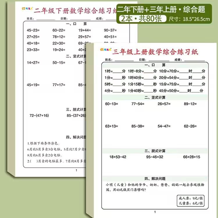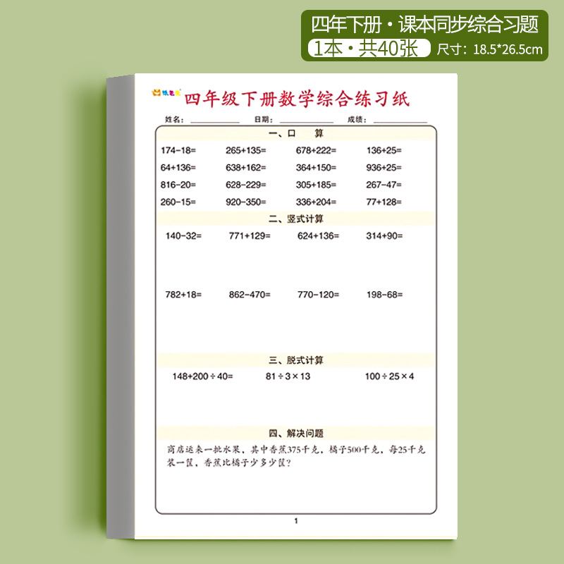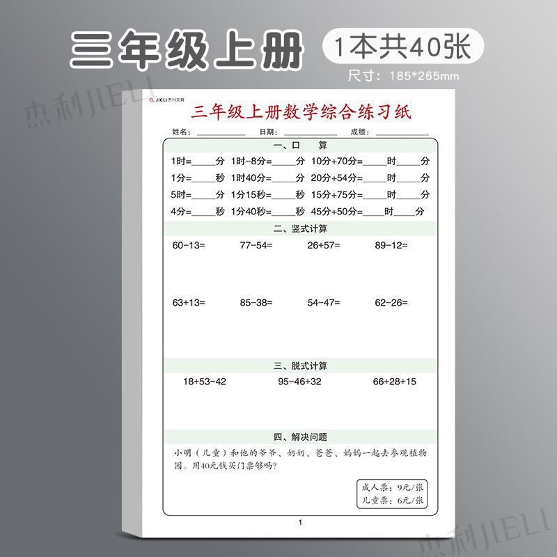 23-4 학년 수학 종합 운동 용지 수직 계산 초등학교 학생의 구두 계산 응용 프로그램 문제 해결 매일 연습스토어 가기