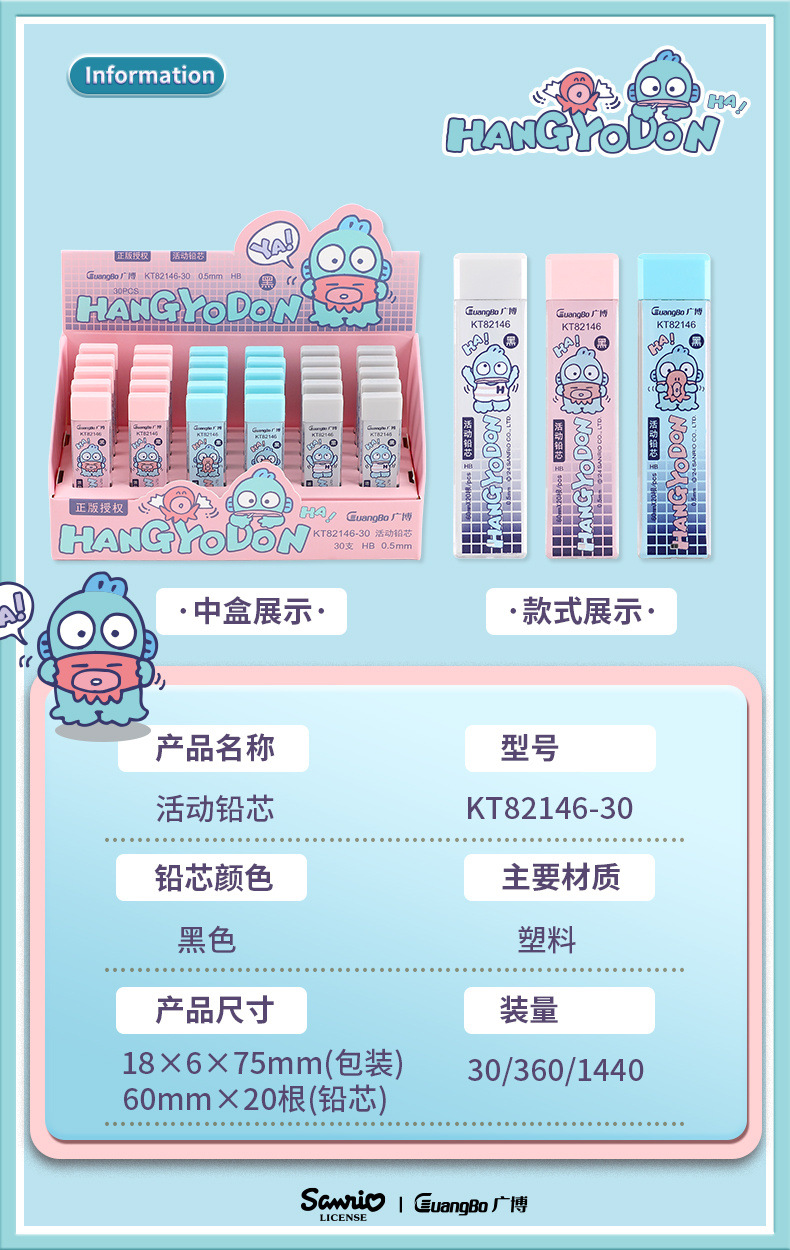 부드러운 학생 자동 연필 리필 쓰기 광보 KT82146-30 못생긴 물고기 이동식 리드 리필 0.5스토어 가기