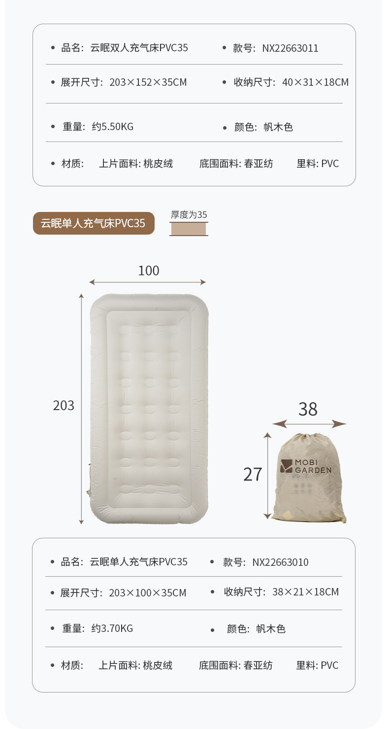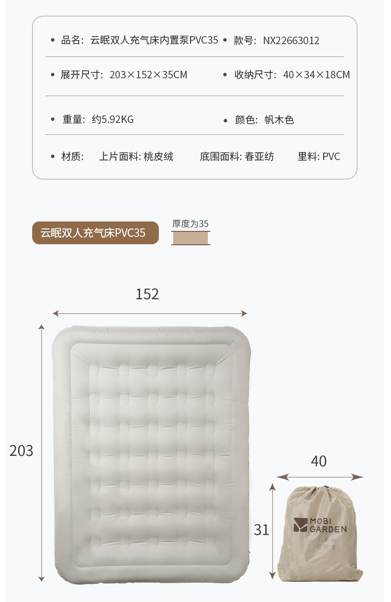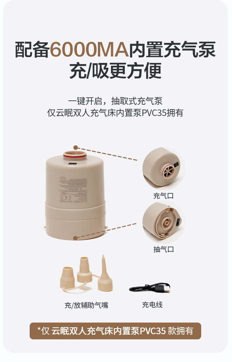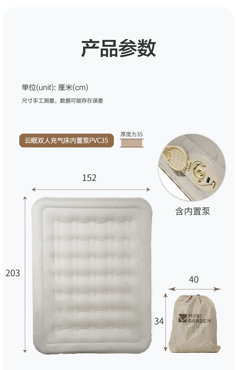 • Pump PVC25가 내장된 Yunmian 1.5m 더블 에어베드