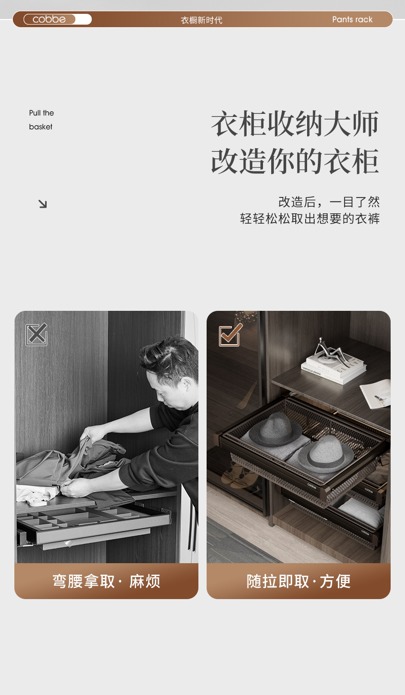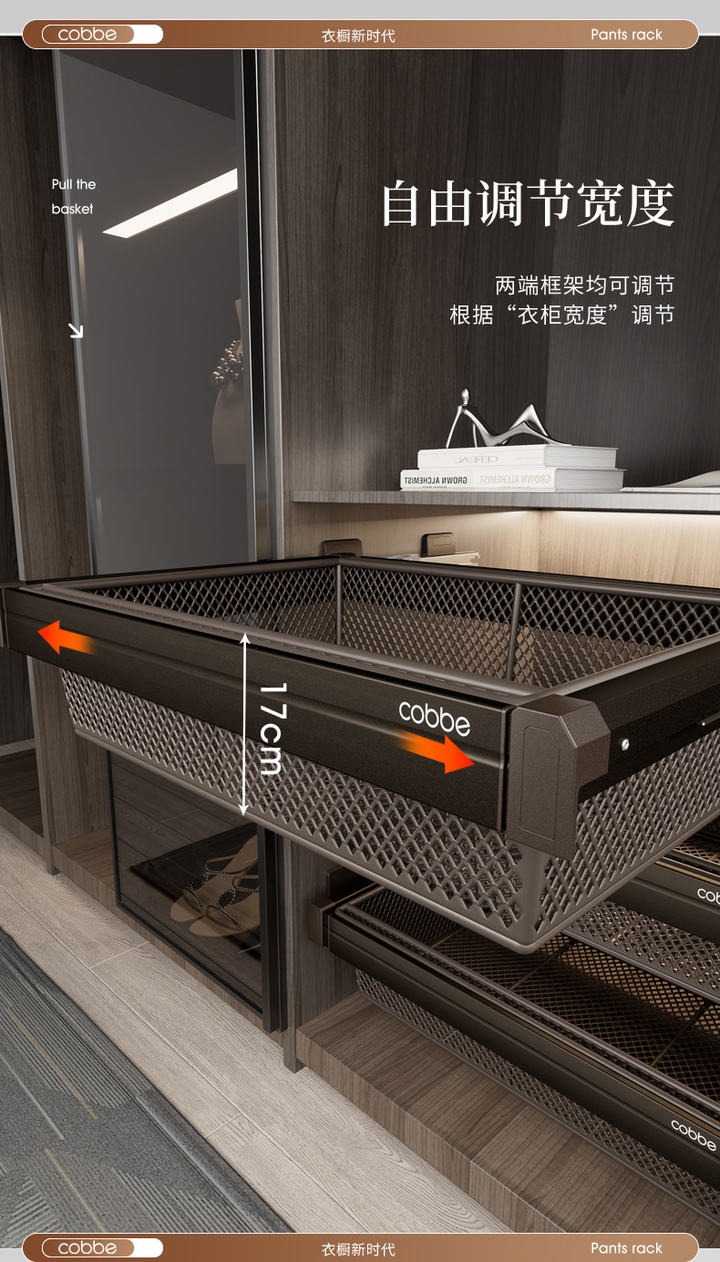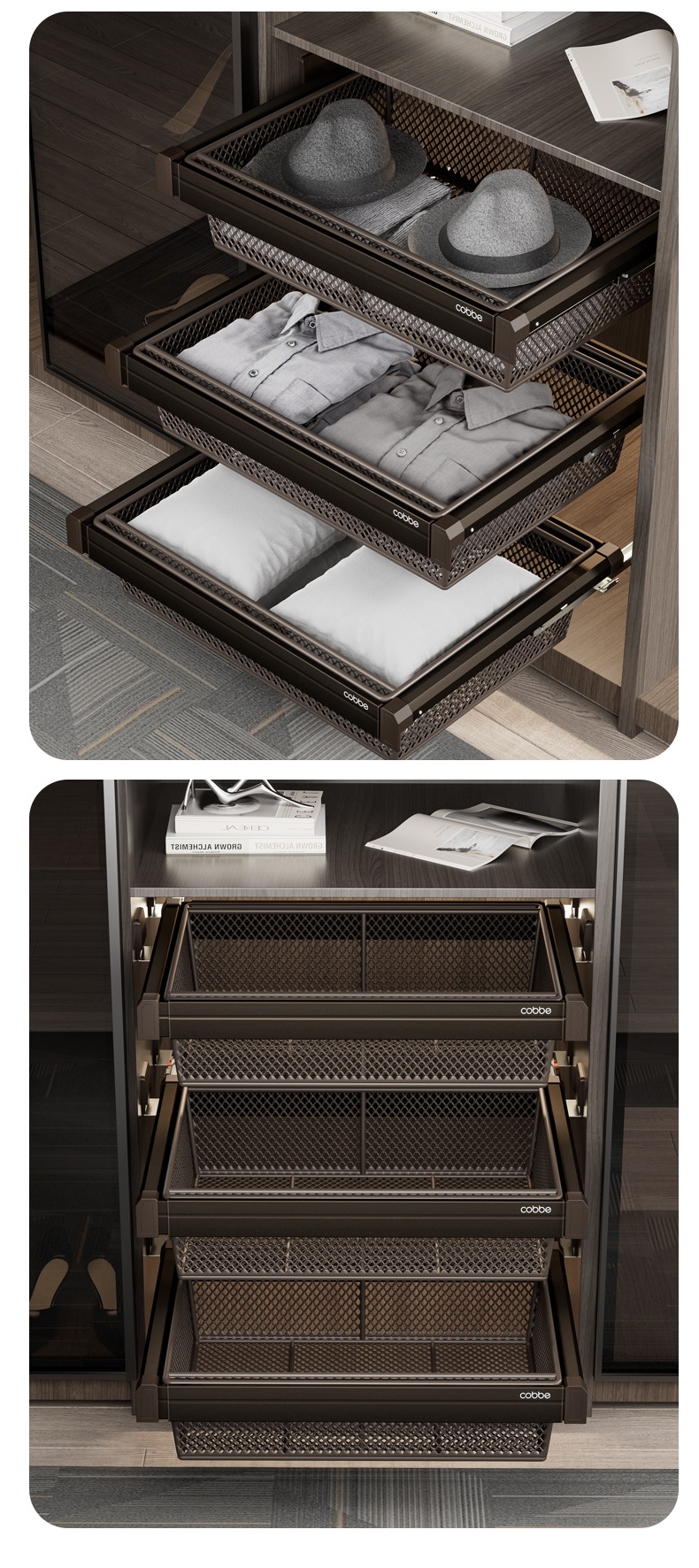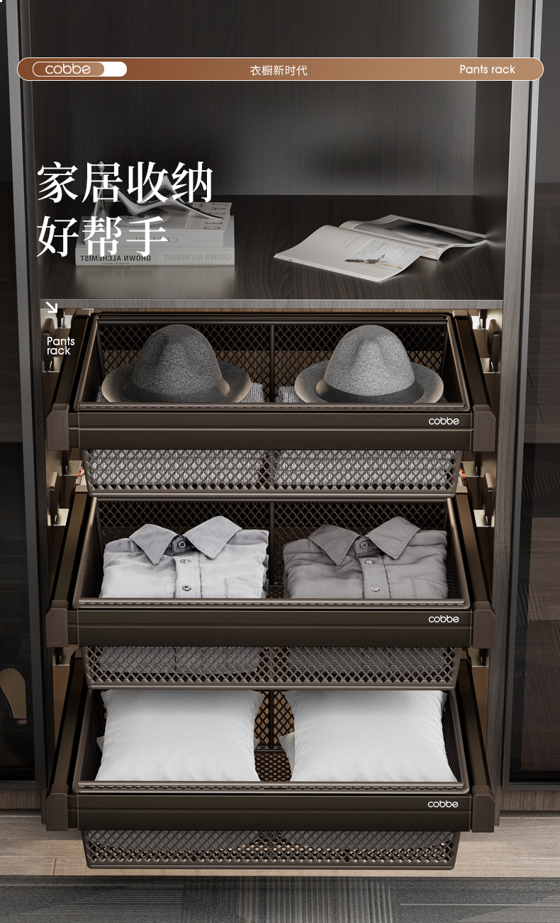 옷장 서랍 바구니 저장 바구니 서랍 유형 내장 바지 랙 텔레스코픽 슬라이드 레일 교수형 바지 서랍 스토리지 랙 하드웨어