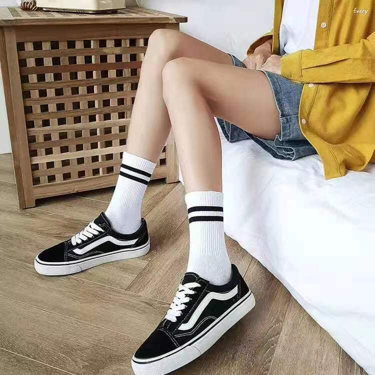 양말 여성 봄과 여름 양말 스트라이프 병렬 바 대학 패션 양말, 흑백 파일 양말 면화 양말 도매 양말스토어 가기