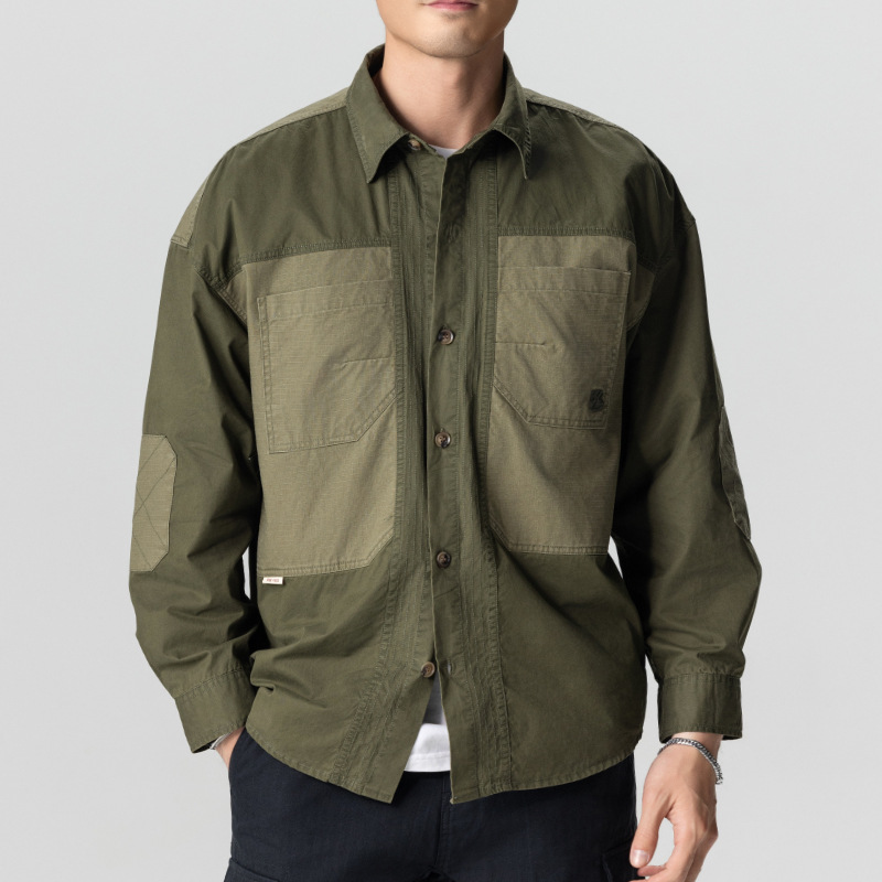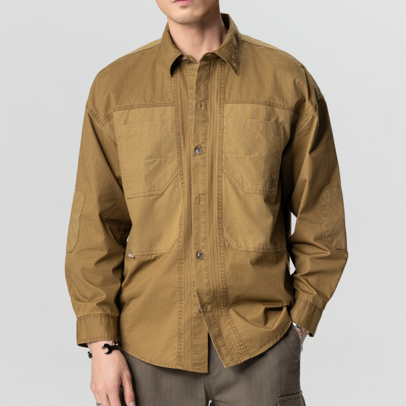 Muqiu 남성복 패션 브랜드 레트로 무거운 긴팔 셔츠 남성 산 디자인 야외 캐주얼 셔츠 재킷