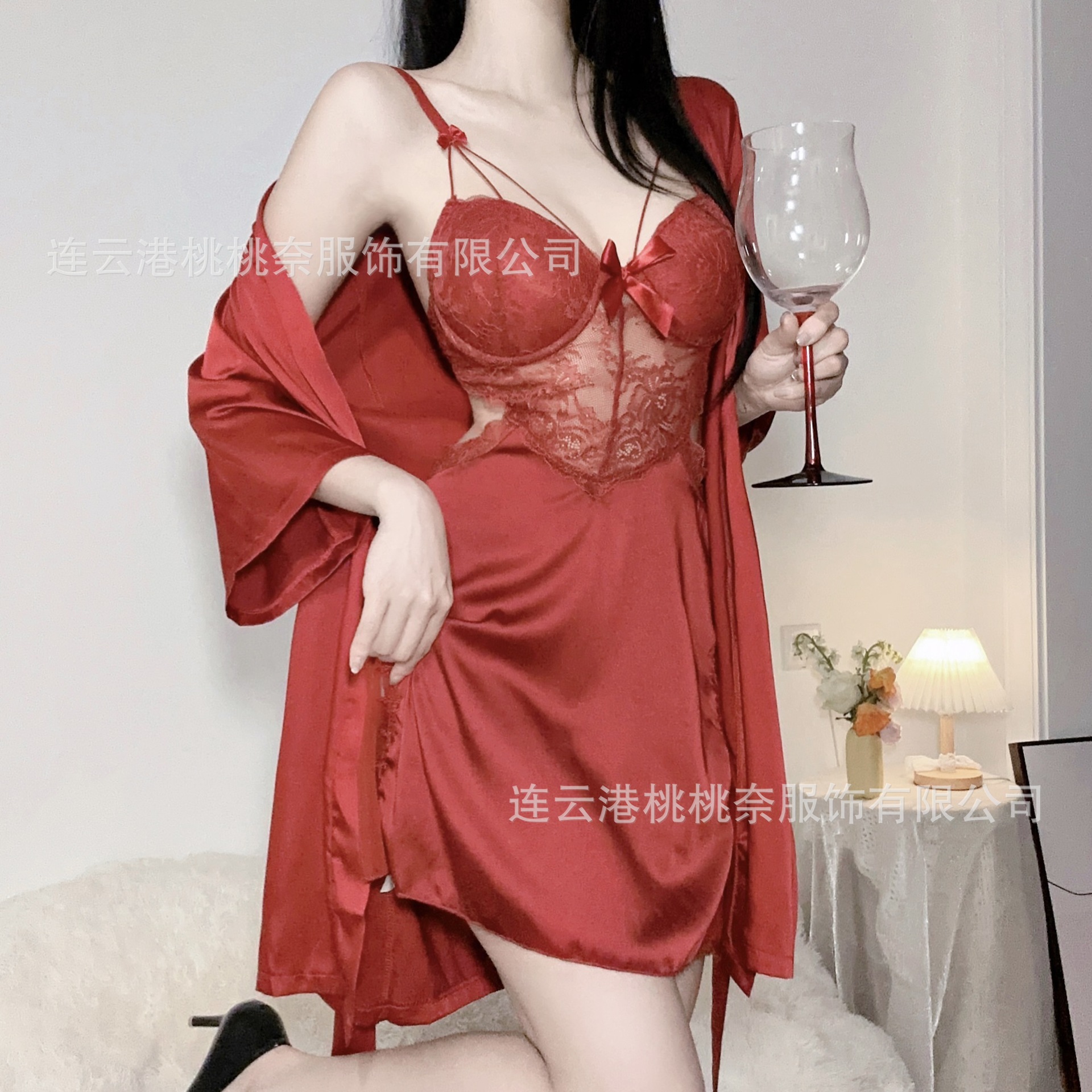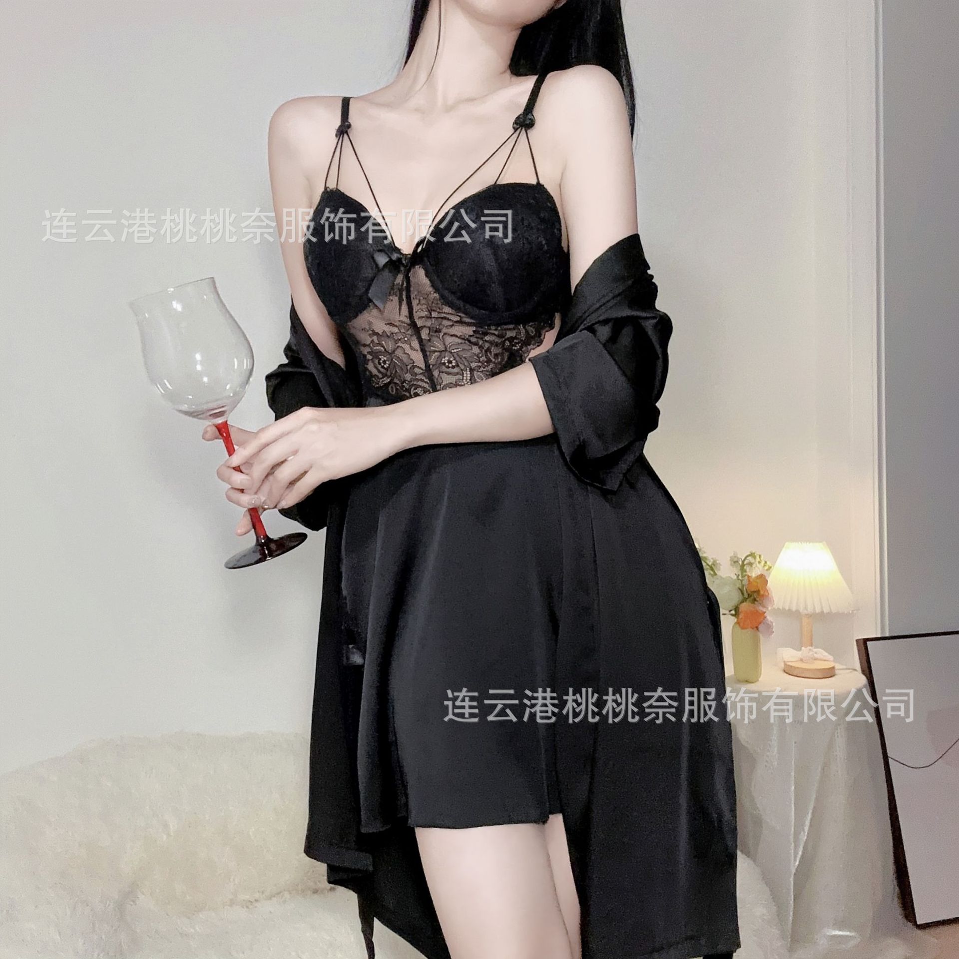 섹시한 잠옷 여성 아이스 리본 가슴 패드 스틸 링 큰 수집 작은 가슴 고급 레이스 뷰티 백 스트랩 섹시한 세트스토어 가기