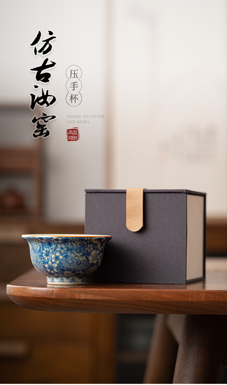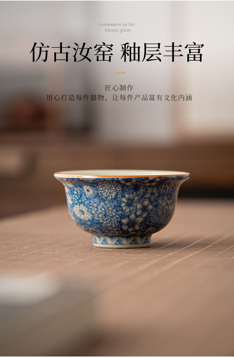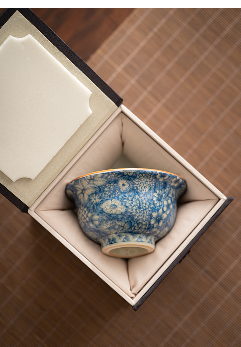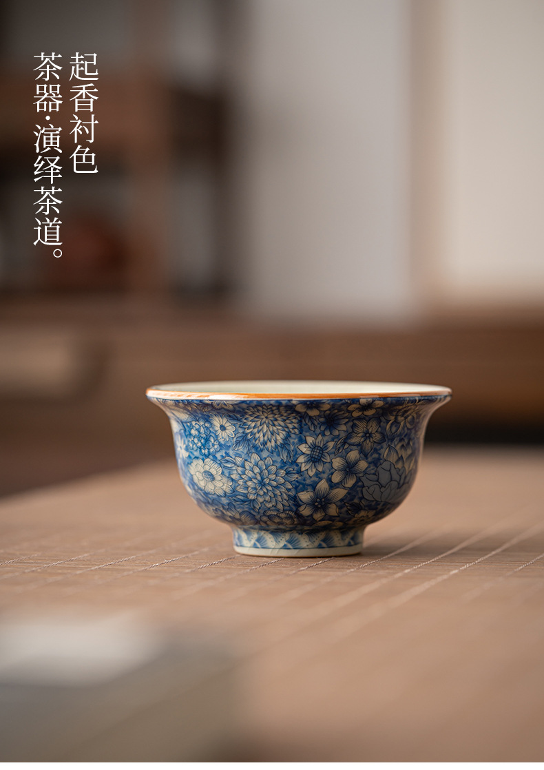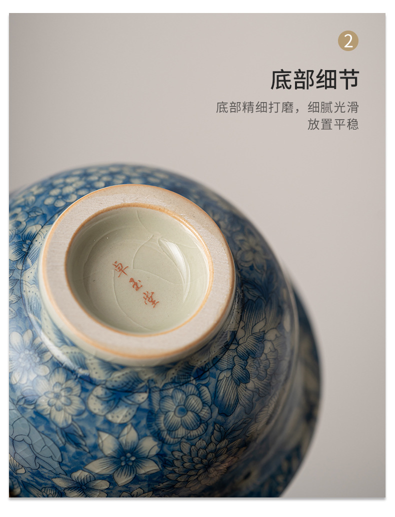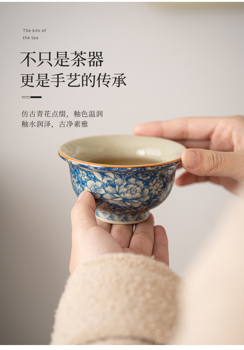 루 가마 꽃 티 컵 마스터 컵 싱글 컵 블루와 화이트 티 컵 하이 엔드 개인 전용 쿵푸 티 컵 세라믹 티 컵스토어 가기