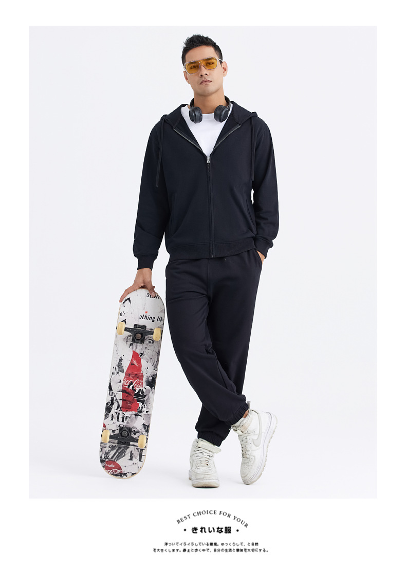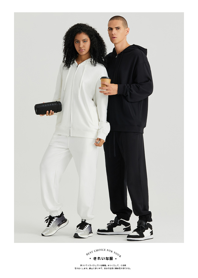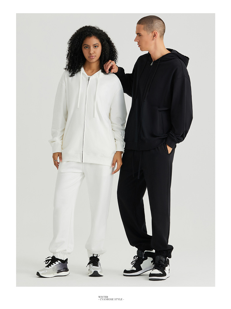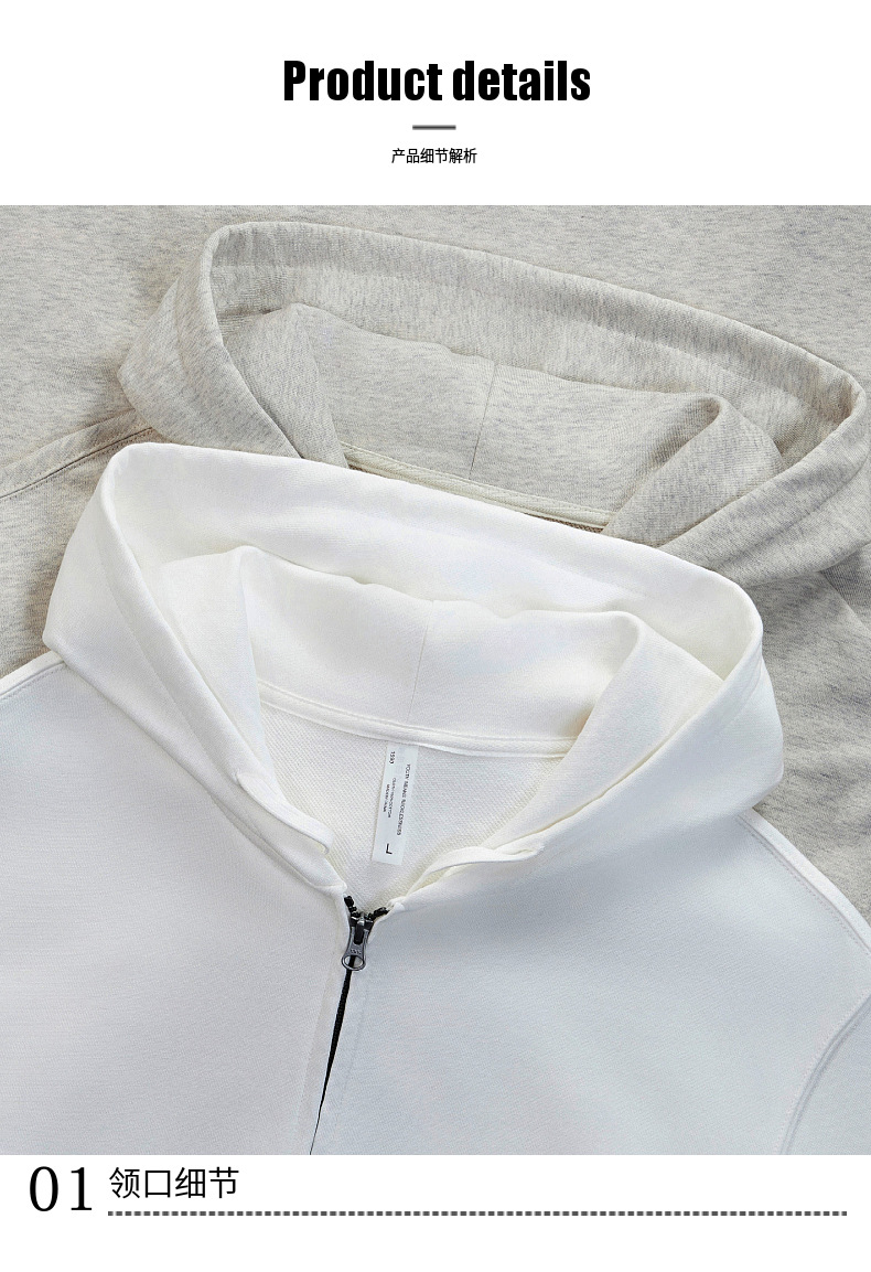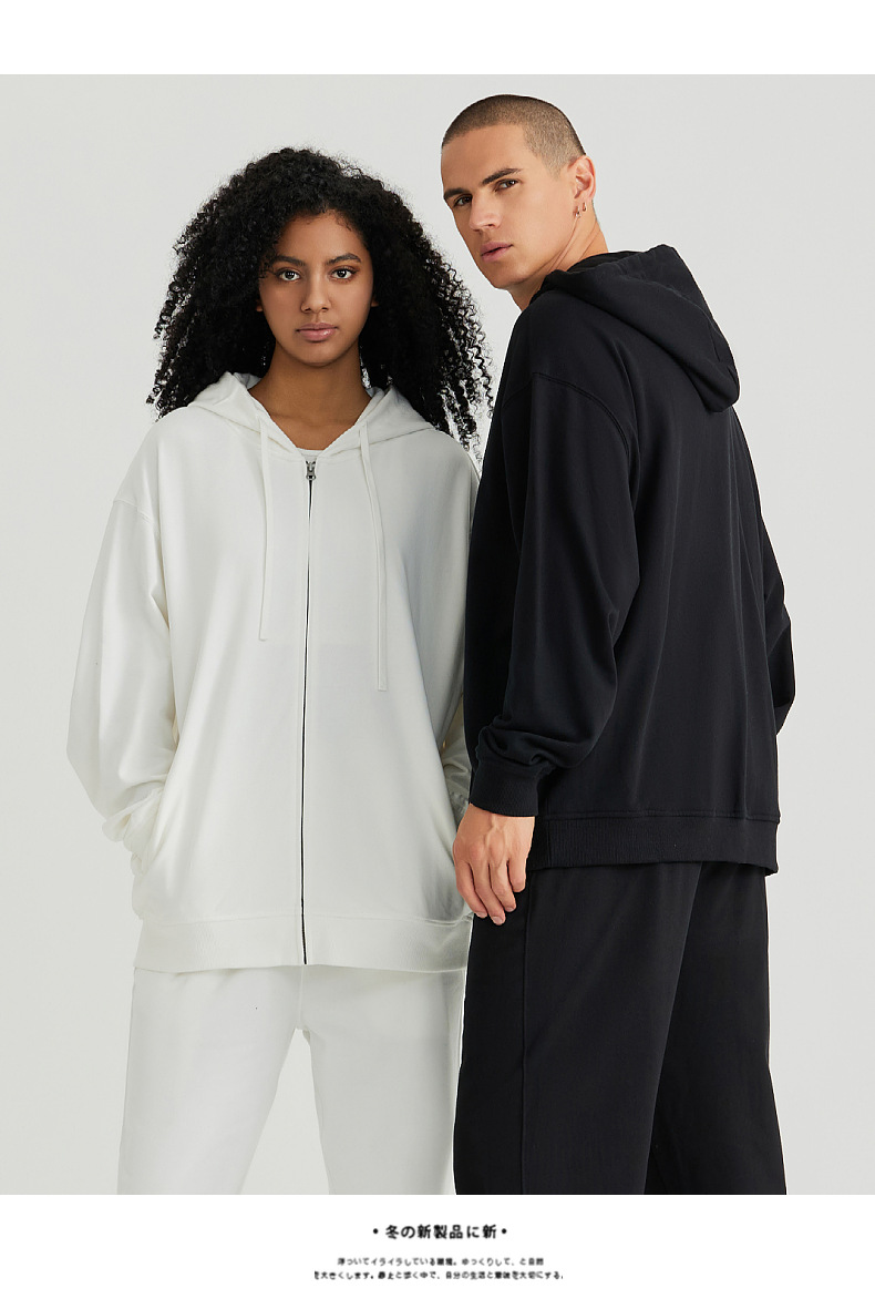 LVLV | 미국 스타일 크로스보더 헤비웨이트 순면 스웨트셔츠 단색 사이드 포켓 남성용 지퍼 스웨트셔츠 트렌디 커플룩 오픈형스토어 가기