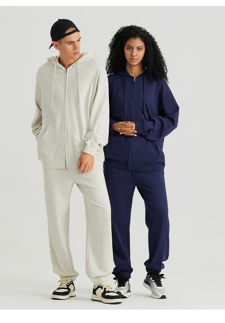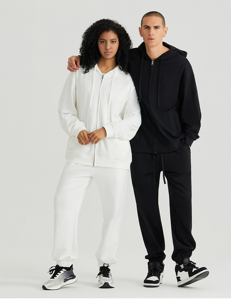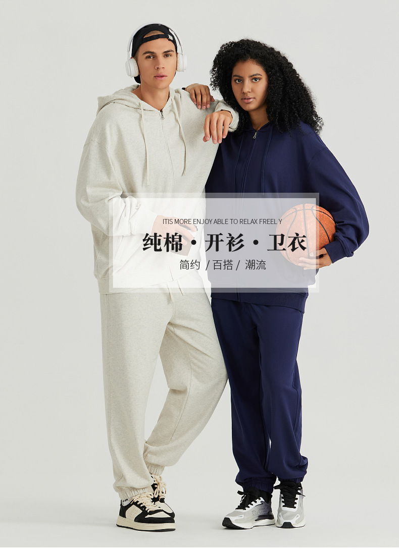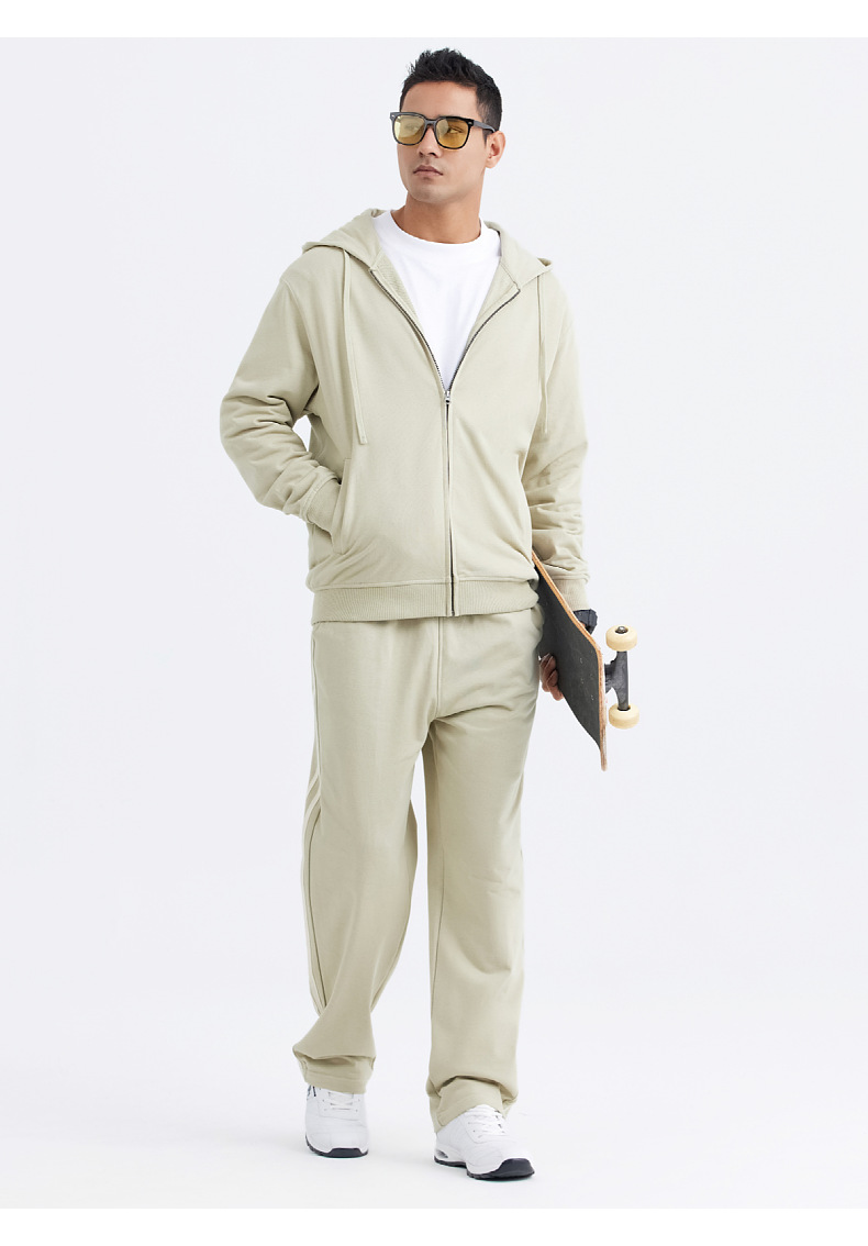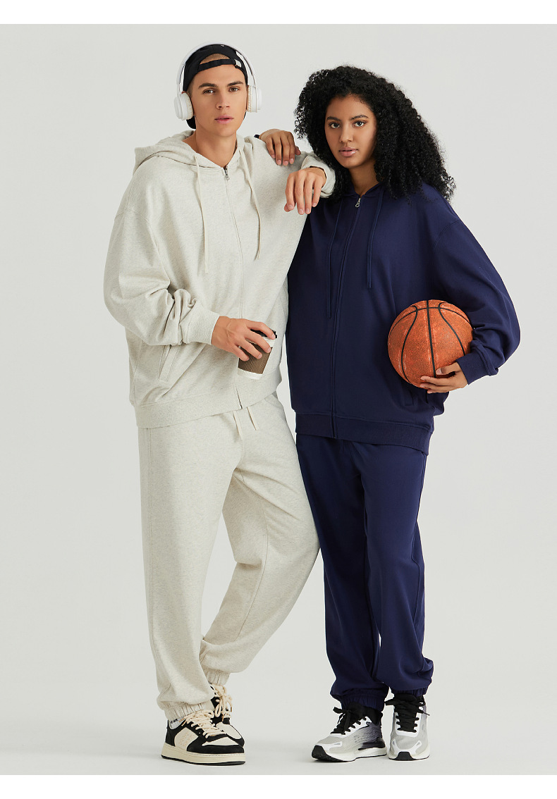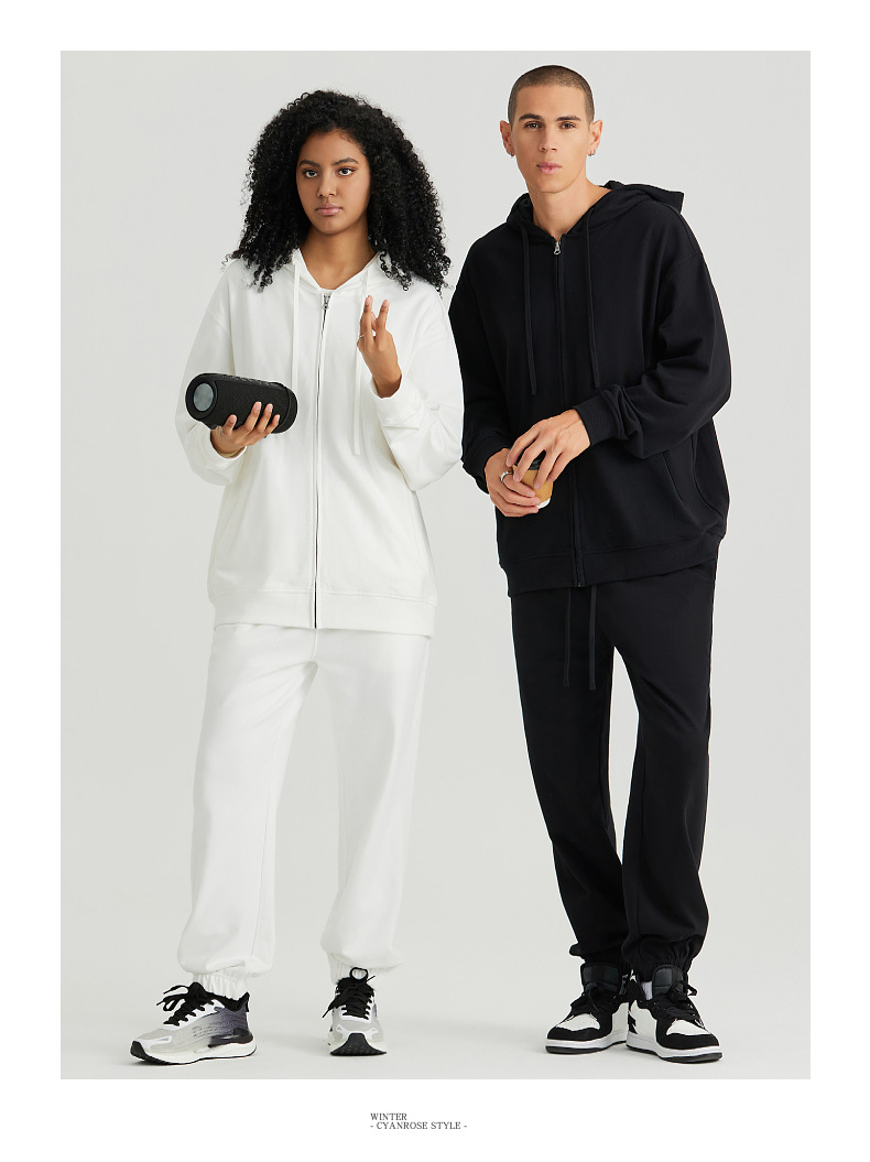 LVLV | 미국 스타일 크로스보더 헤비웨이트 순면 스웨트셔츠 단색 사이드 포켓 남성용 지퍼 스웨트셔츠 트렌디 커플룩 오픈형스토어 가기
