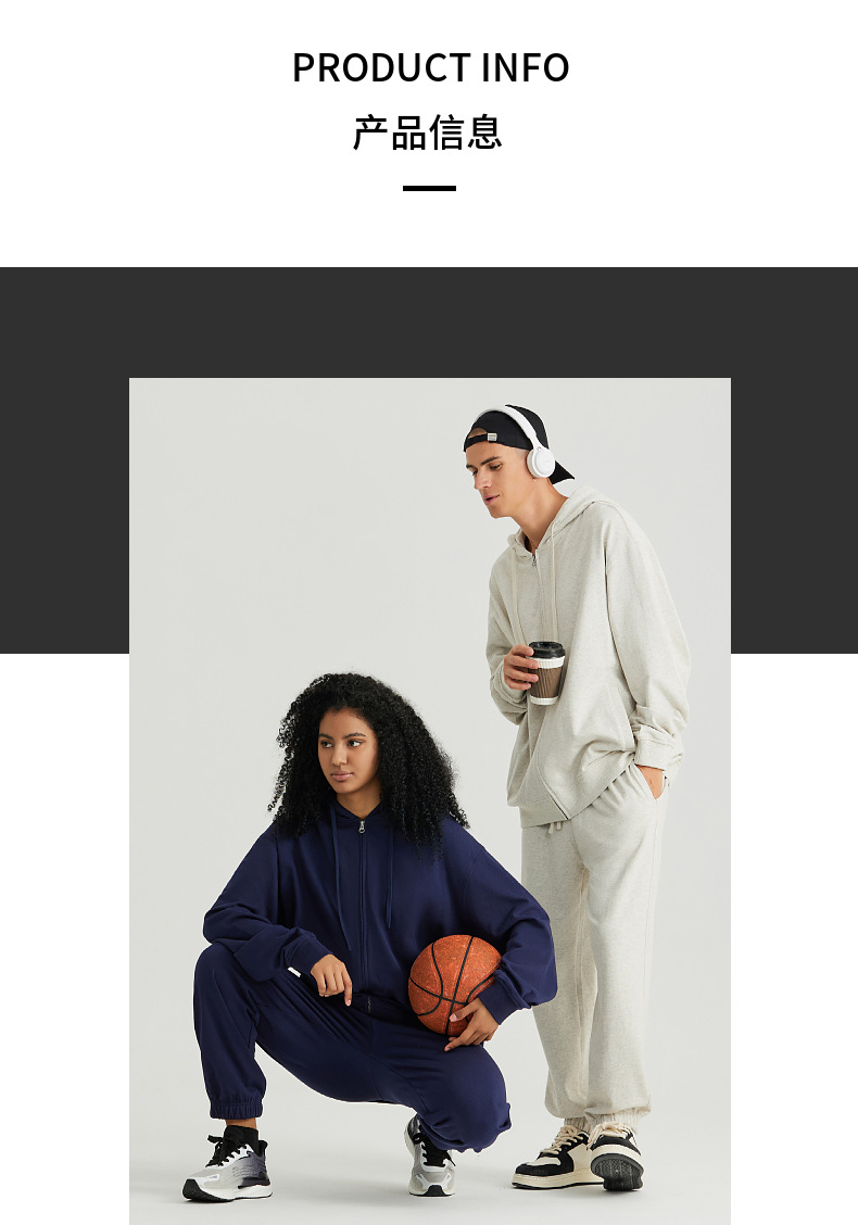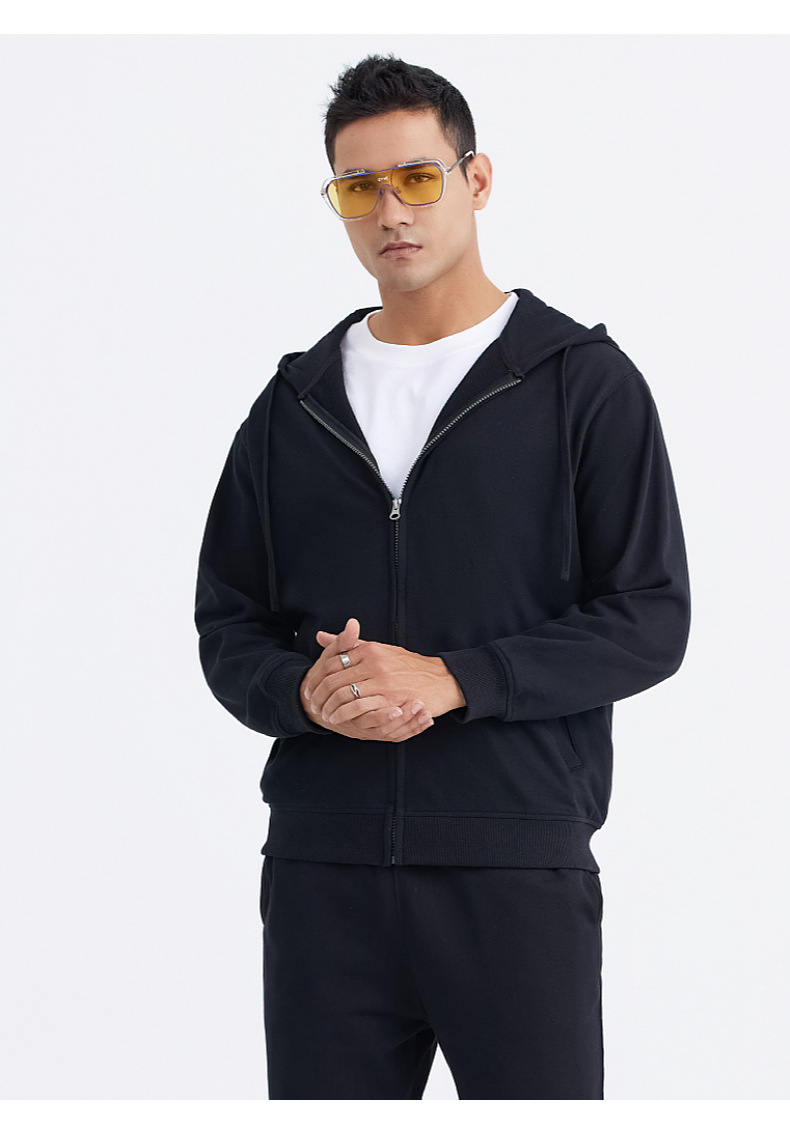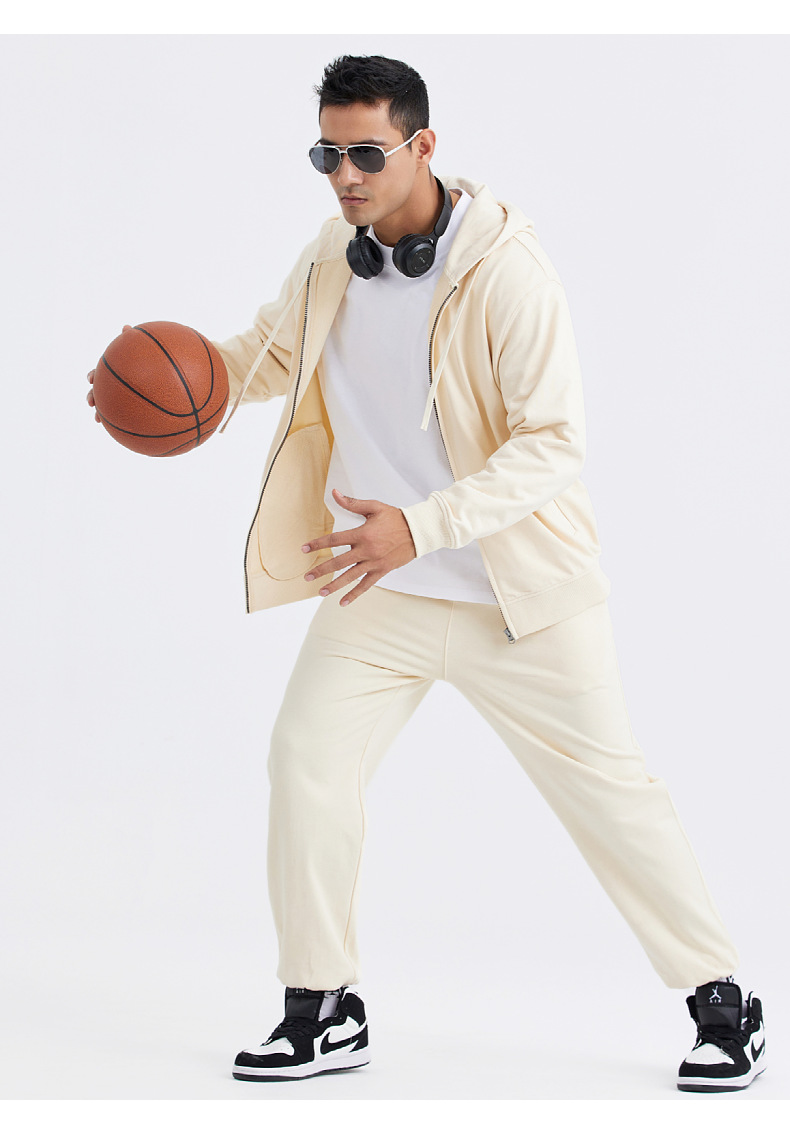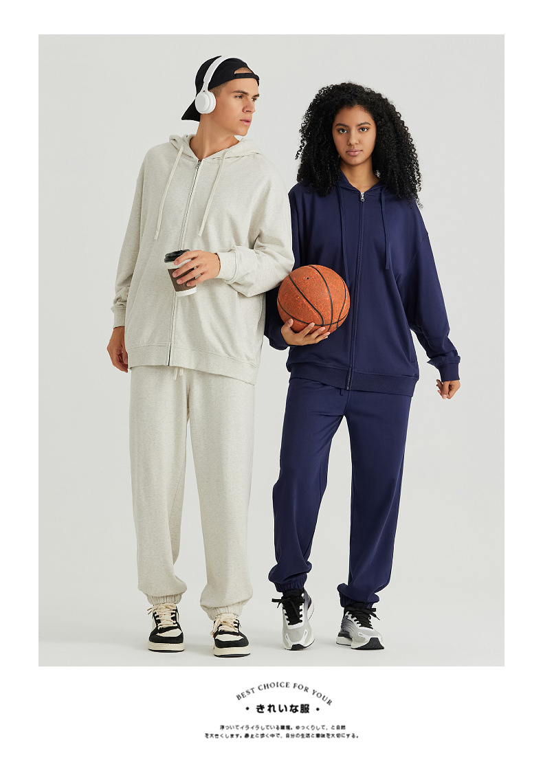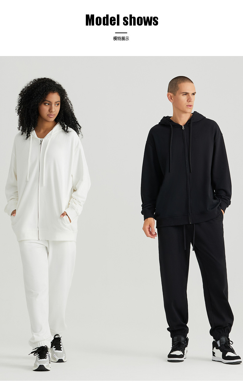 LVLV | 미국 스타일 크로스보더 헤비웨이트 순면 스웨트셔츠 단색 사이드 포켓 남성용 지퍼 스웨트셔츠 트렌디 커플룩 오픈형스토어 가기