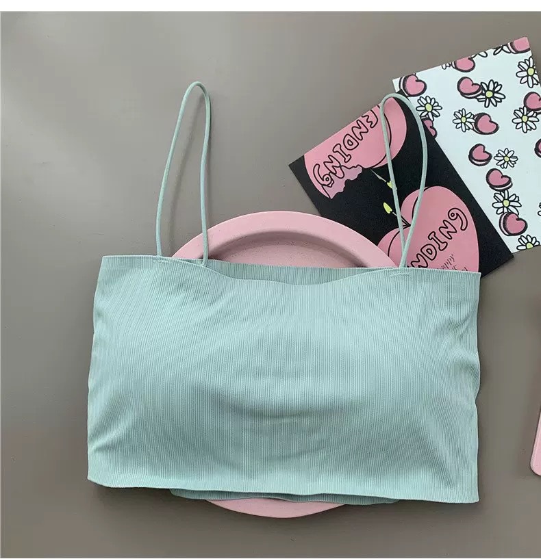 한국 스타일 섹시한 원피스 브라탑, 등이 아름다운 끈 없는 탑, 가슴 패드 내장, 아이스 실크 소재의 여성용 속옷
