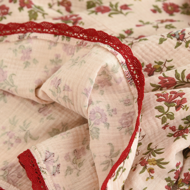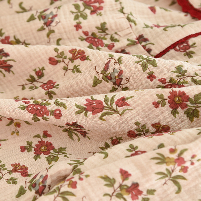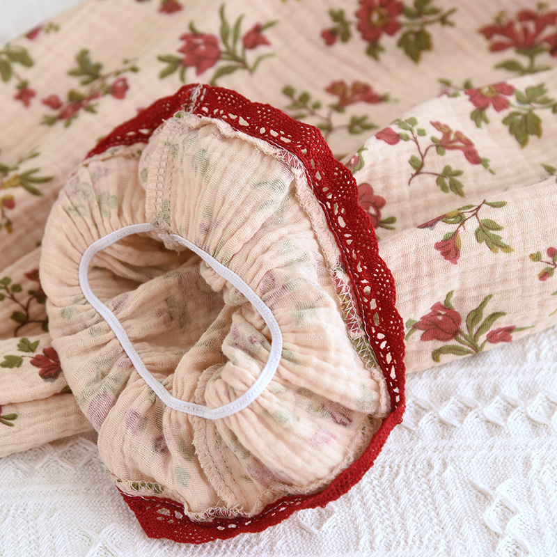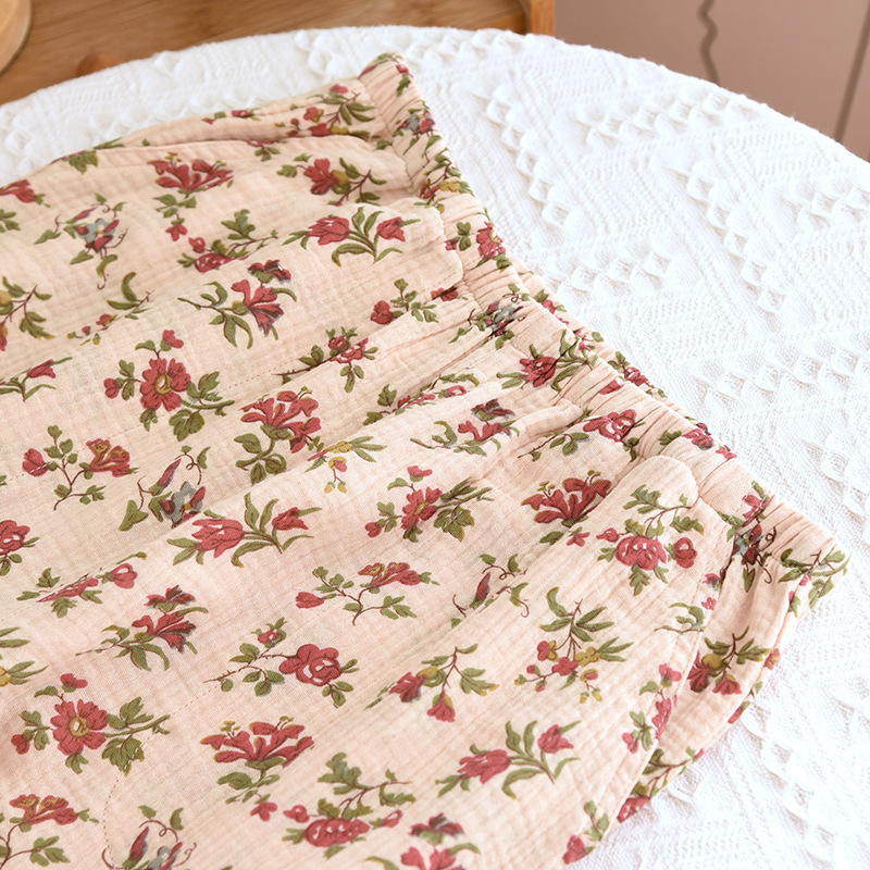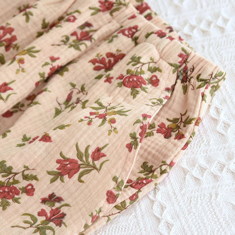 여성면 거즈 파자마 얇은 복고풍 긴팔 바지 면화 원사 홈 웨어는 봄과 가을 밖에서 착용 할 수 있습니다.스토어 가기