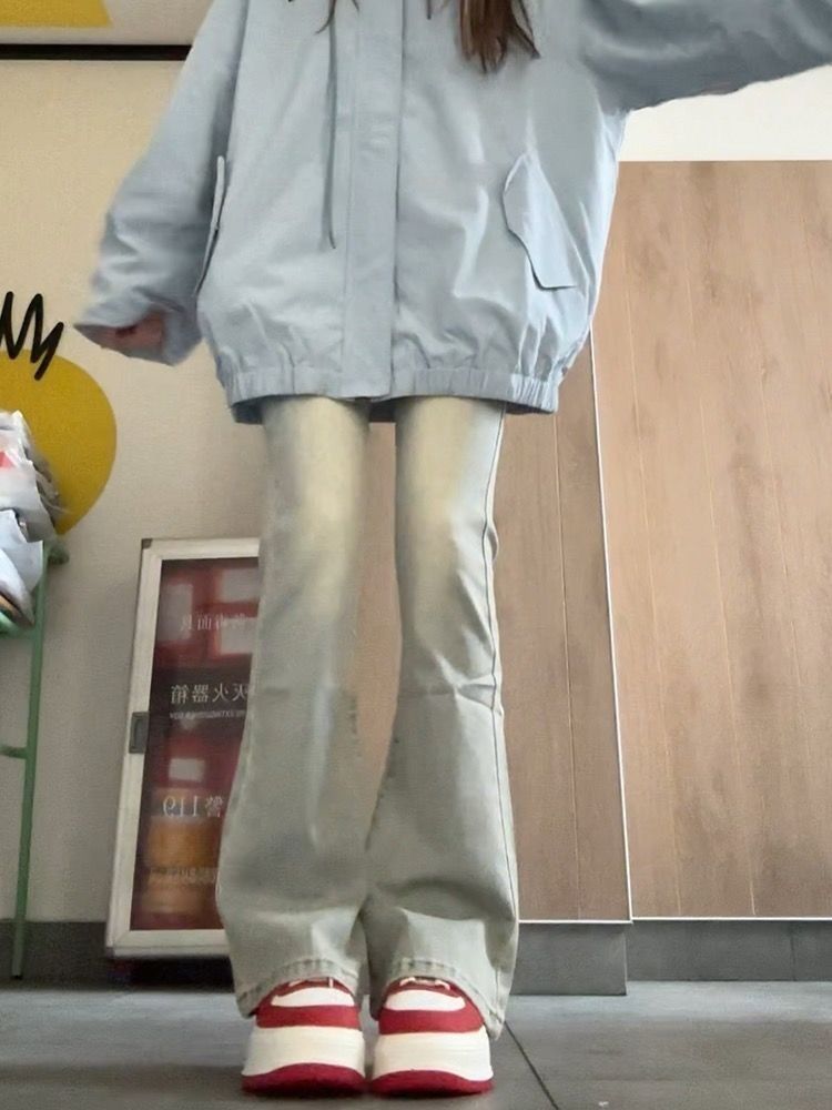 노란색 진흙 염색 된 여성을 위해 졸린 마이크로 플레어 진 청바지 봄과 가을 새로운 높은 허리 스트레치 슬림 슬리밍 말굽 바지스토어 가기