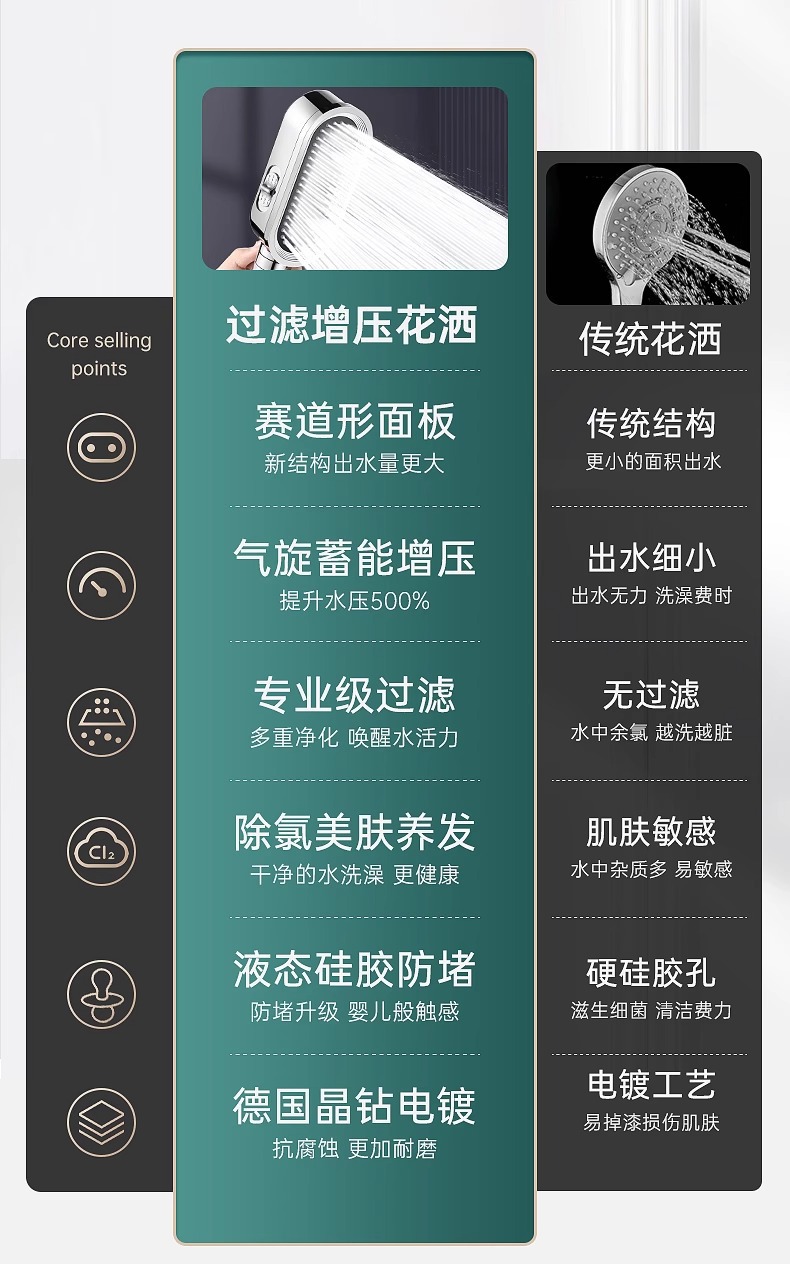 선택된 공급 샤워 가압 샤워 노즐 가정용 샤워 샤워 헤드 세트 꽃 건조 샤워 헤드스토어 가기