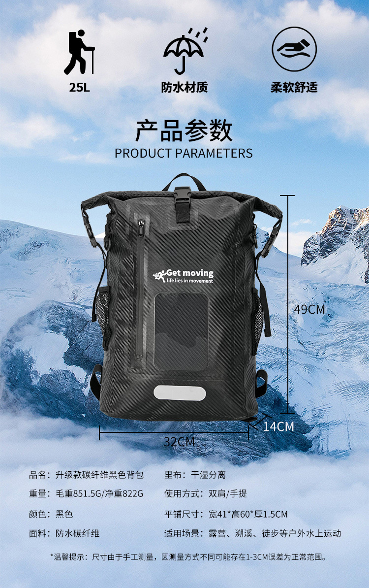 방수 배낭 탄소 섬유 가방 휴대 전화 투명 창 저장 가방 해변 가방 해변 가방 야외 스포츠 가방스토어 가기