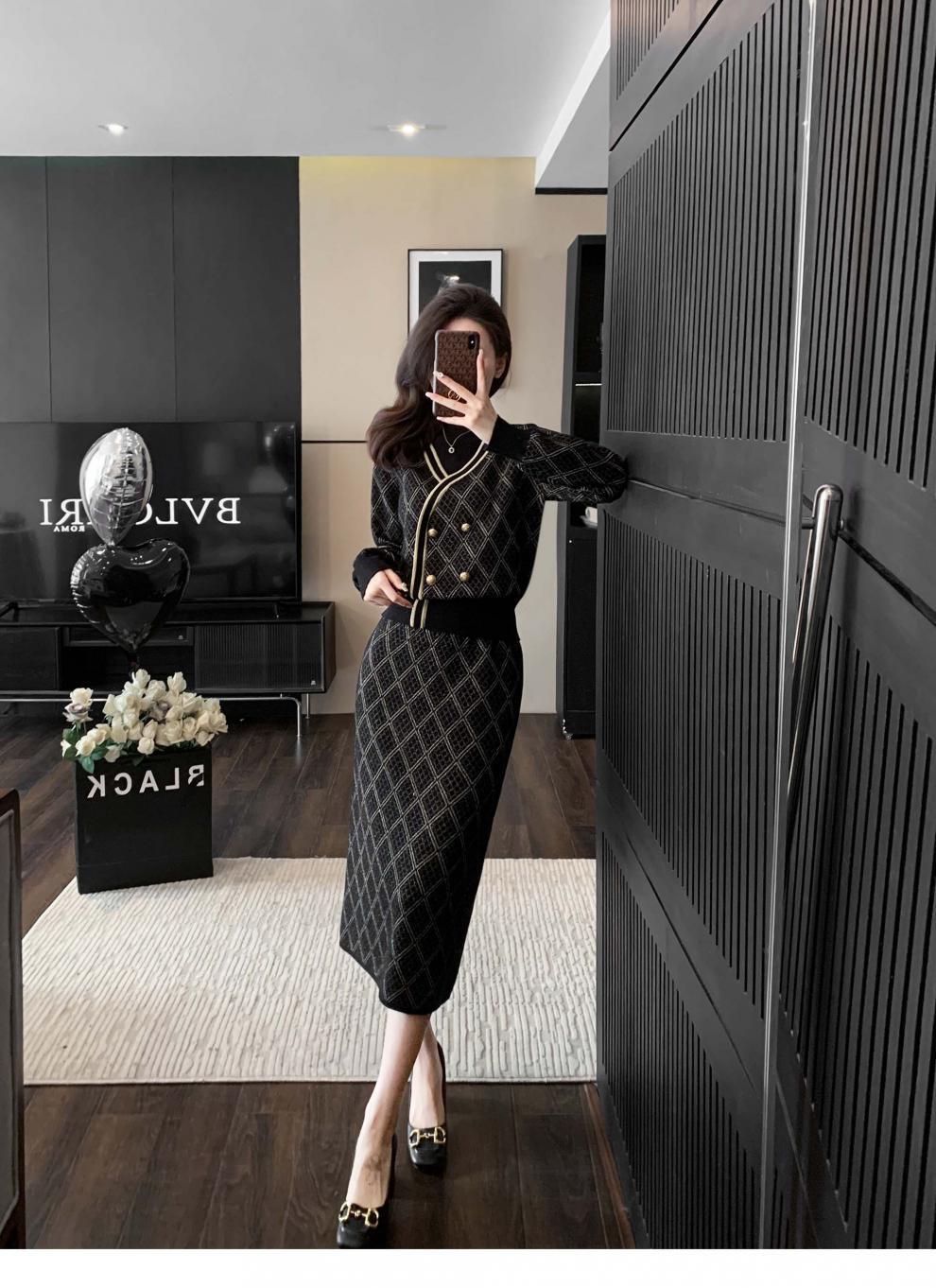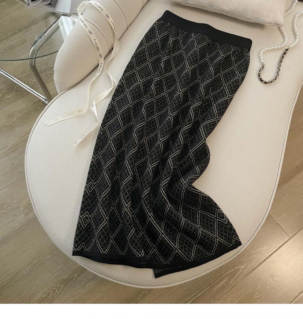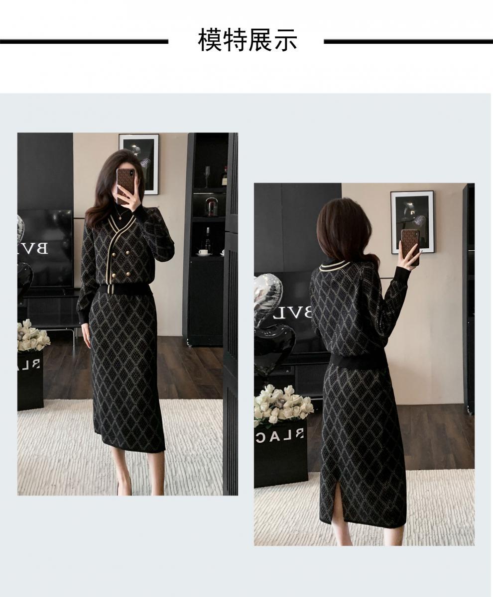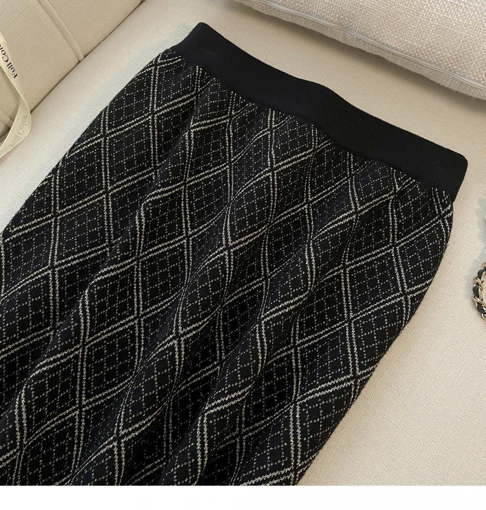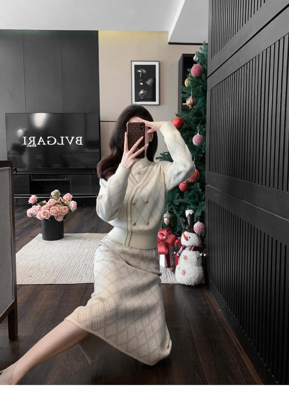 프렌치 스타일의 고급 니트 정장 스커트 여성용 2025 봄 가을 신상품 다이아몬드 패턴 재킷과 스커트 투피스 세트