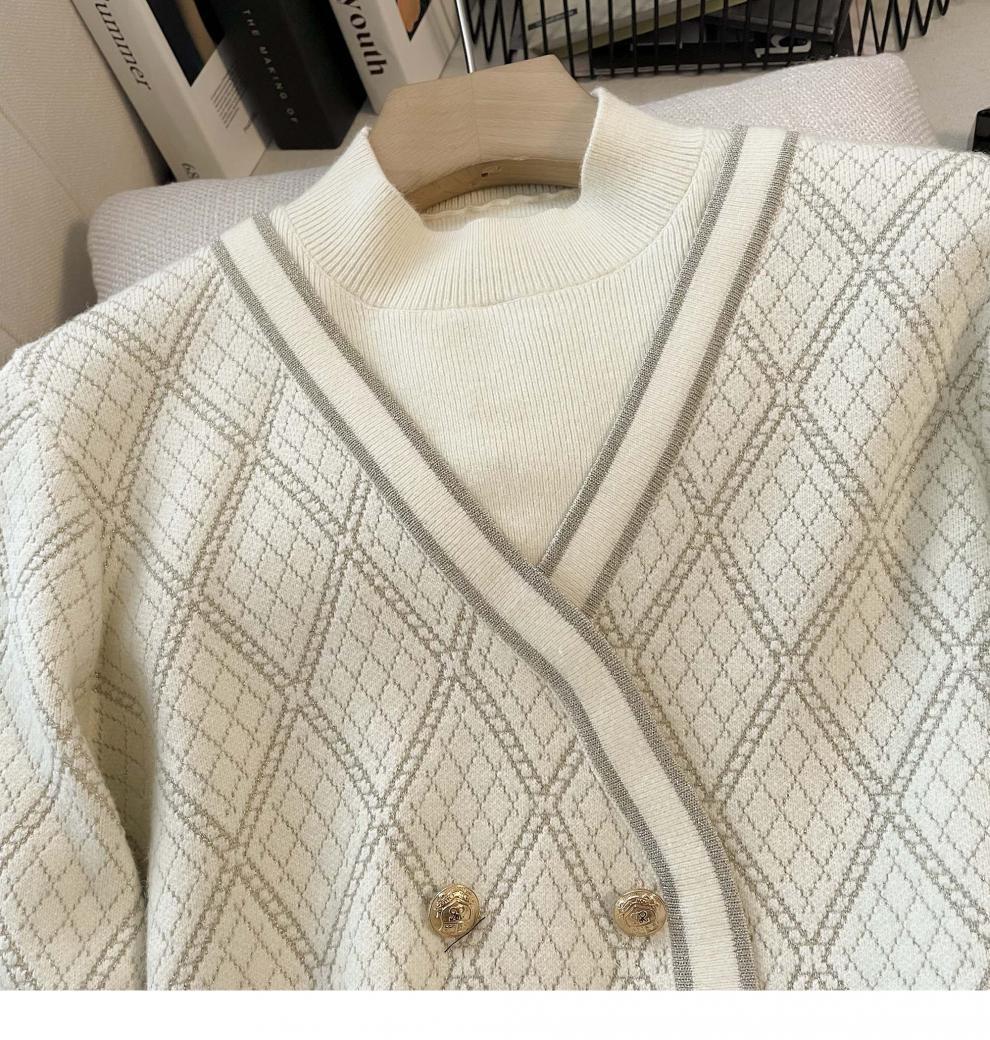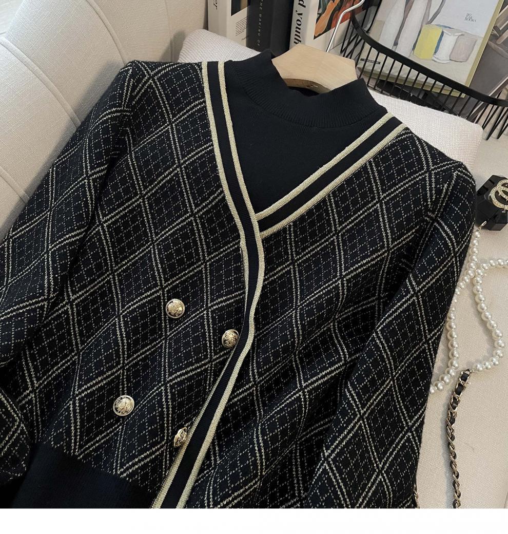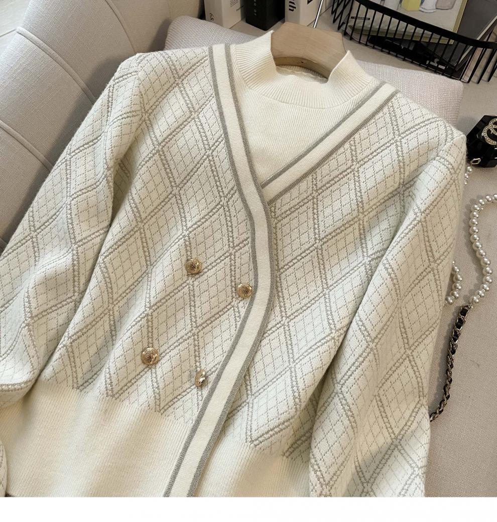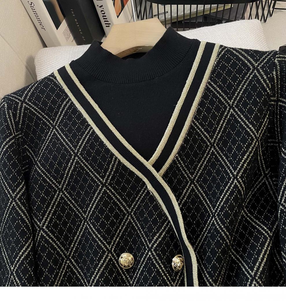 프렌치 스타일의 고급 니트 정장 스커트 여성용 2025 봄 가을 신상품 다이아몬드 패턴 재킷과 스커트 투피스 세트스토어 가기