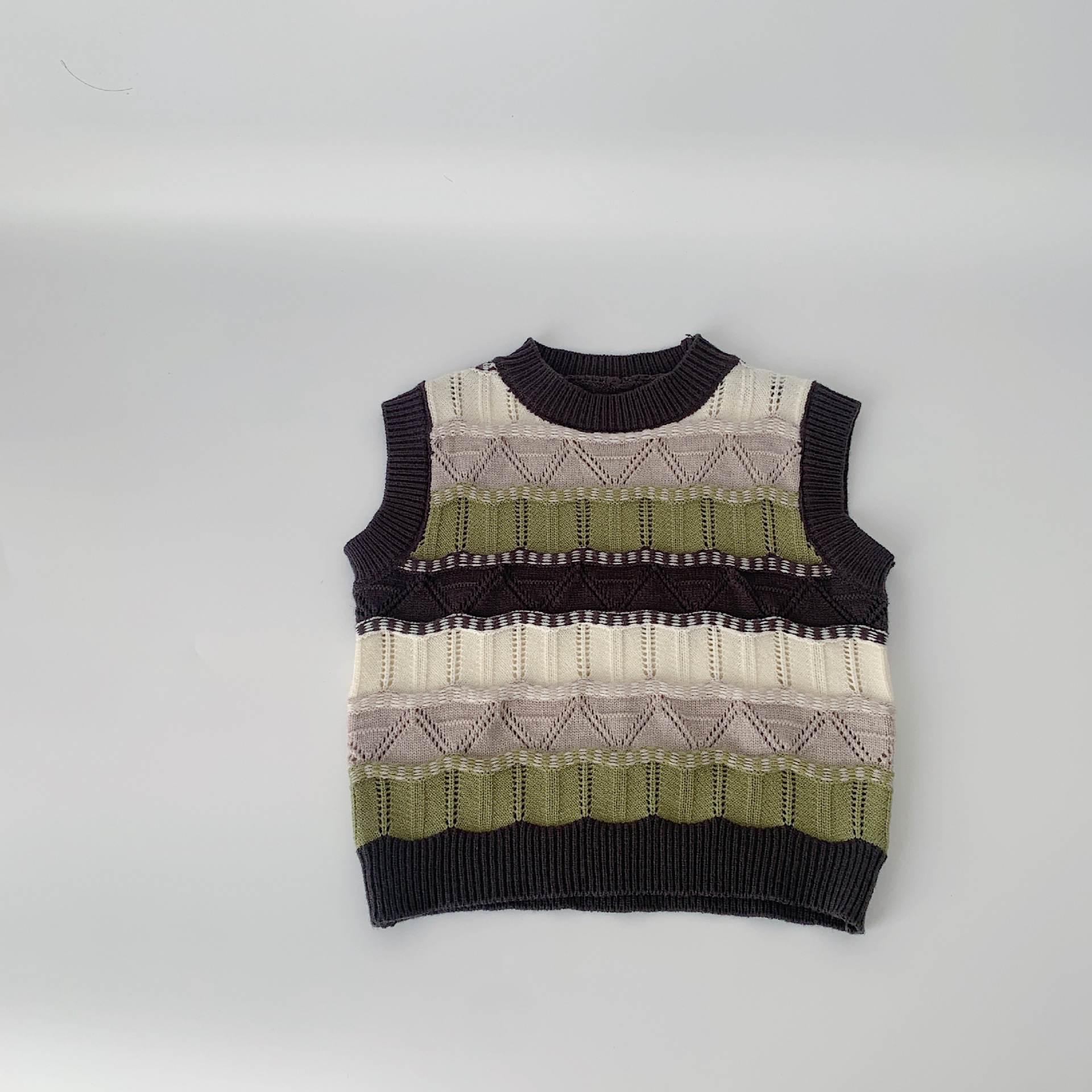 Maibao 어린이 조끼 2024 봄 새 어린이 줄무늬 풀오버 소년의 물결 모양의 조끼 캐주얼 탑
