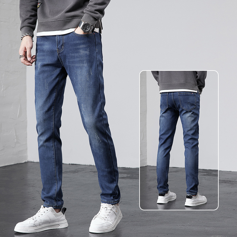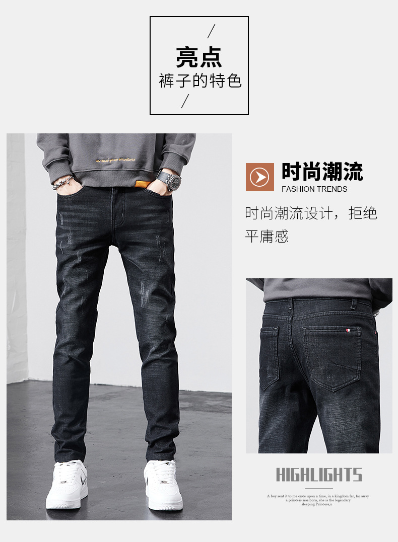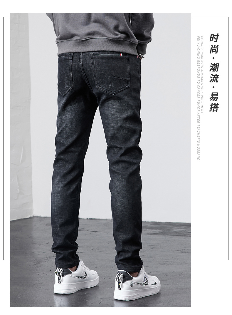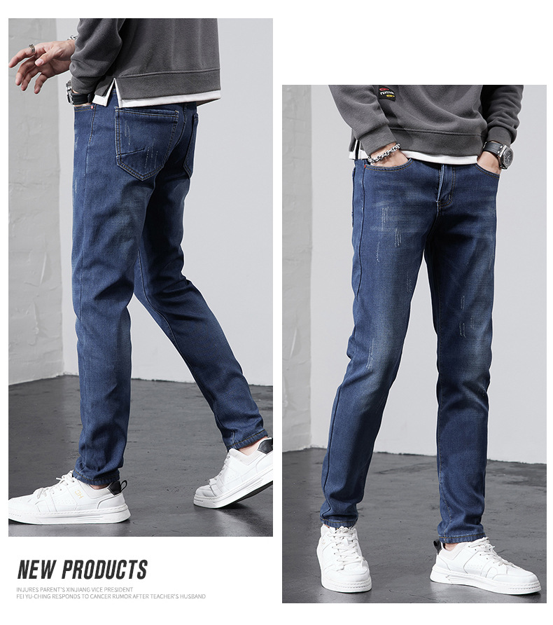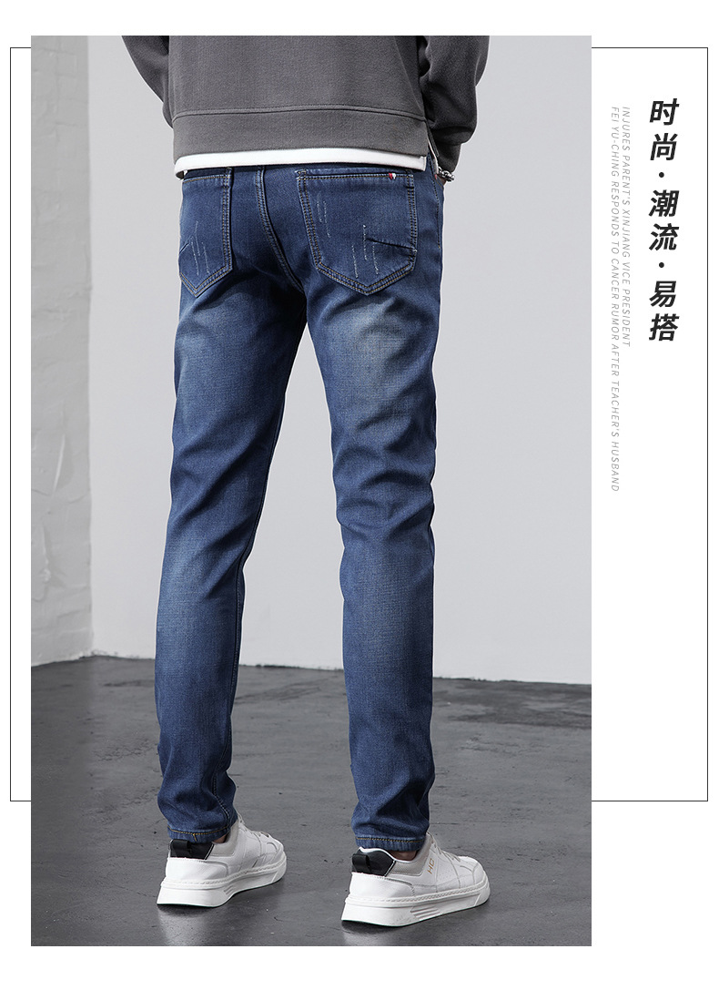 신탕 남자 폭발성 스트레치 청바지 남자 간단한 통기성 남자 바지 청소년 한국식 슬림핏 얇은 다리 바지스토어 가기