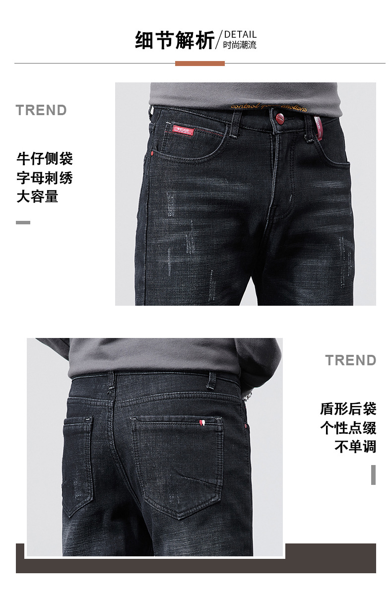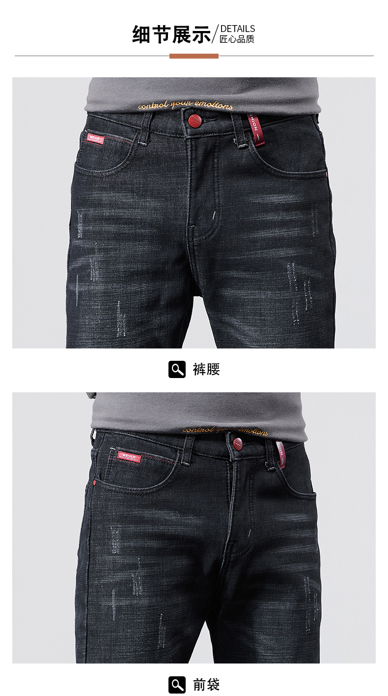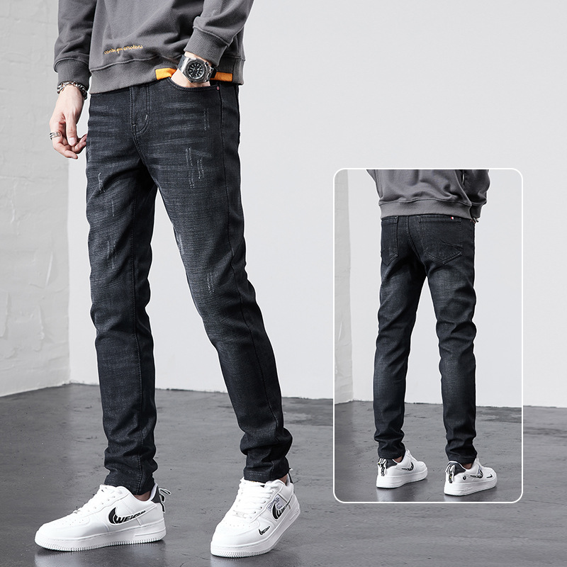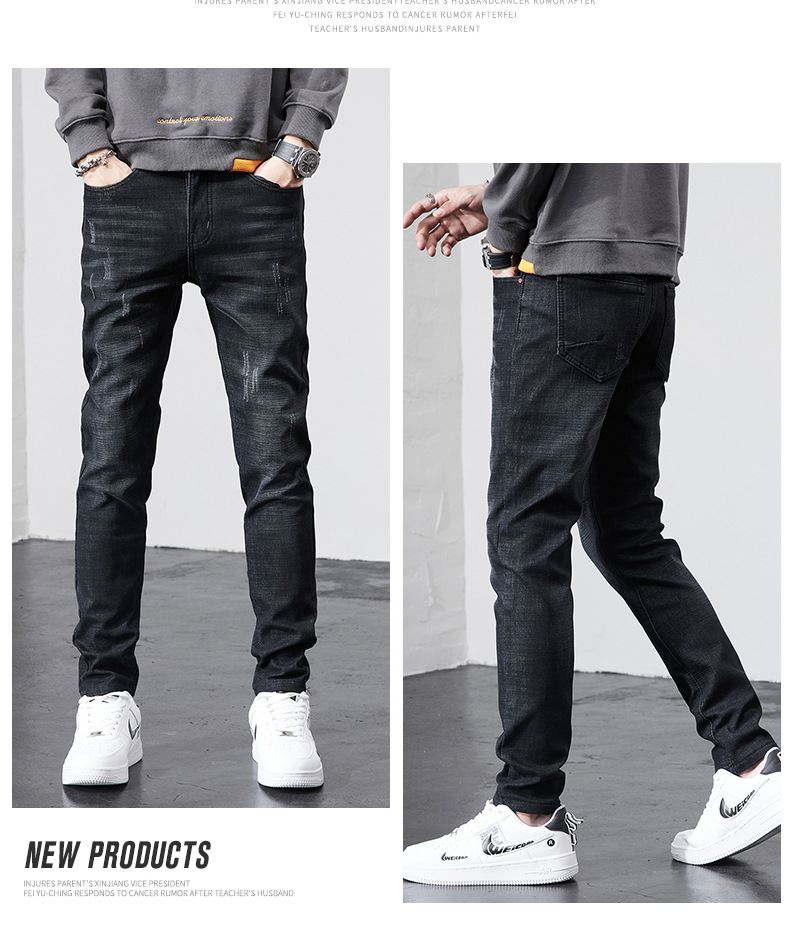 신탕 남자 폭발성 스트레치 청바지 남자 간단한 통기성 남자 바지 청소년 한국식 슬림핏 얇은 다리 바지스토어 가기