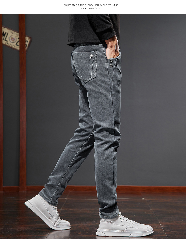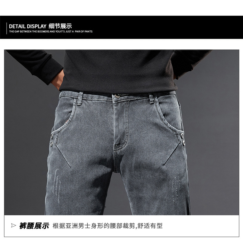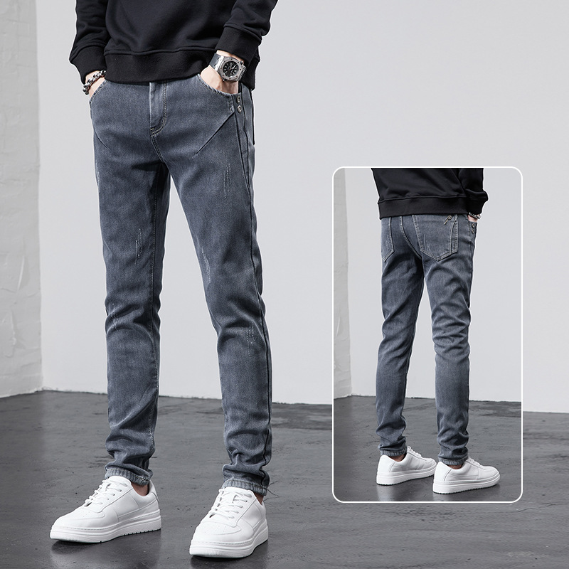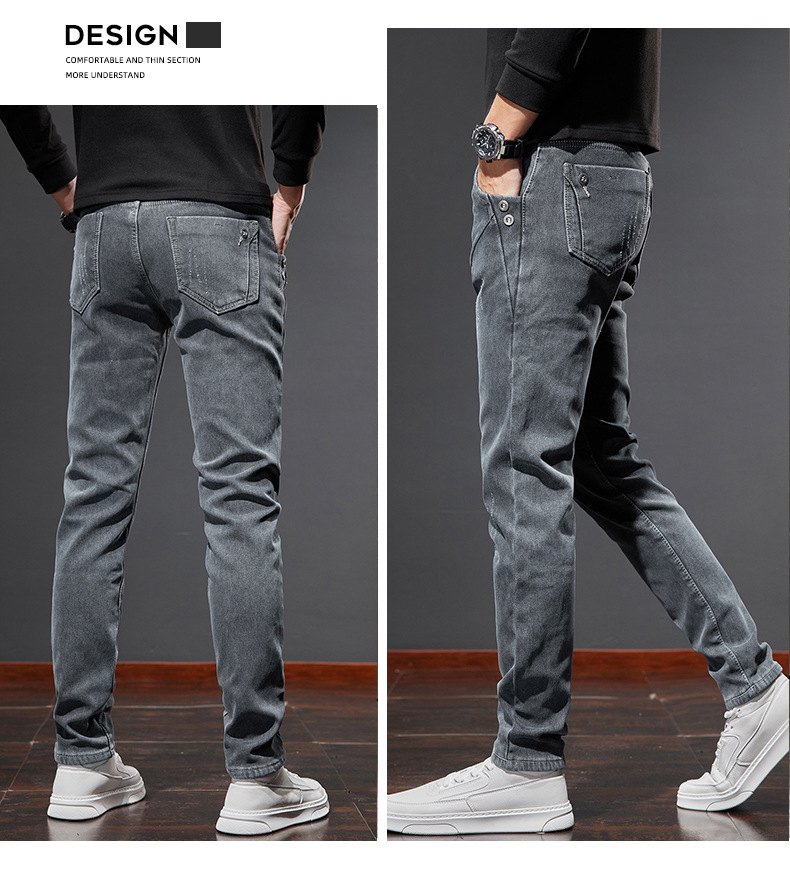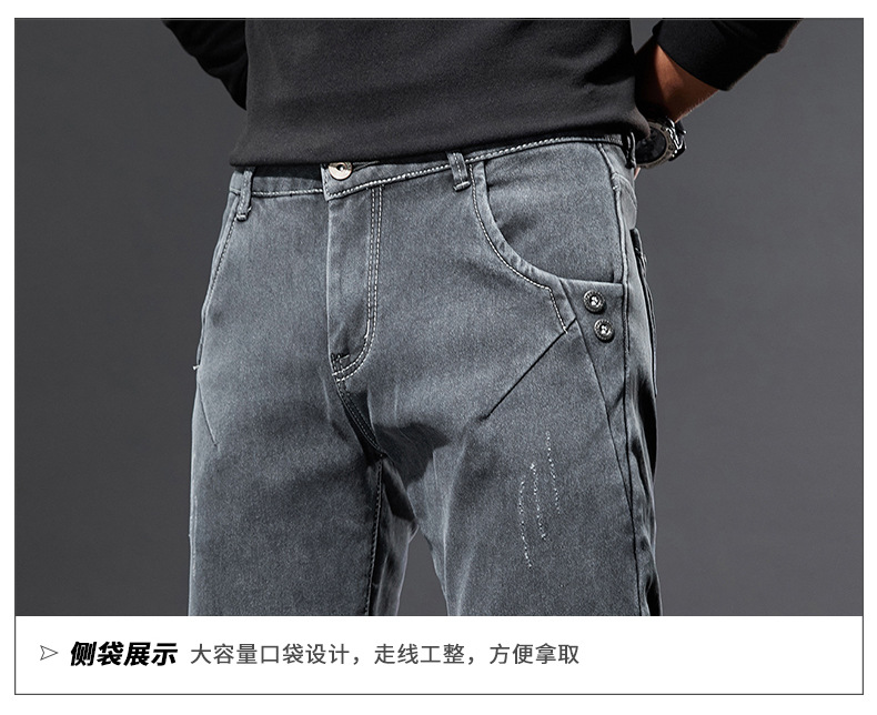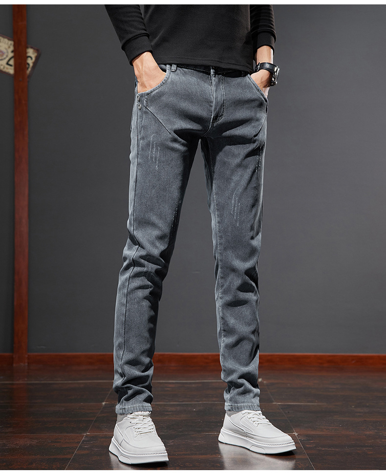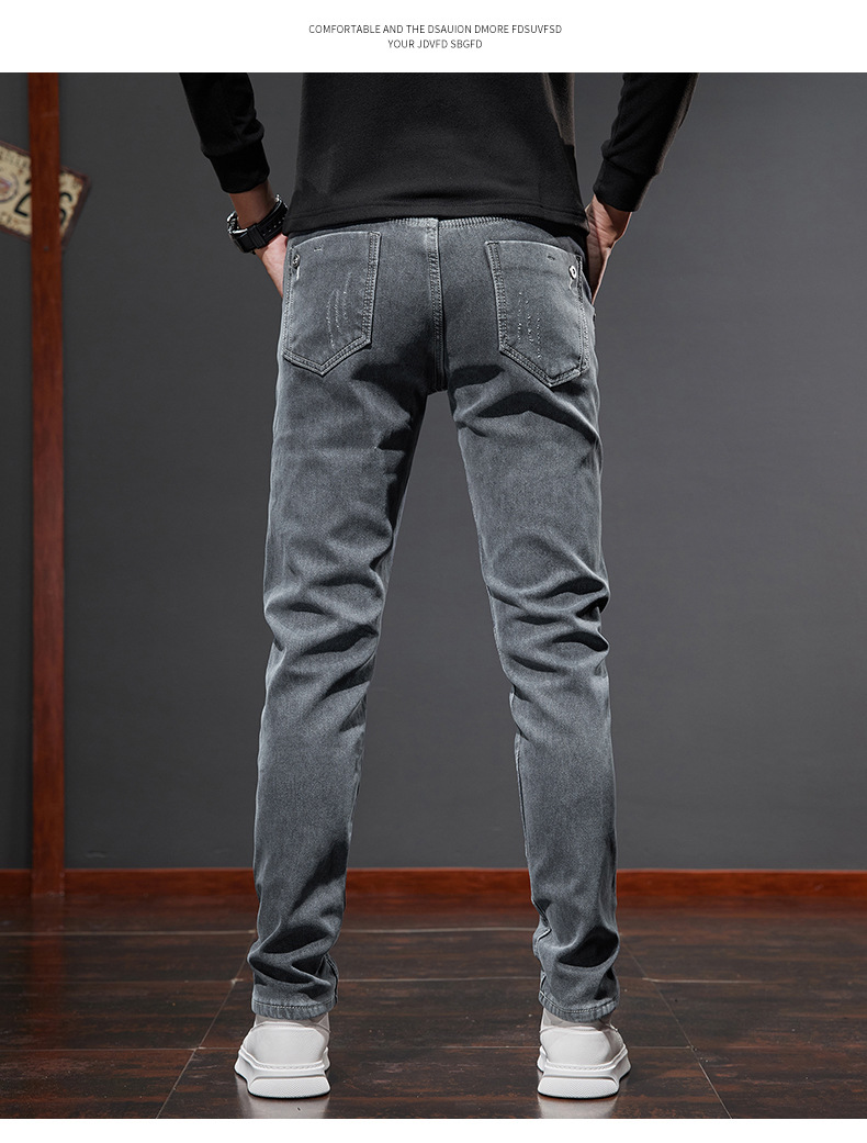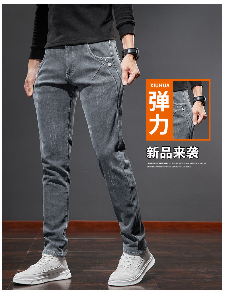 봄과 여름 정사이즈 아우터 캐주얼 바지 남성 연기 그레이 스트레치 청바지 남성용 슬림 핏 슬림 다리 바지 남성복스토어 가기