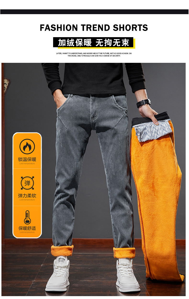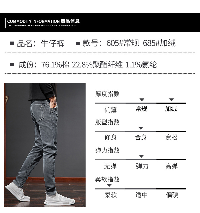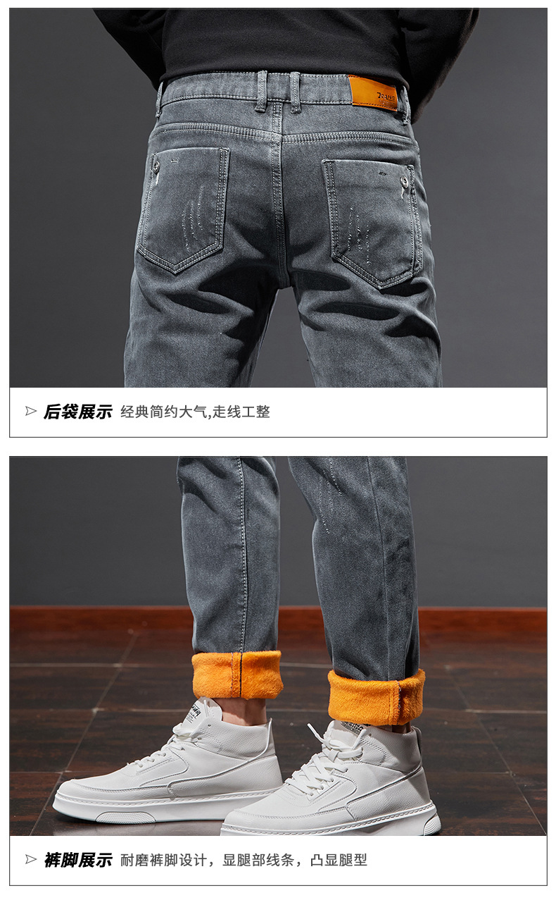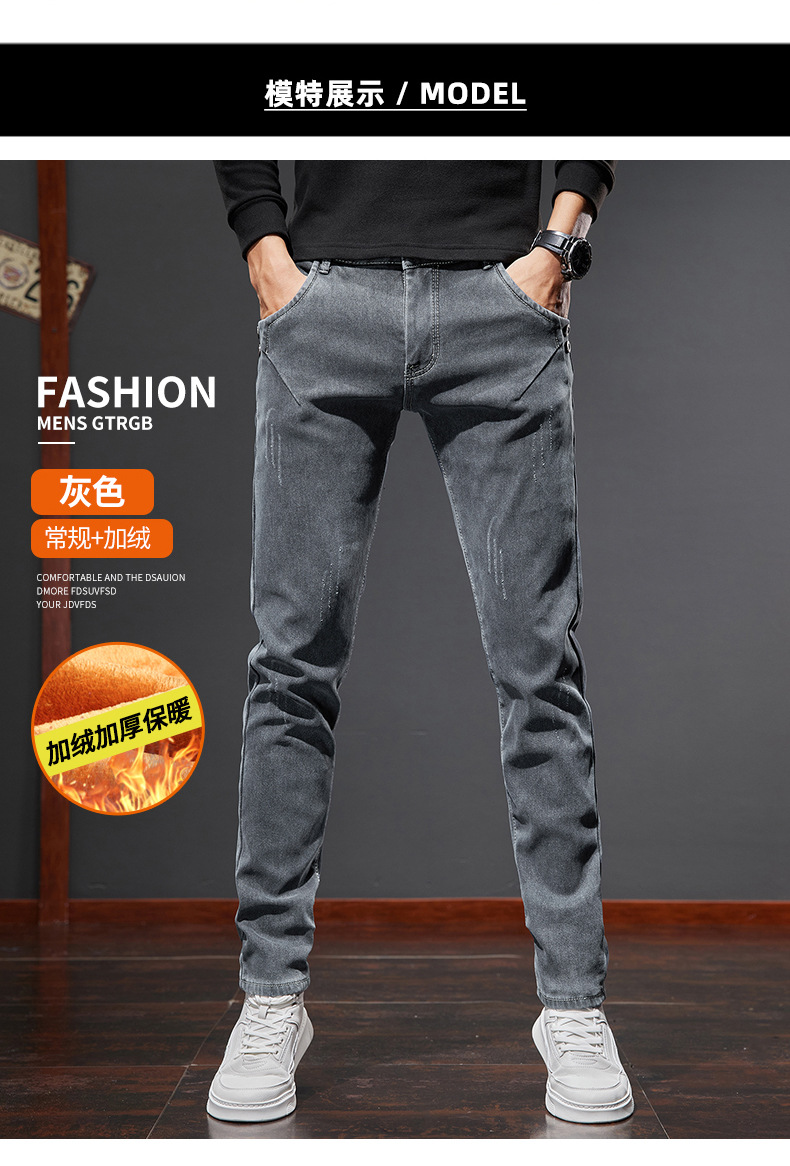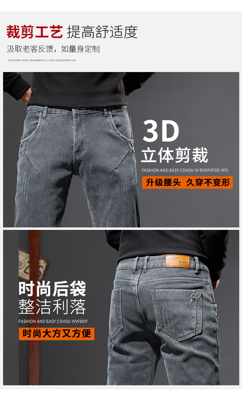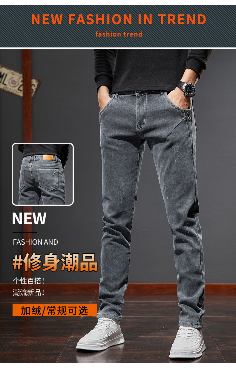 봄과 여름 정사이즈 아우터 캐주얼 바지 남성 연기 그레이 스트레치 청바지 남성용 슬림 핏 슬림 다리 바지 남성복스토어 가기