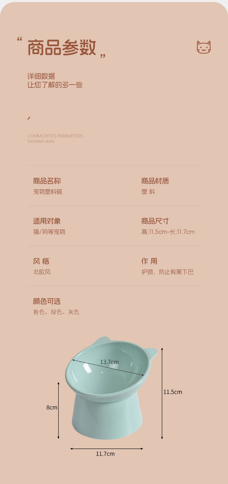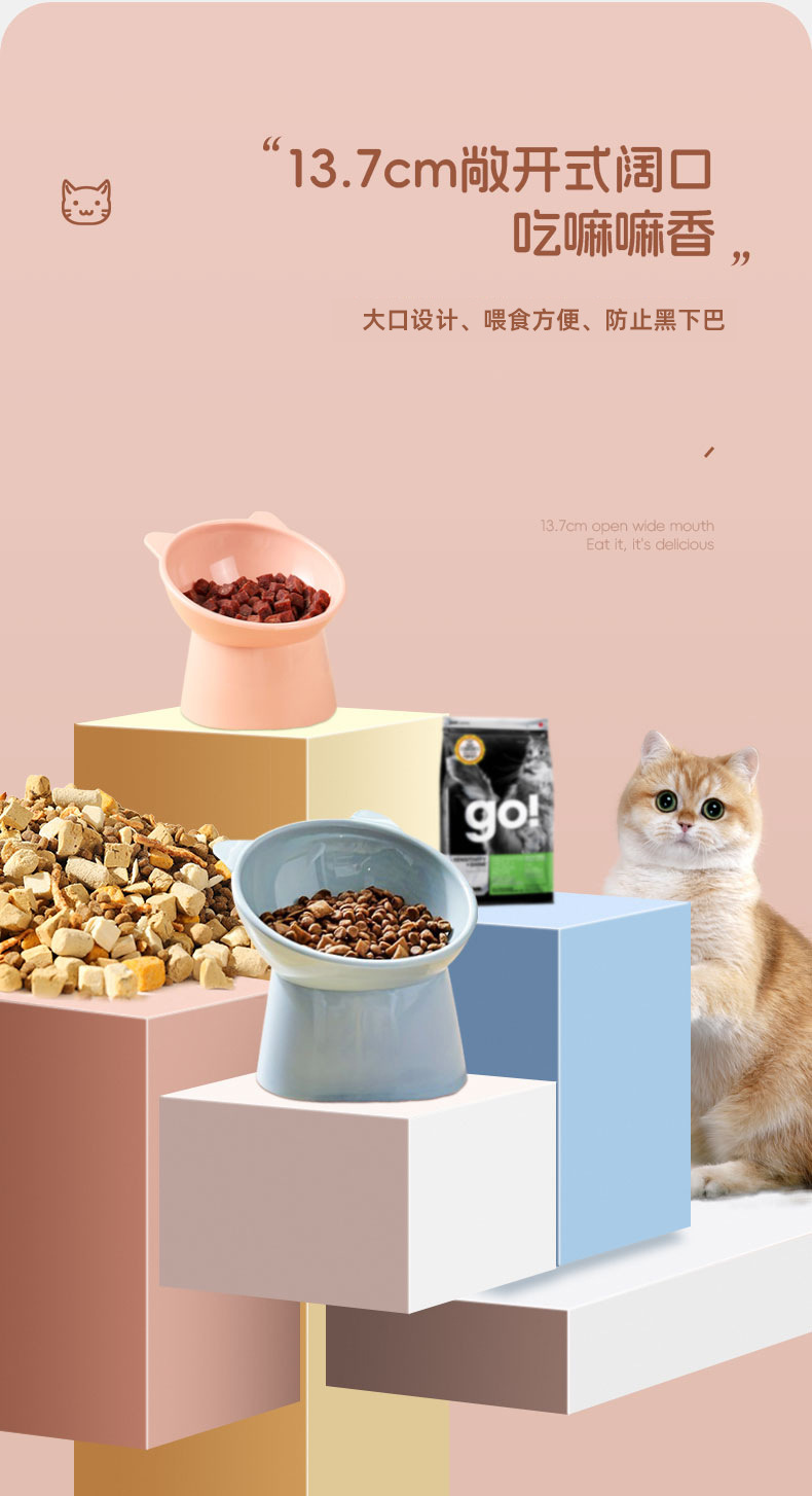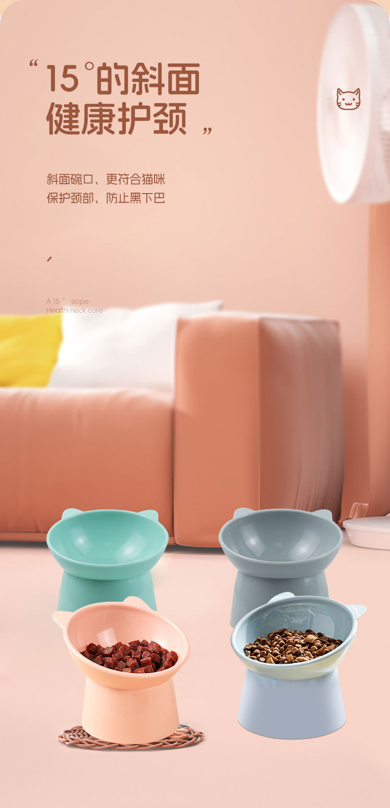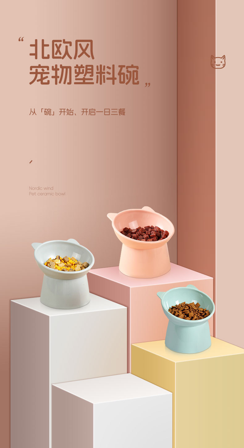 공장 직접 북유럽 스타일 플라스틱 높은 다리 고양이 그릇 고양이와 개밥 분지 비스듬한 입 목 보호 안티 노크 고양이 물 그릇 애완 동물 그릇